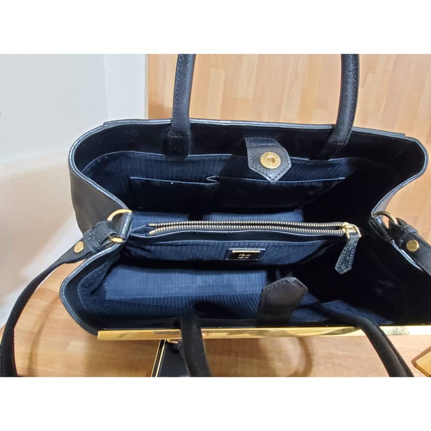 This authentic FENDI Vitello Elite Regular 2Jours Tote Black is in it’s pre-owned good condition. The exterior leather is clean and beautiful. Interior is clean and beautiful. Great bag. It’s classic for an everyday day use.