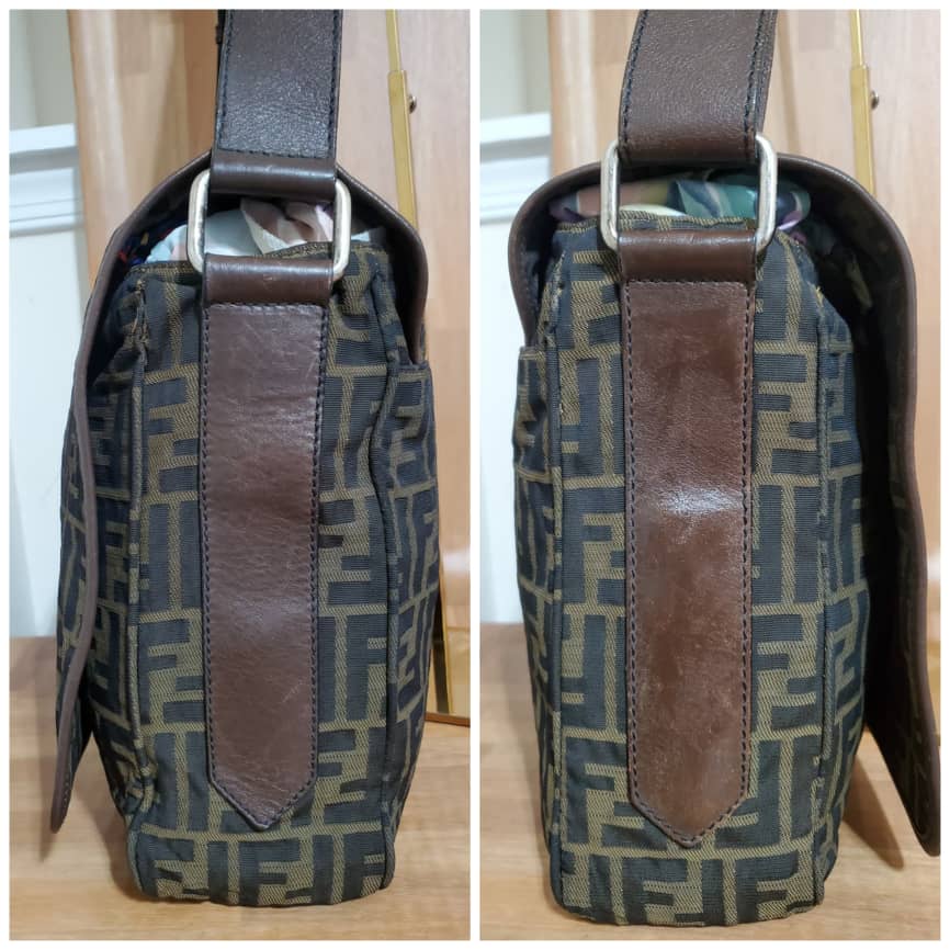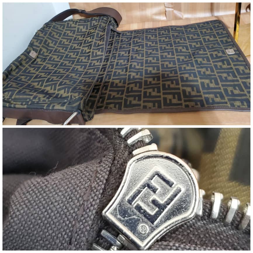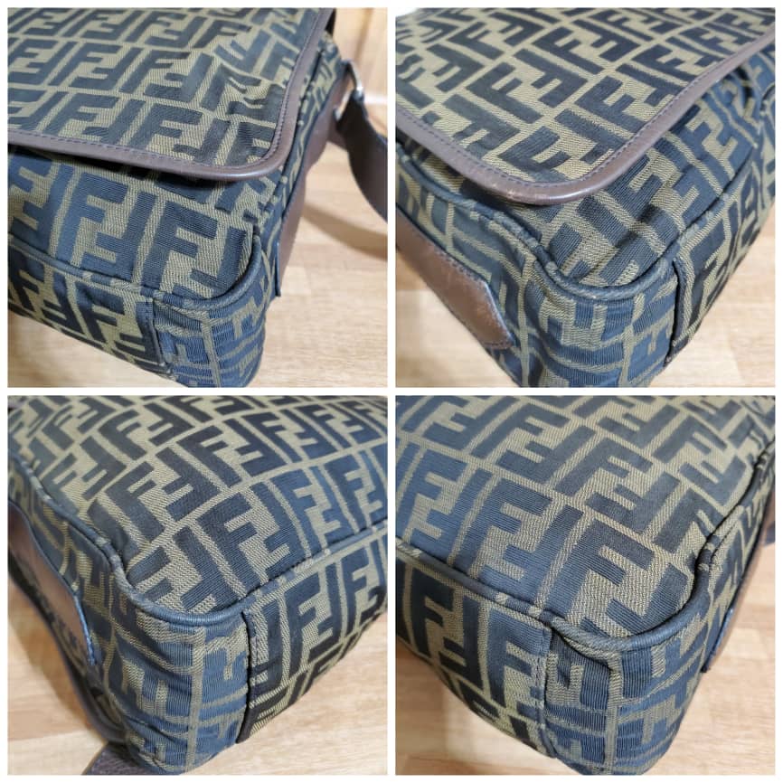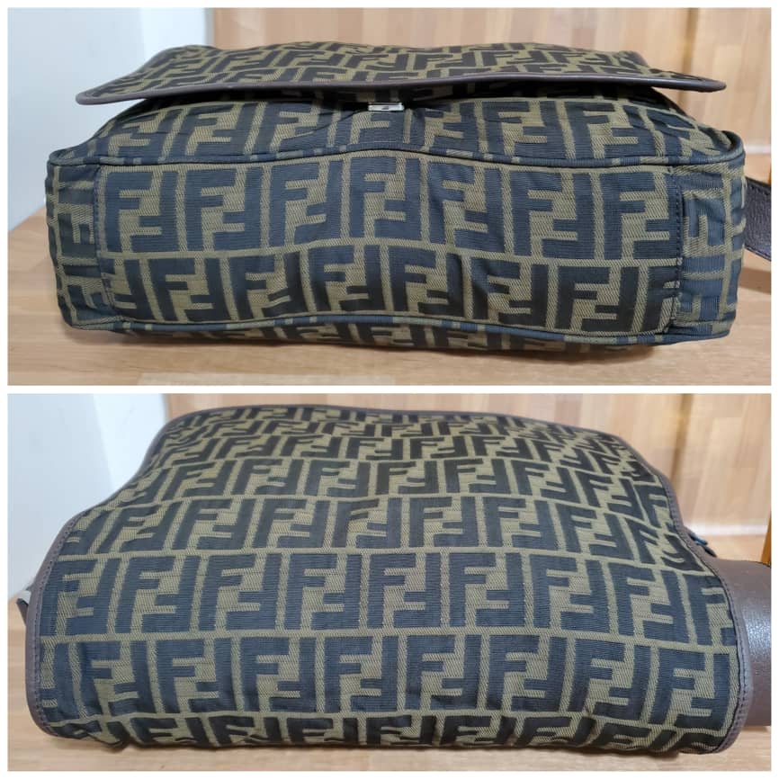 This authentic FENDI Zucca Canvas Messenger Bag Tobacco is in it’s pre-owned condition.has sign of use. The exterior canvas is clean and beautiful. Interior is clean. Little scratch on the brown leather by the sides
