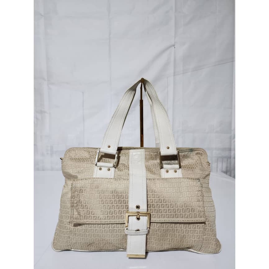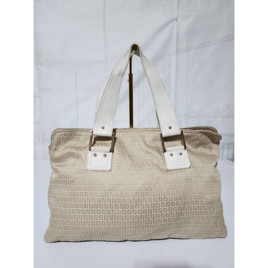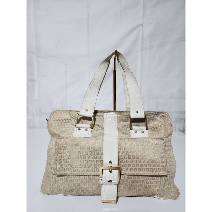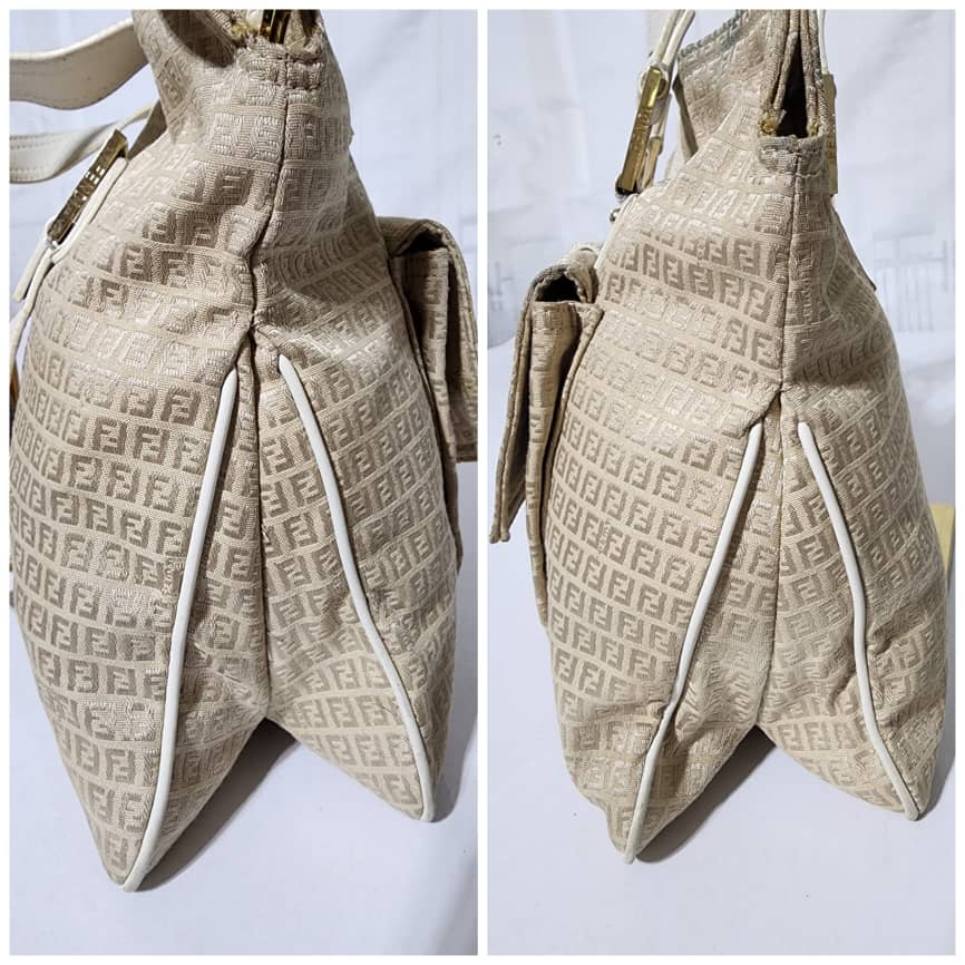 This authentic FENDI zucca canvas shoulder bag Beige/ Cream is in itβs good pre-owned condition. The exterior is clean, the top trim of the bag shows a little bit of darkening color wear (Kindly look at pictures above). Interior is clean. Gold hardware shows little bit of scratches to it.Kindly look at pictures above for all details.