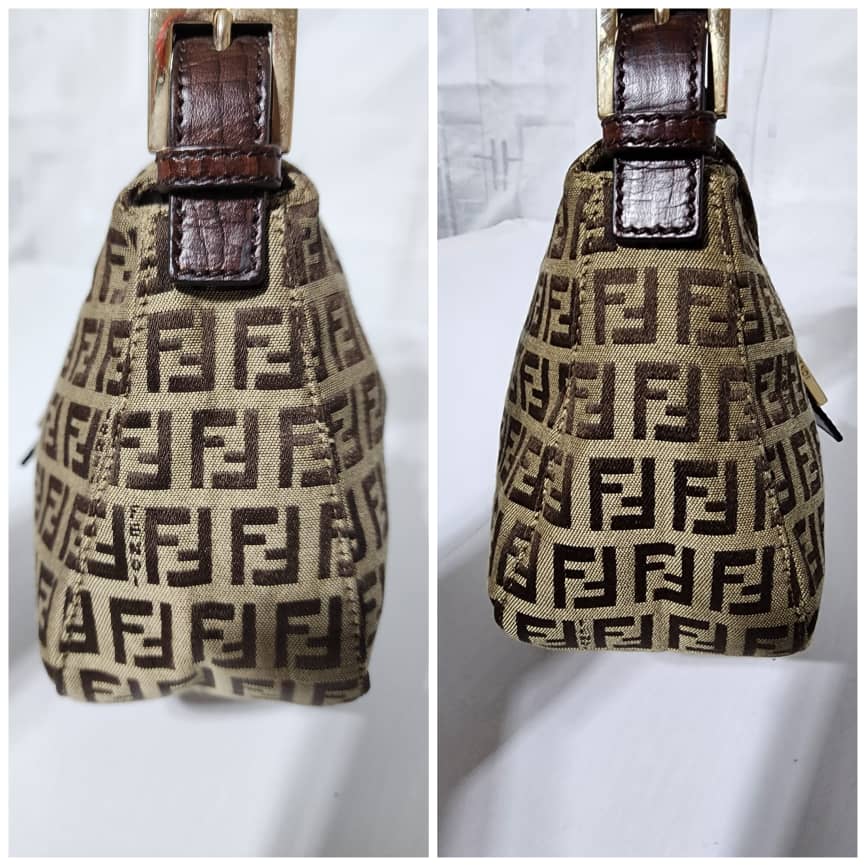 This authentic FENDI Zucchino Canvas Mamma Baguette Shoulder Bag Brown/Beige is in itβs good pre-owned condition. The exterior is clean and beautiful. Interior is clean. Hardware is clean.