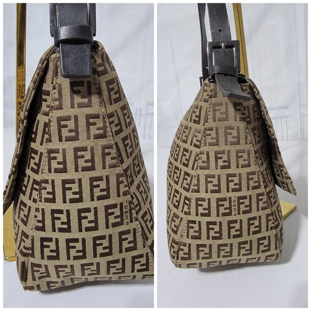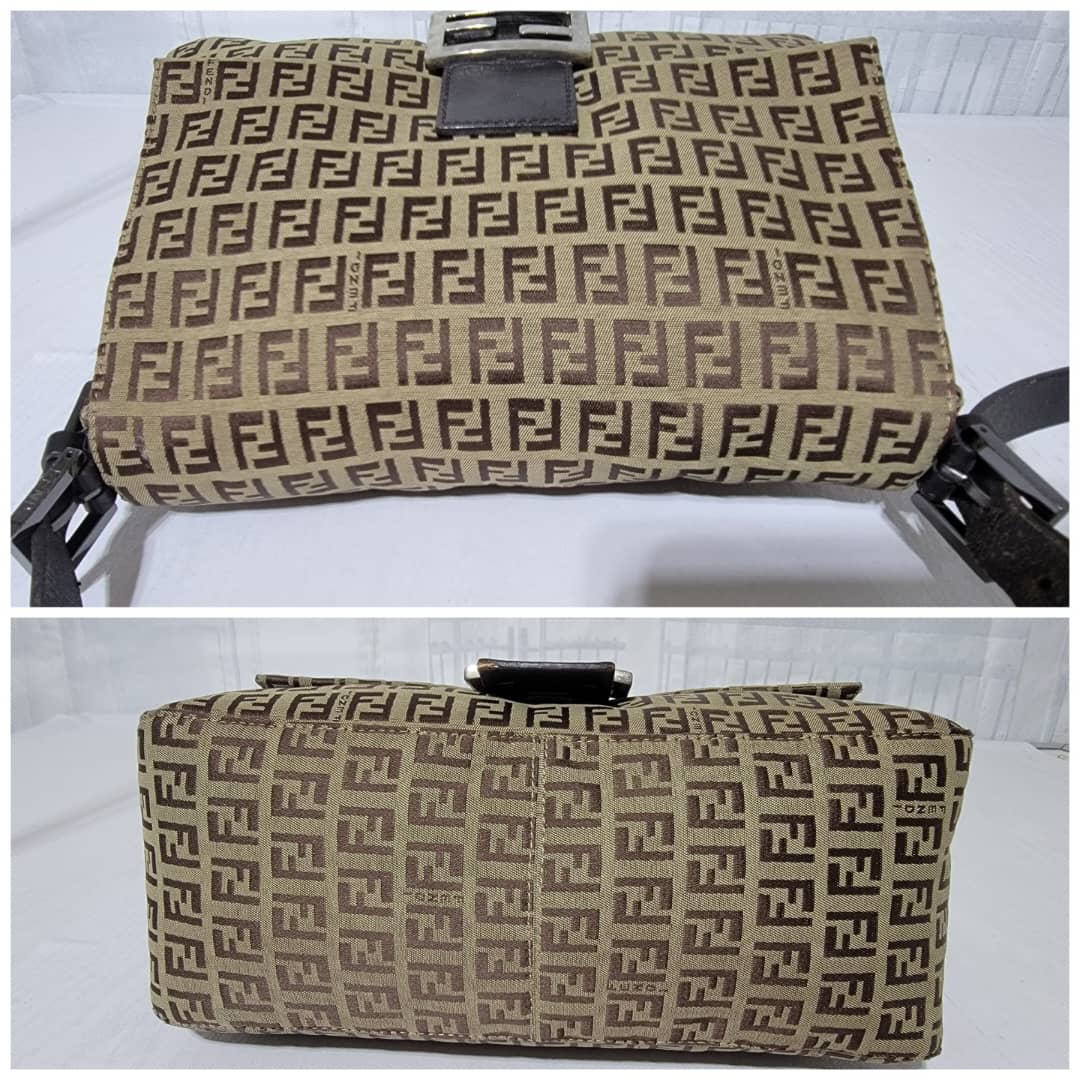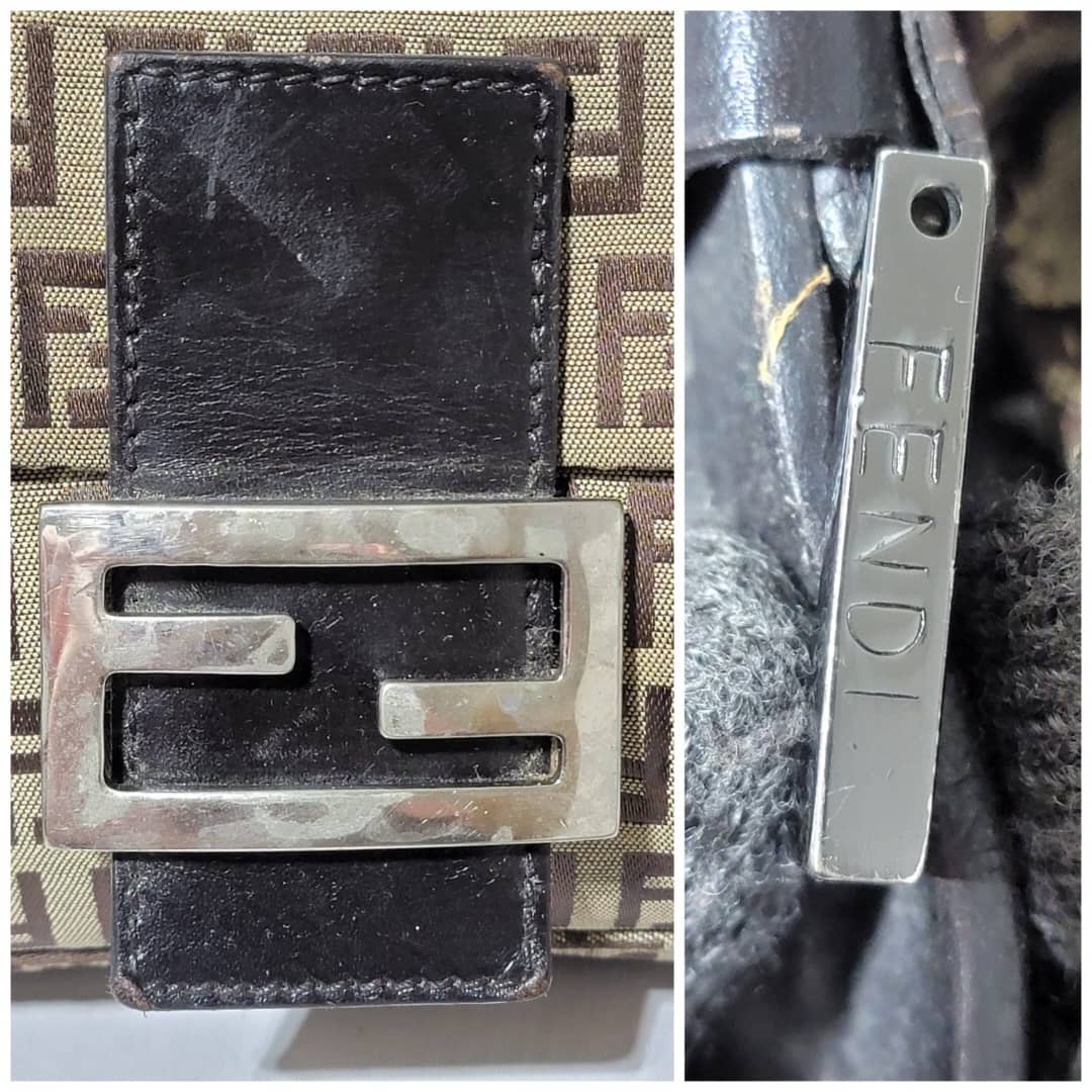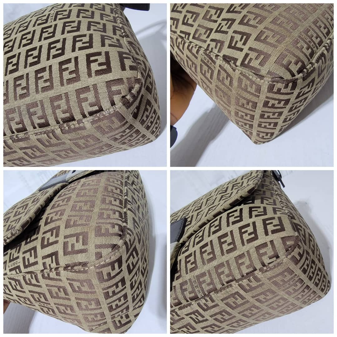 This authentic FENDI Zucchino Mama Baguette Shoulder Bag Chocolate Brown/Beige is in it’s good pre-owned condition. The exterior is clean and beautiful. Interior is clean. The handle shows little bit of scratch to the brown leather. Silver hardware with little bit of scratch (Kindly look at pictures above).