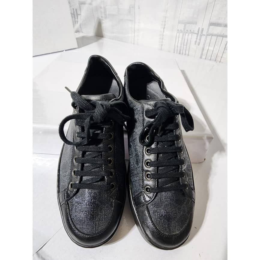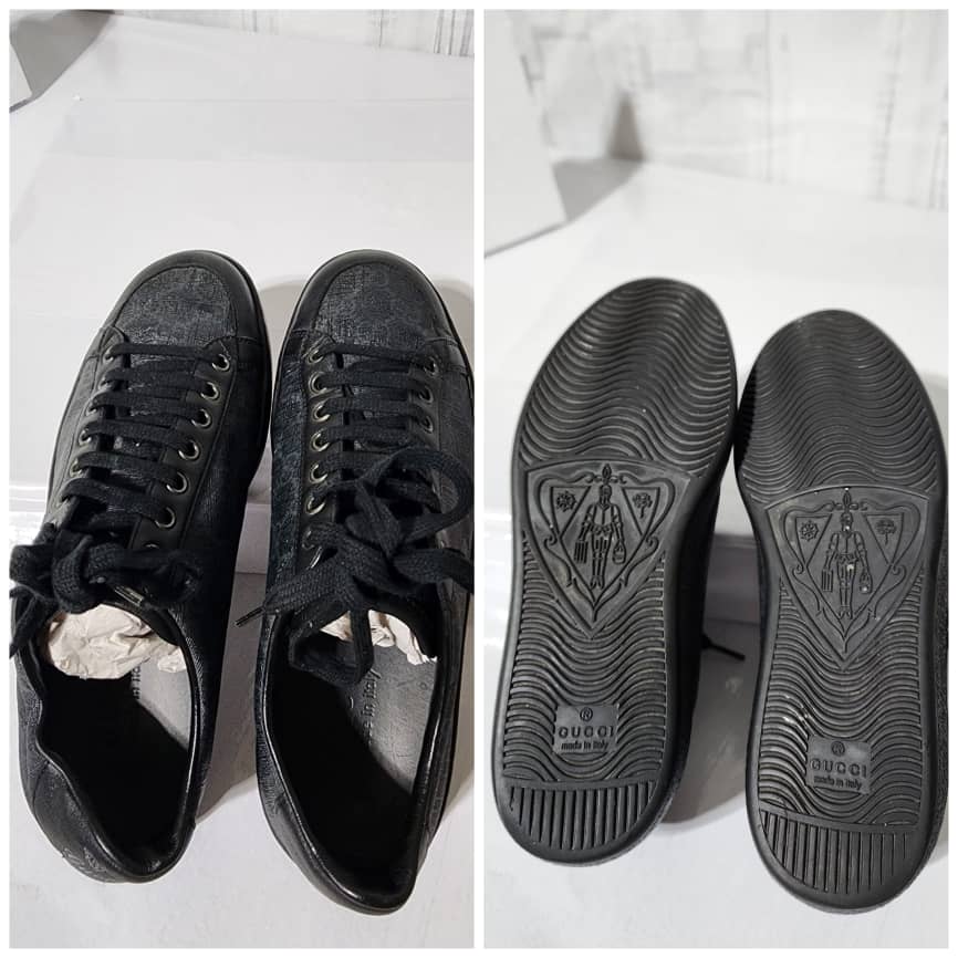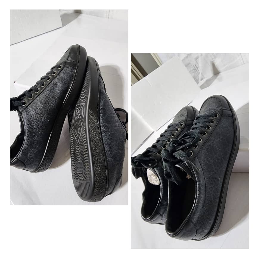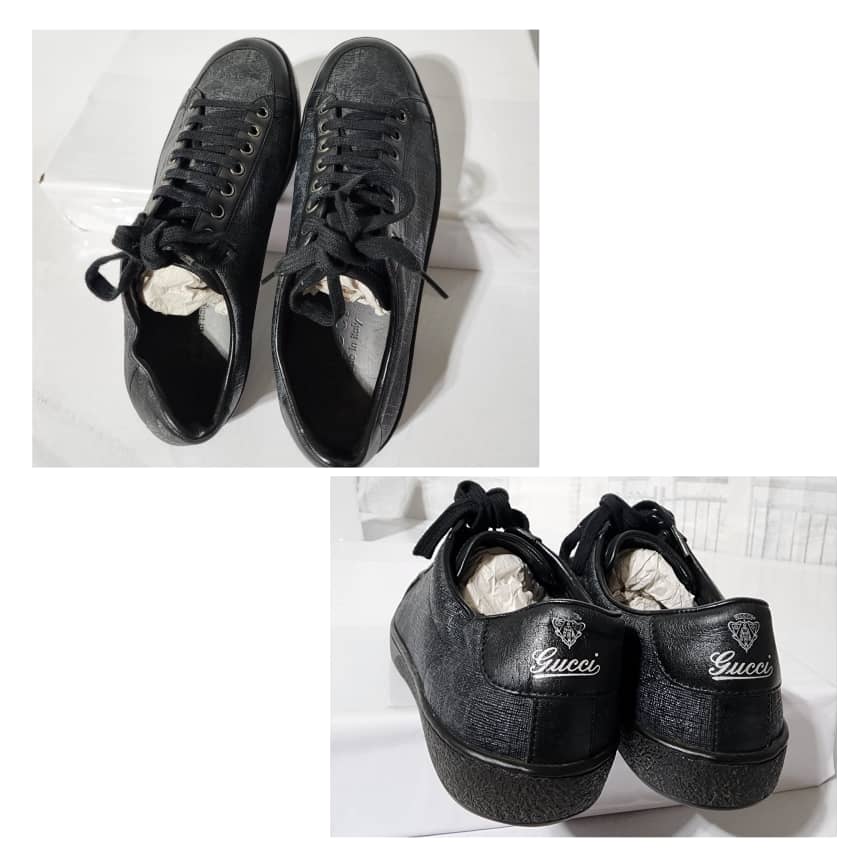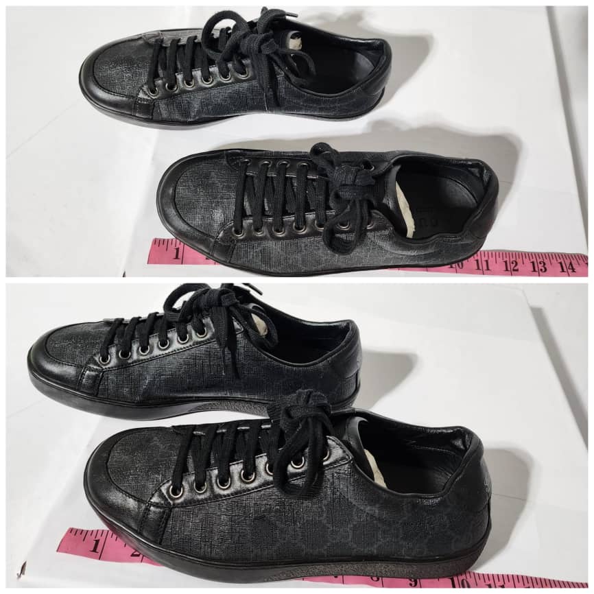 This authentic Gucci Ace Brooklyn Graphite GG Supreme Low Top Sneakers Black/ Grey Size 5.5 is in it’s pre-owned condition. The exterior is clean and beautiful. The interior is clean.