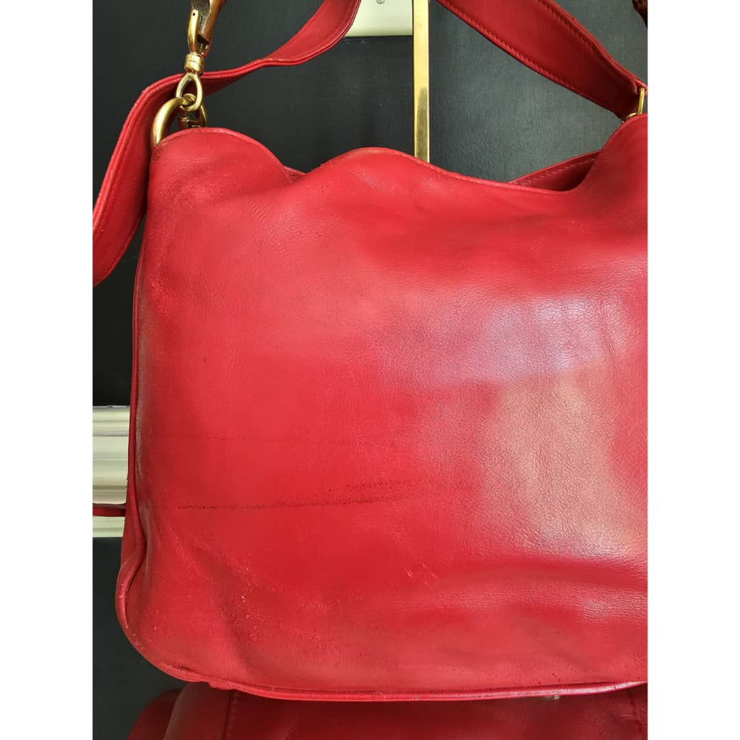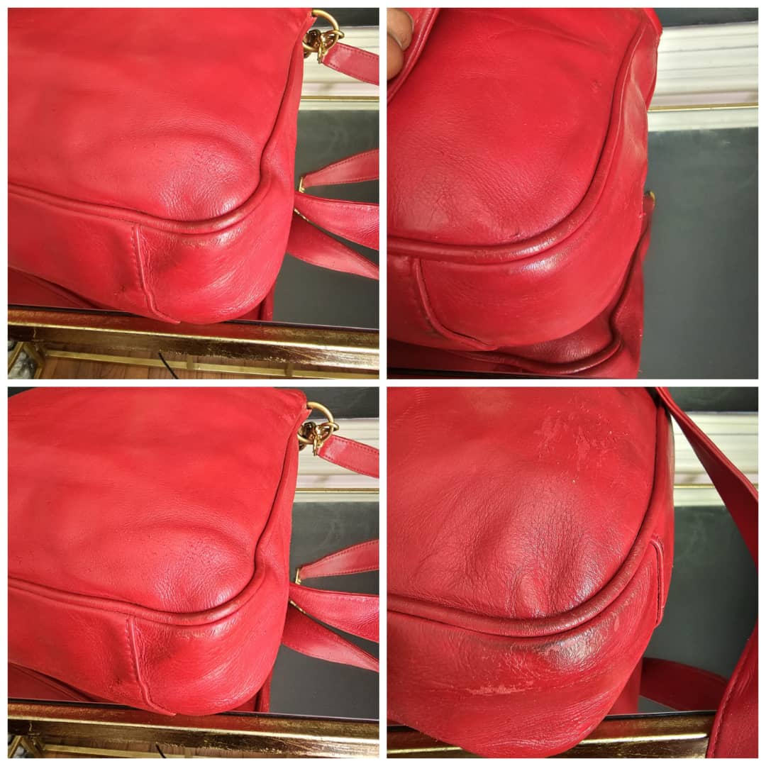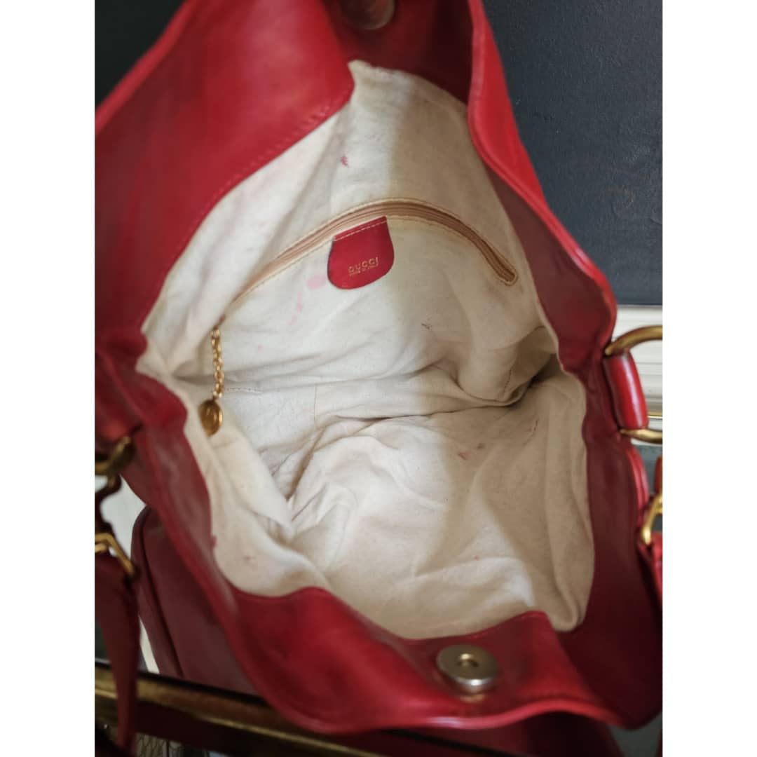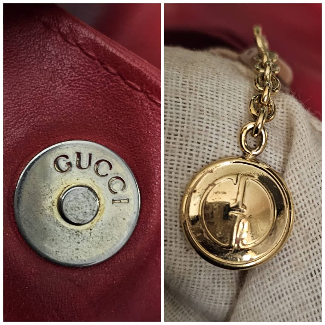 This authentic Gucci Bamboo 2Way Shoulder Bag Red is in itβs good pre-owned condition. The exterior leather is clean and beautiful, shows little black stain across the bag. Interior is clean. Can be worn as a handbag or shoulder bag. Beautiful bag.