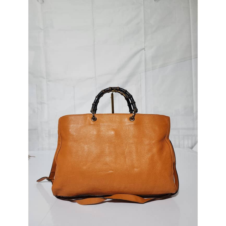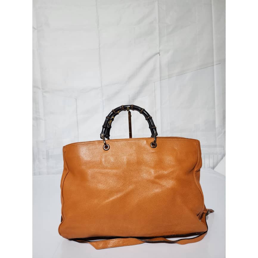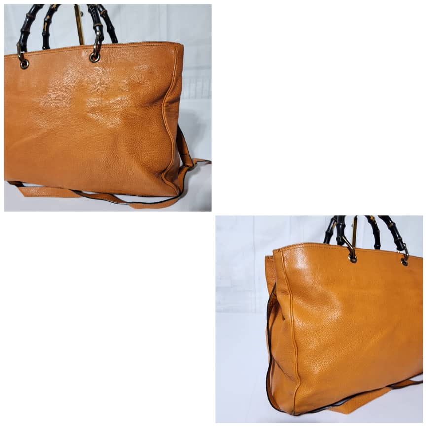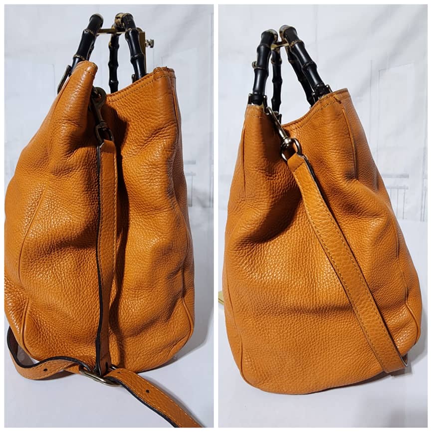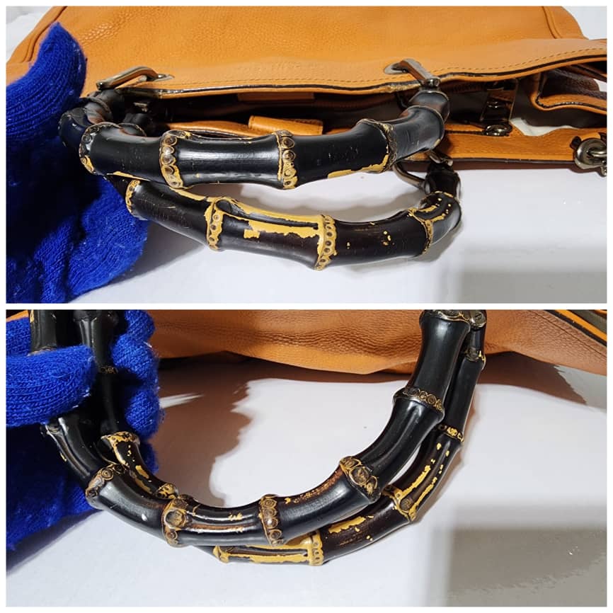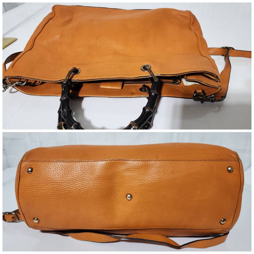 GUCCI Bamboo Top Handle Medium Tote Bag Orange is in it’s good pre-owned condition. The bag exterior is clean. The top trim shows some scratches. Interior is clean. The bamboo handles shows rubbing to it. The edges shows some rubbing (Kindly look at pictures above).
