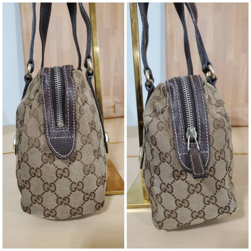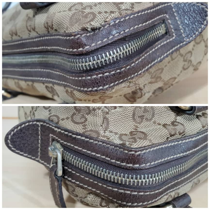 This authentic Gucci Beige/Brown GG Canvas and Leather Charmy Boston Bag is in it’s pre-owned condition. has sign of use .the exterior is clean. Interior is clean.