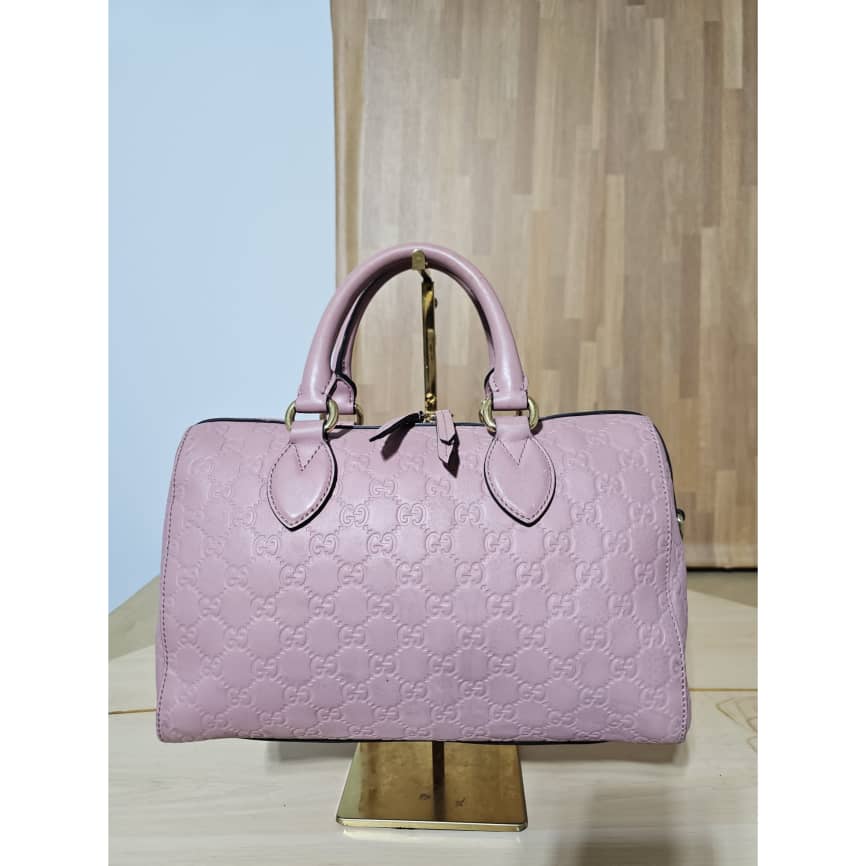 This authentic GUCCI Boston Guccissima GG Leather 2Way Shoulder Hand Bag is in it’s pre-owned good condition.The exterior leather is clean. The base edges shows little rubbing on it. The interior is clean.