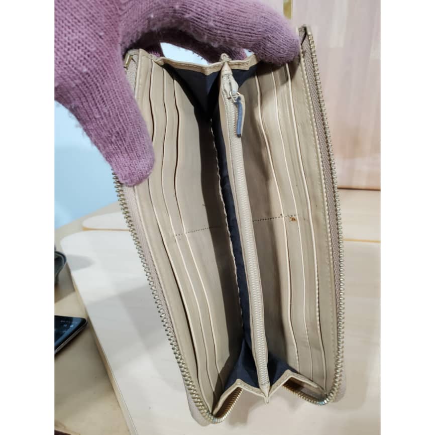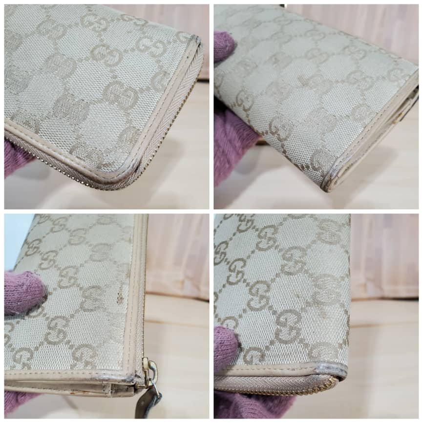 This authentic GUCCI Calfskin Monogram Zip Around Wallet Tan is in it’s pre-owned good condition. The exterior canvas is clean and beautiful. Interior is clean.