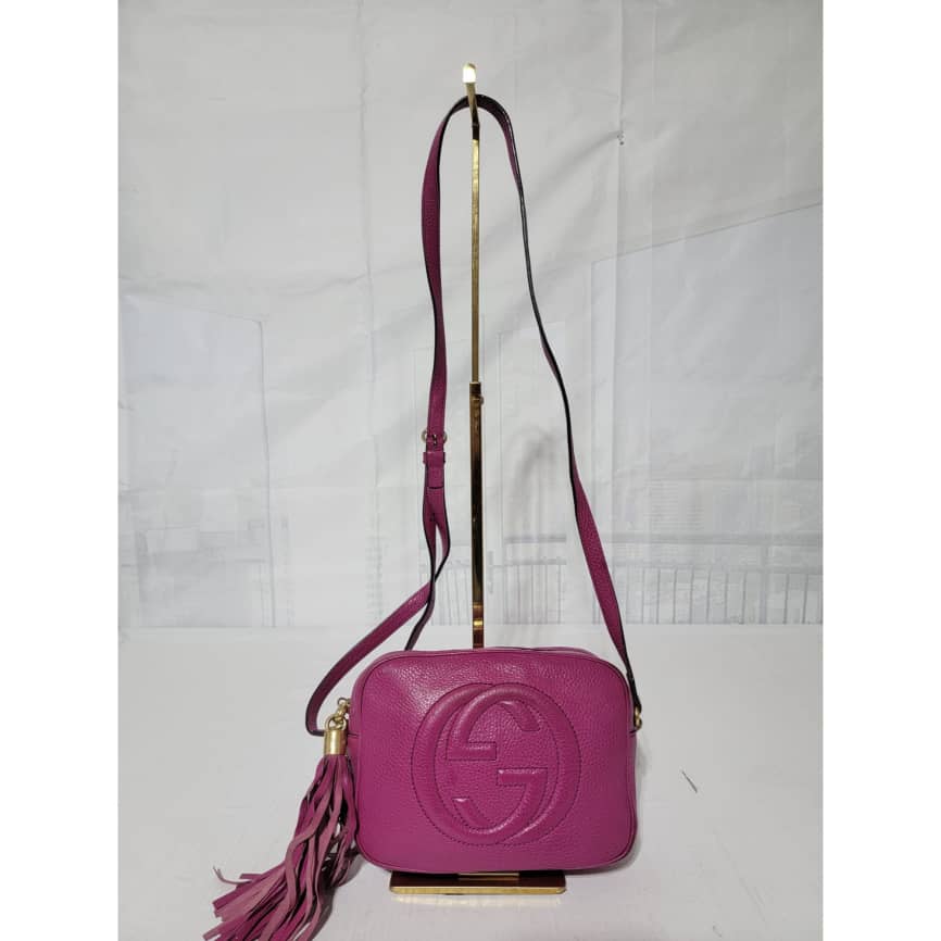 This authentic GUCCI Cellarius Calfskin Small Soho Disco Bag Magenta is in it’s pre-loved condition. The exterior is clean and beautiful. Interior is clean, shows a little sign of use (Kindly look at pictures above). The exterior shows little bit of scratch to it, it is not so obvious.