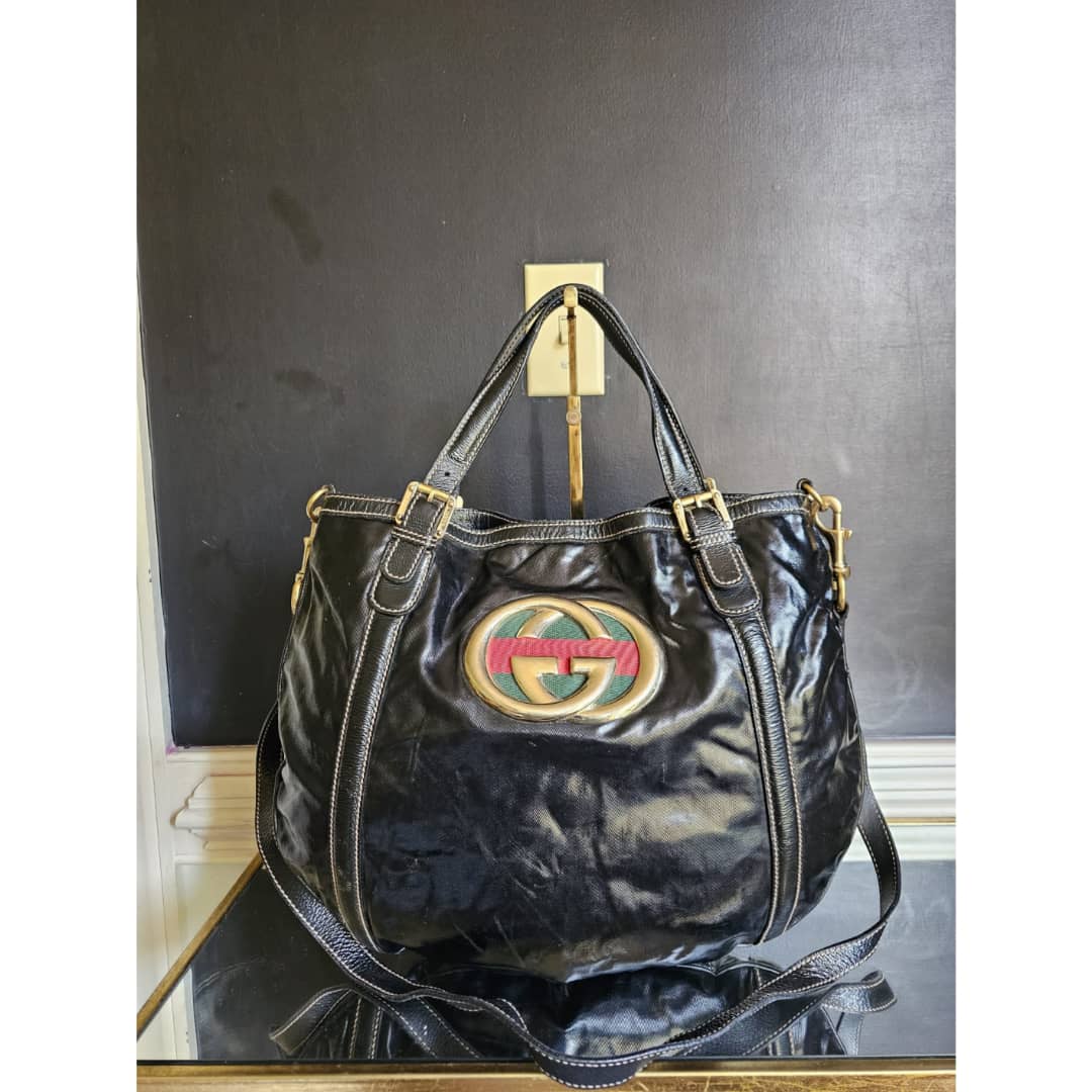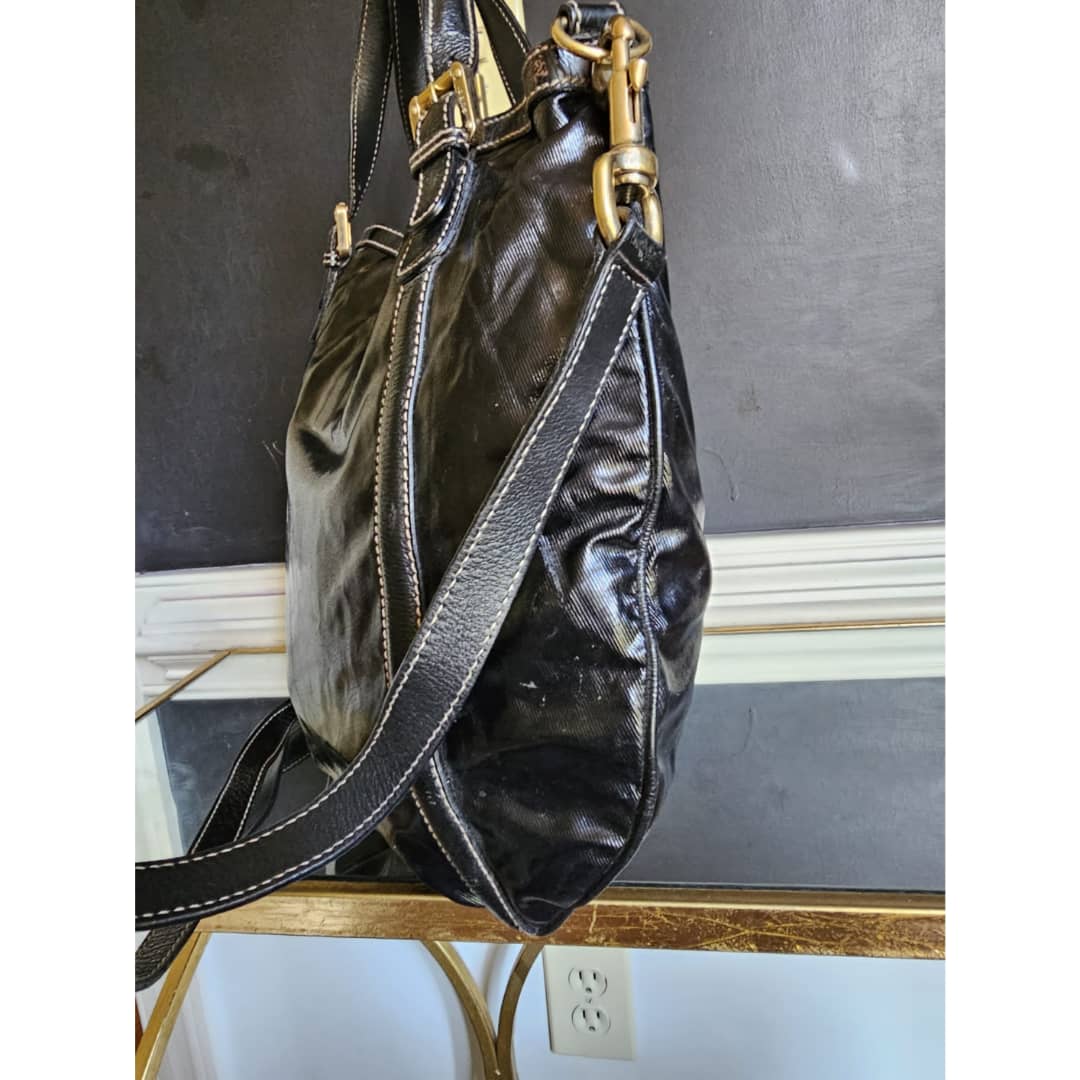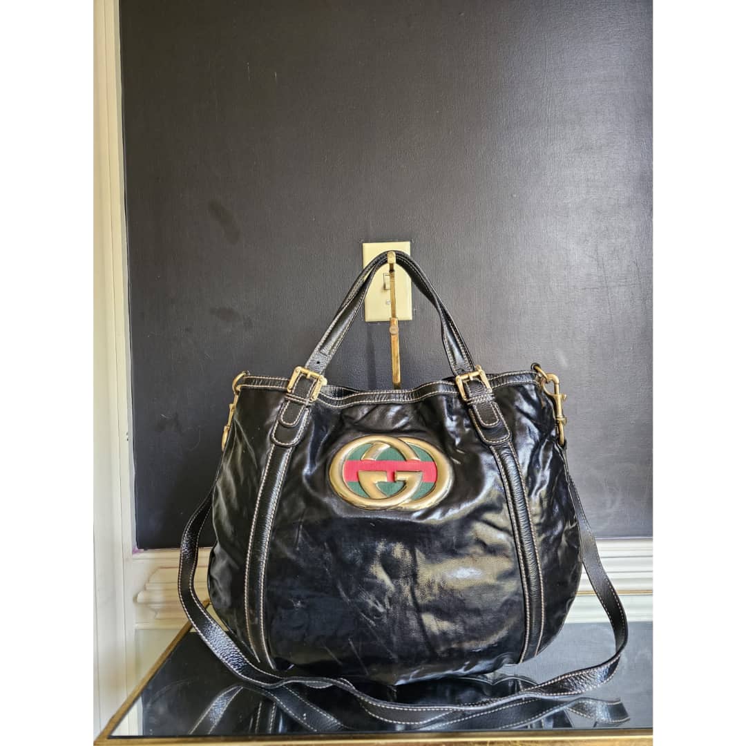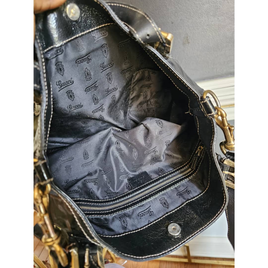 This authentic Gucci Coated Canvas and Patent Leather Dialux Britt Hobo Bag Black is in it’s good pre-owned condition. The exterior patent leather is clean and beautiful. Interior is clean. Gold hardware. Comes with a strap.
