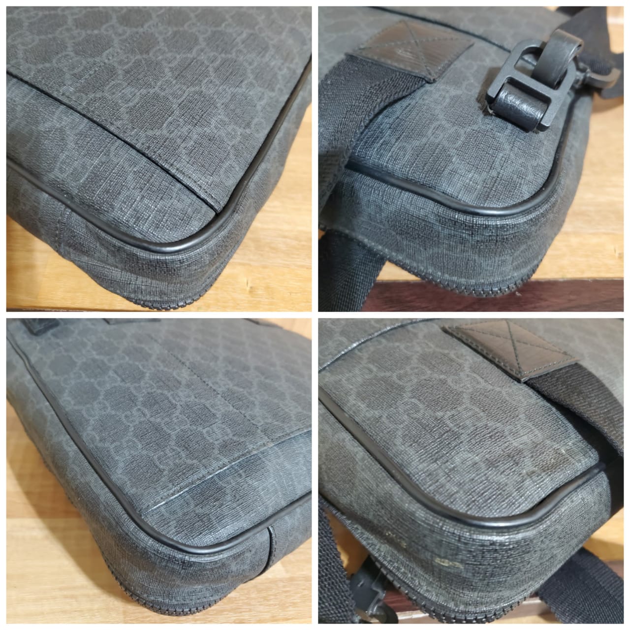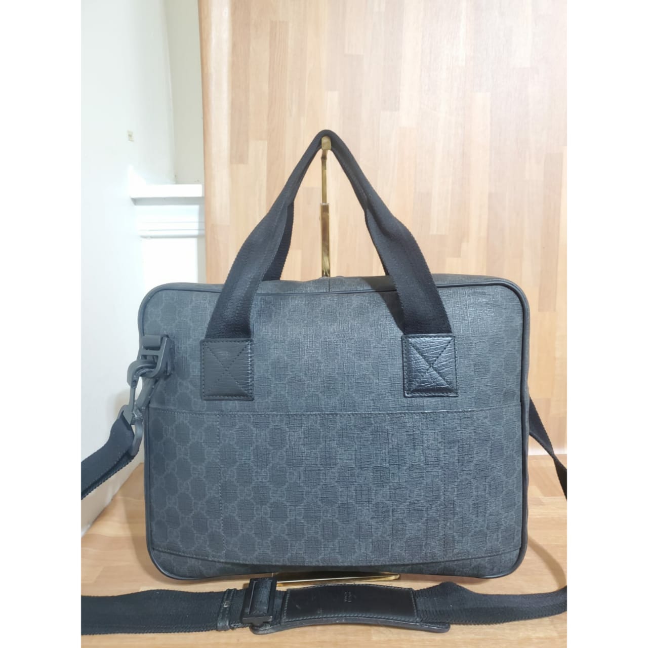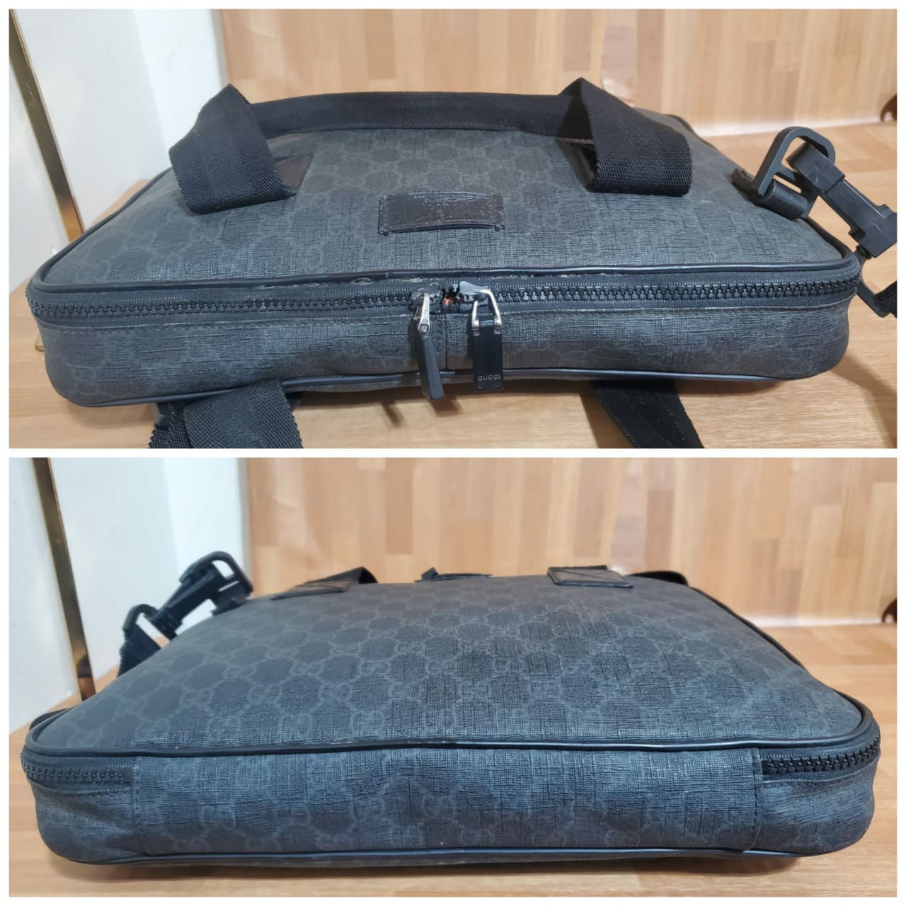GUCCI GG Plus Monogram Medium Computer Case Black bag is in it’s good pre-owned condition. The exterior coated canvas is clean and beautiful. Interior is clean.