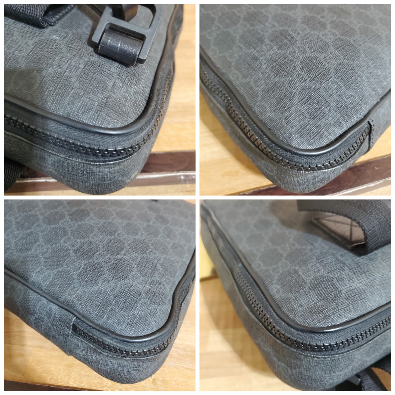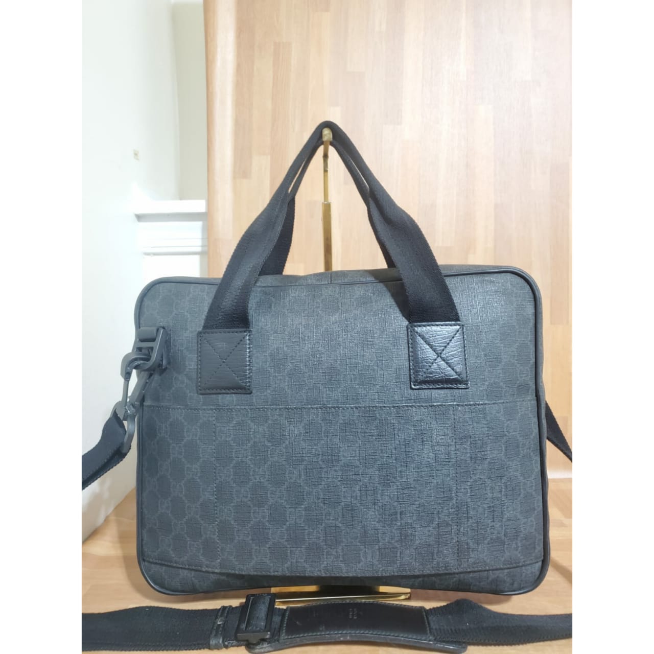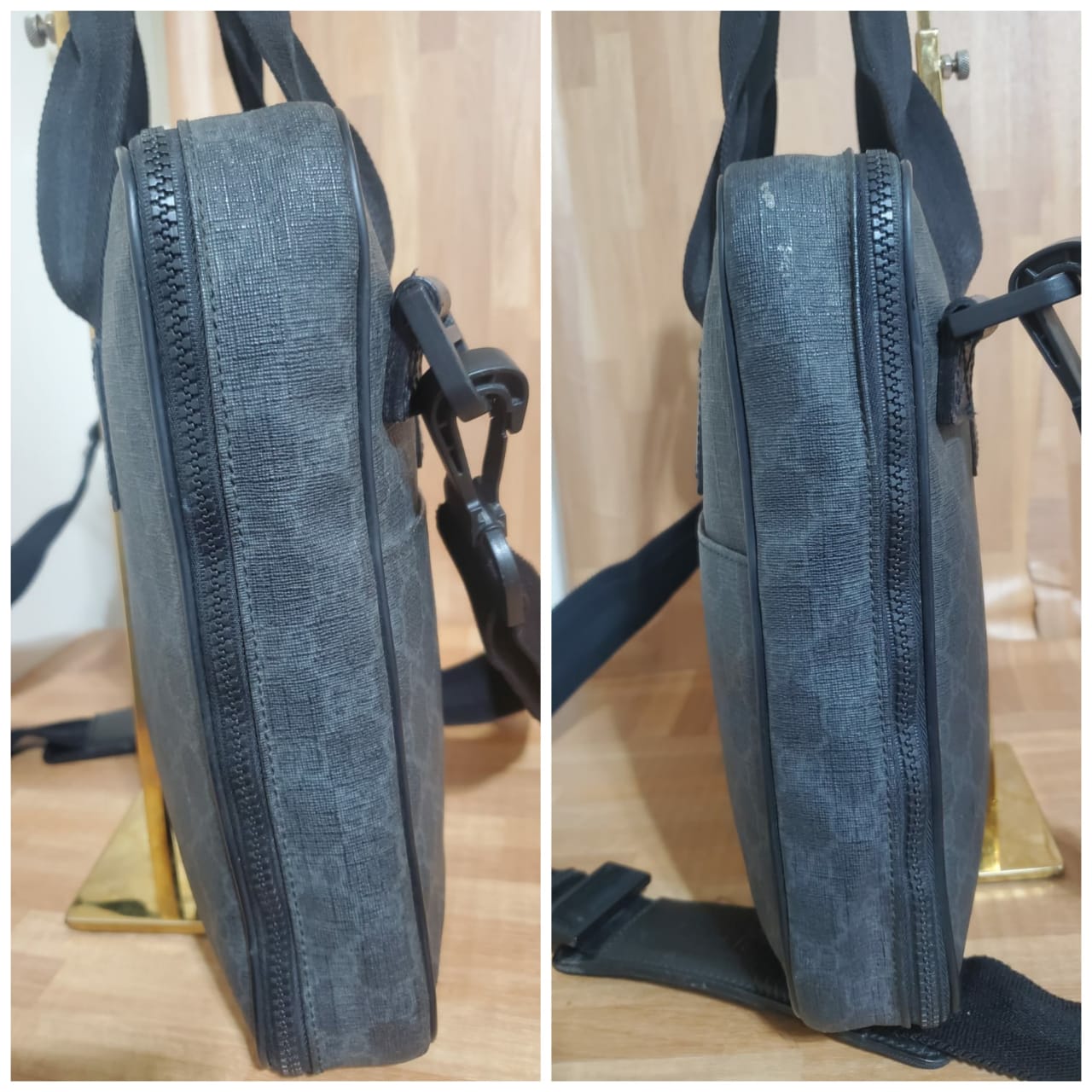 GUCCI GG Plus Monogram Medium Computer Case Black bag is in it’s good pre-owned condition. The exterior coated canvas is clean and beautiful. Interior is clean.