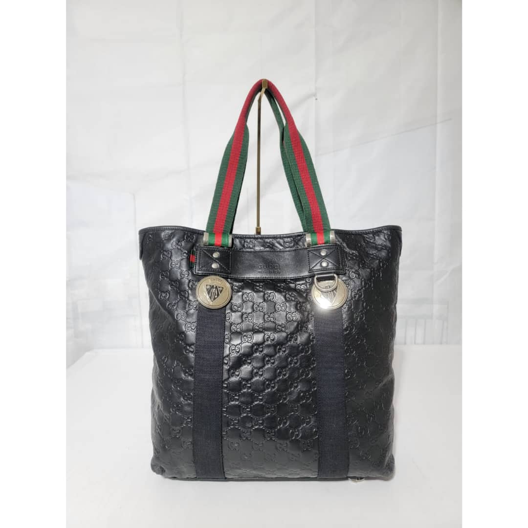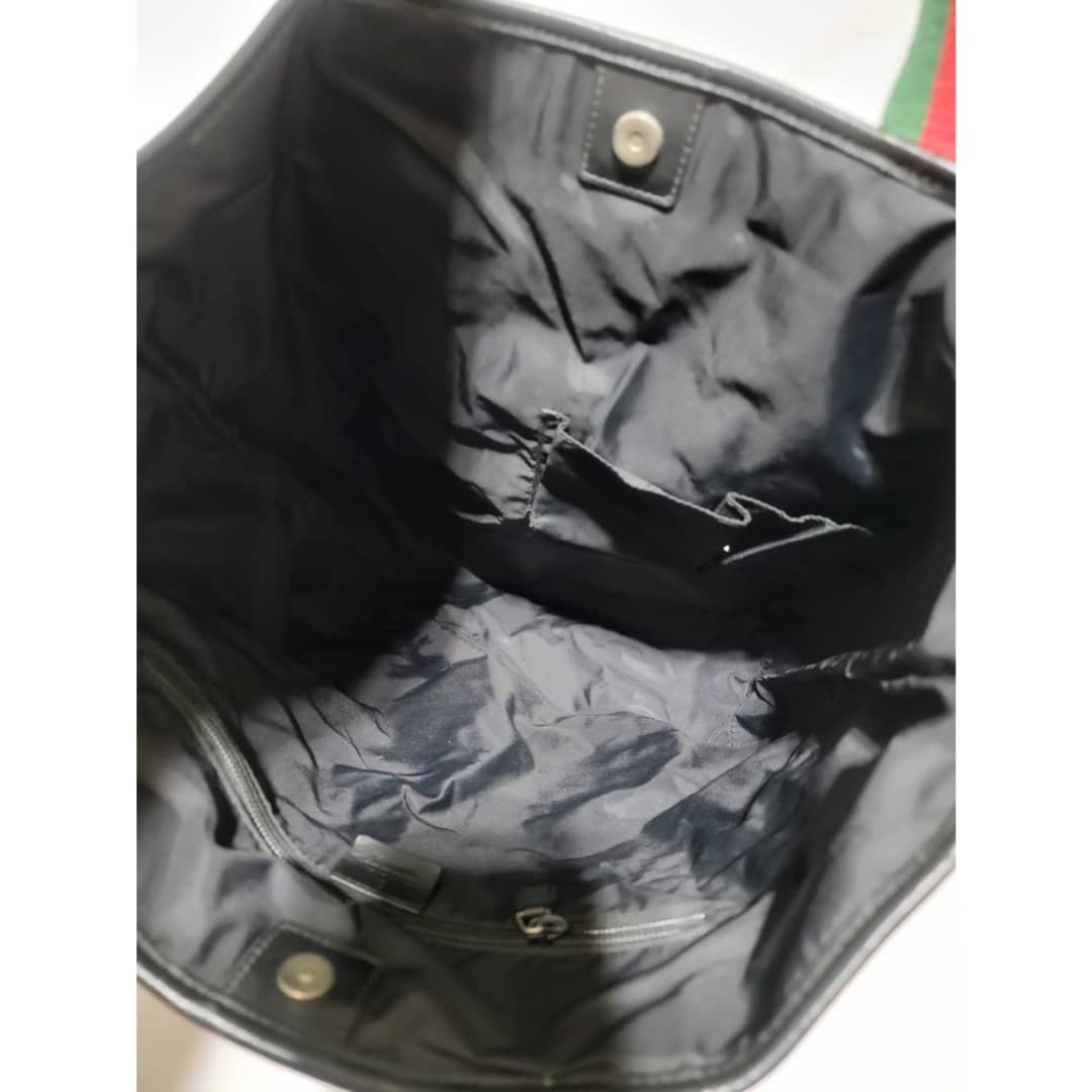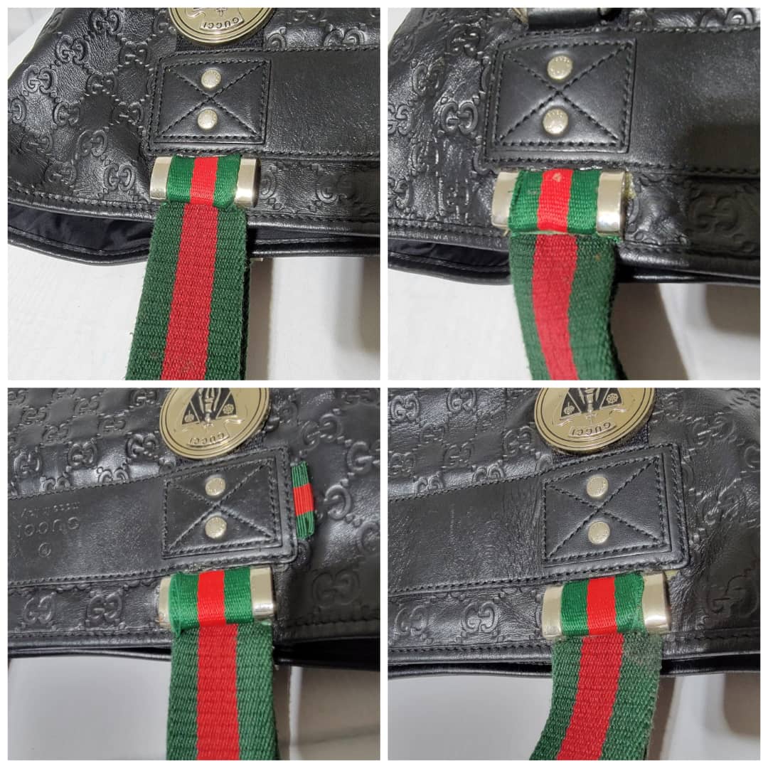 This authentic Gucci crystal Guccissima gg Web medium Tote Bag Black is in it’s good pre-owned condition. The exterior leather is clean and beautiful. Interior is clean. It comes with a web handle design. Silver hardware. It is a beautiful GG print tote. Kindly look at the little wear on the web design on the shoulder handles
