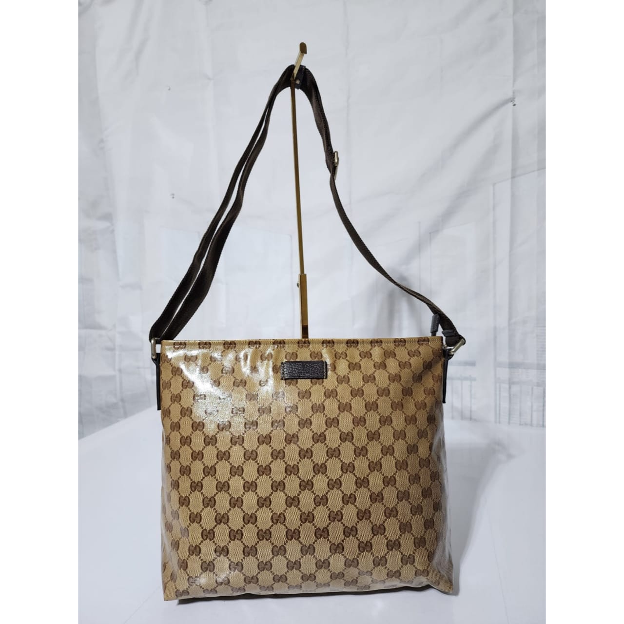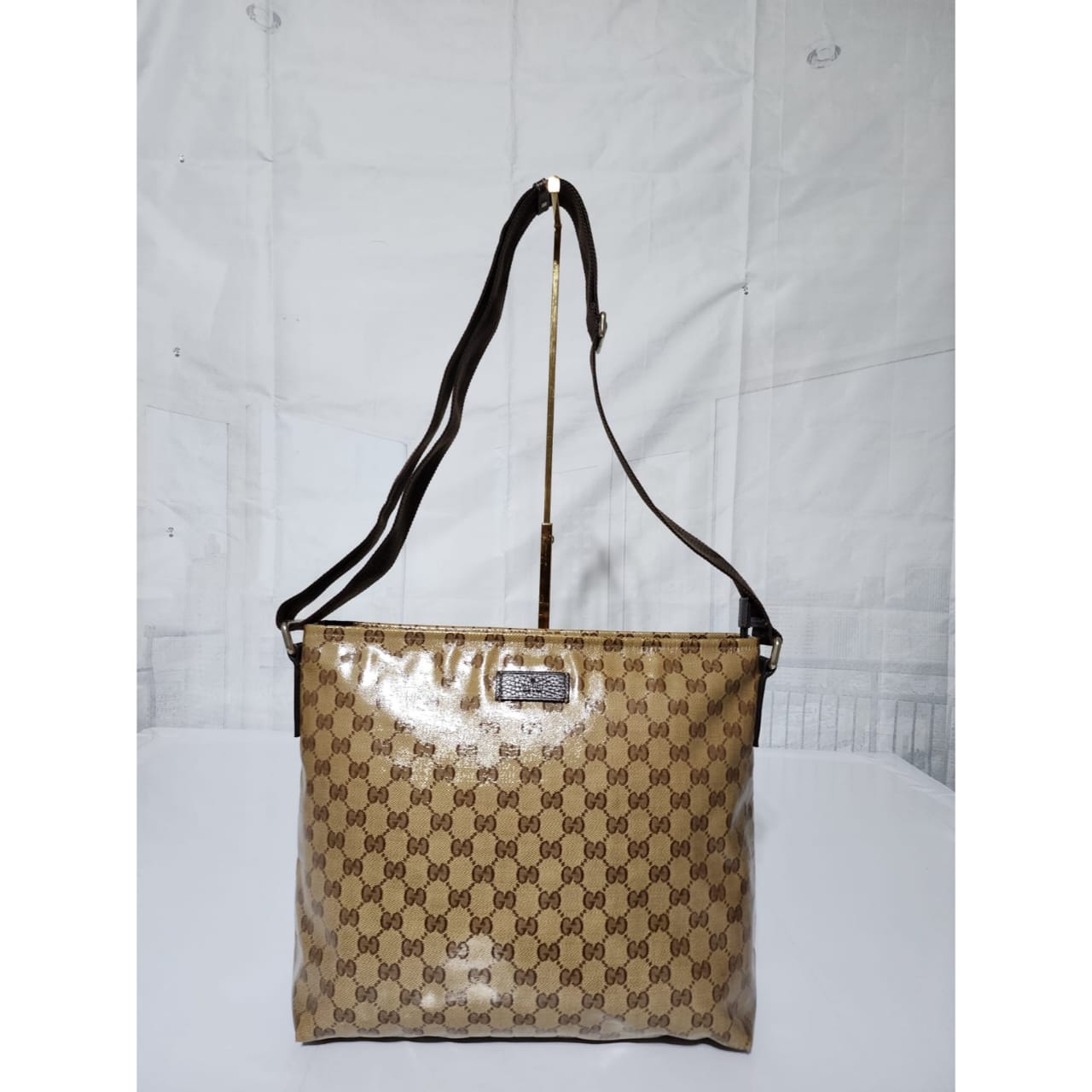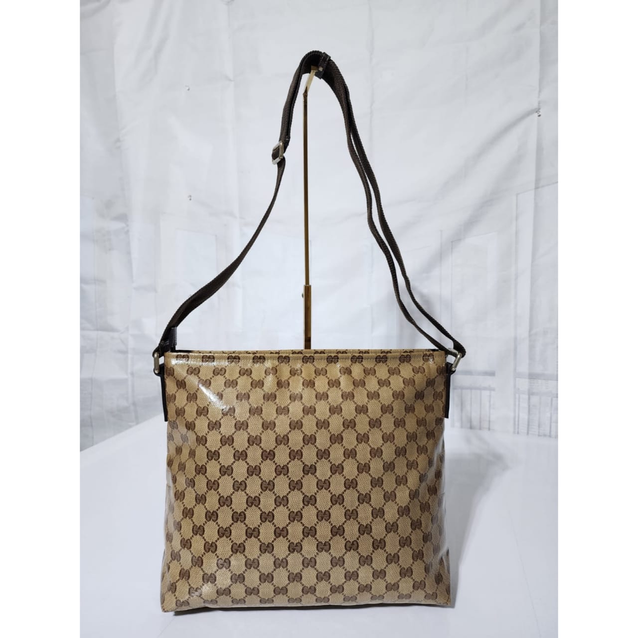 This authentic GUCCI Crystal Monogram Flat Messenger Bag Dark Brown is in itβs good pre-owned condition. The exterior patent leather is clean and beautiful. It is a beautiful patent bag. Interior is clean. The strap is adjustable, it can be worn as a shoulder/crossbody bag.