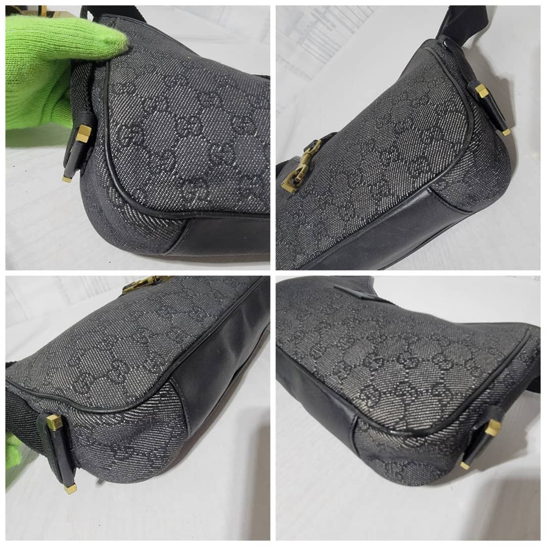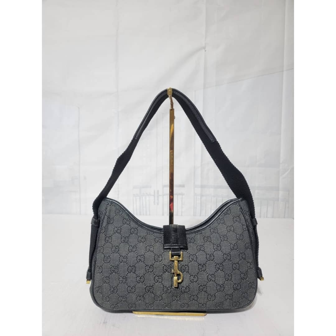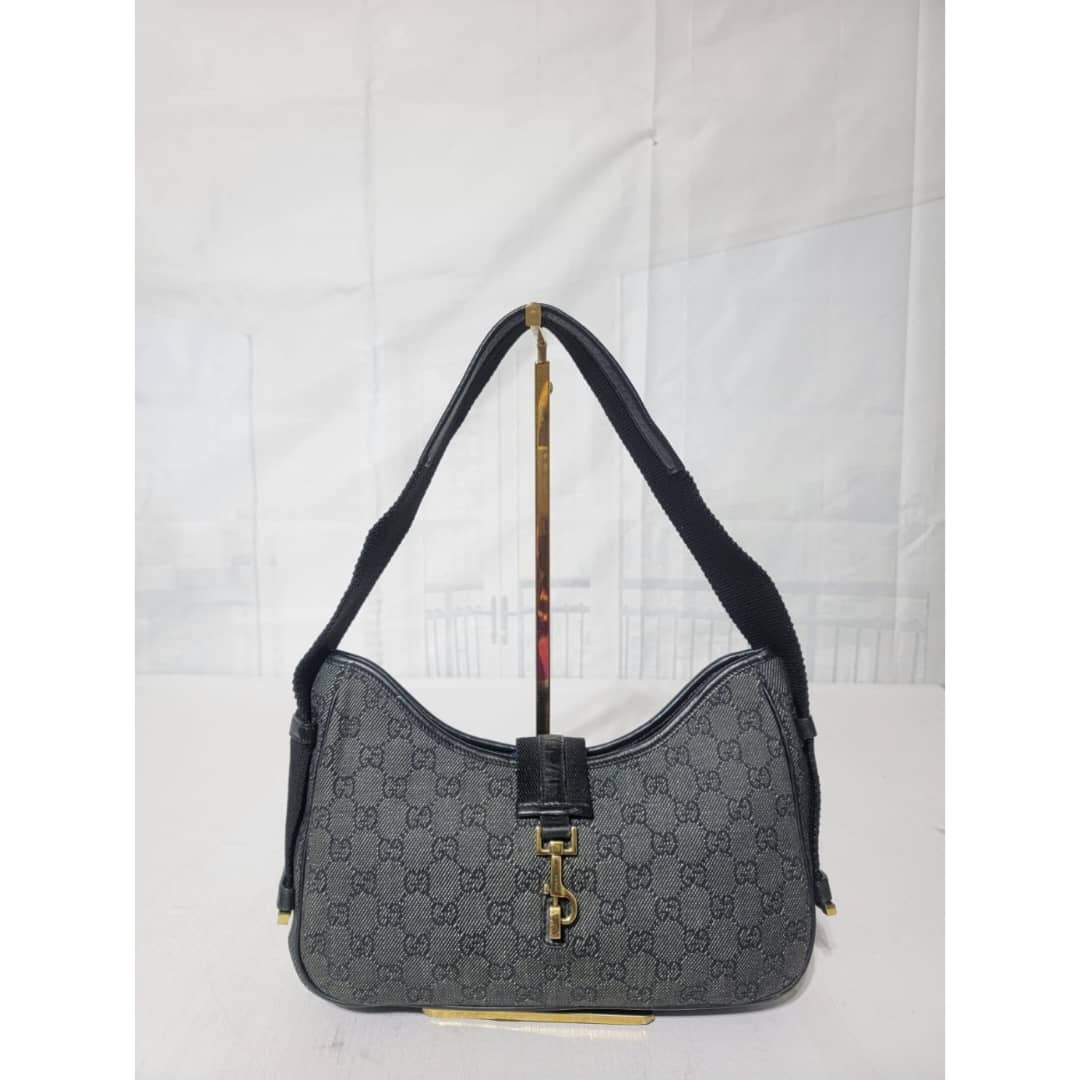 This authentic GUCCI DENIM JACKIE SHOULDER BAG BLACK/DARK GREY is in it’s good pre-owned condition. The exterior is clean and beautiful. Interior is clean. Gold hardware.