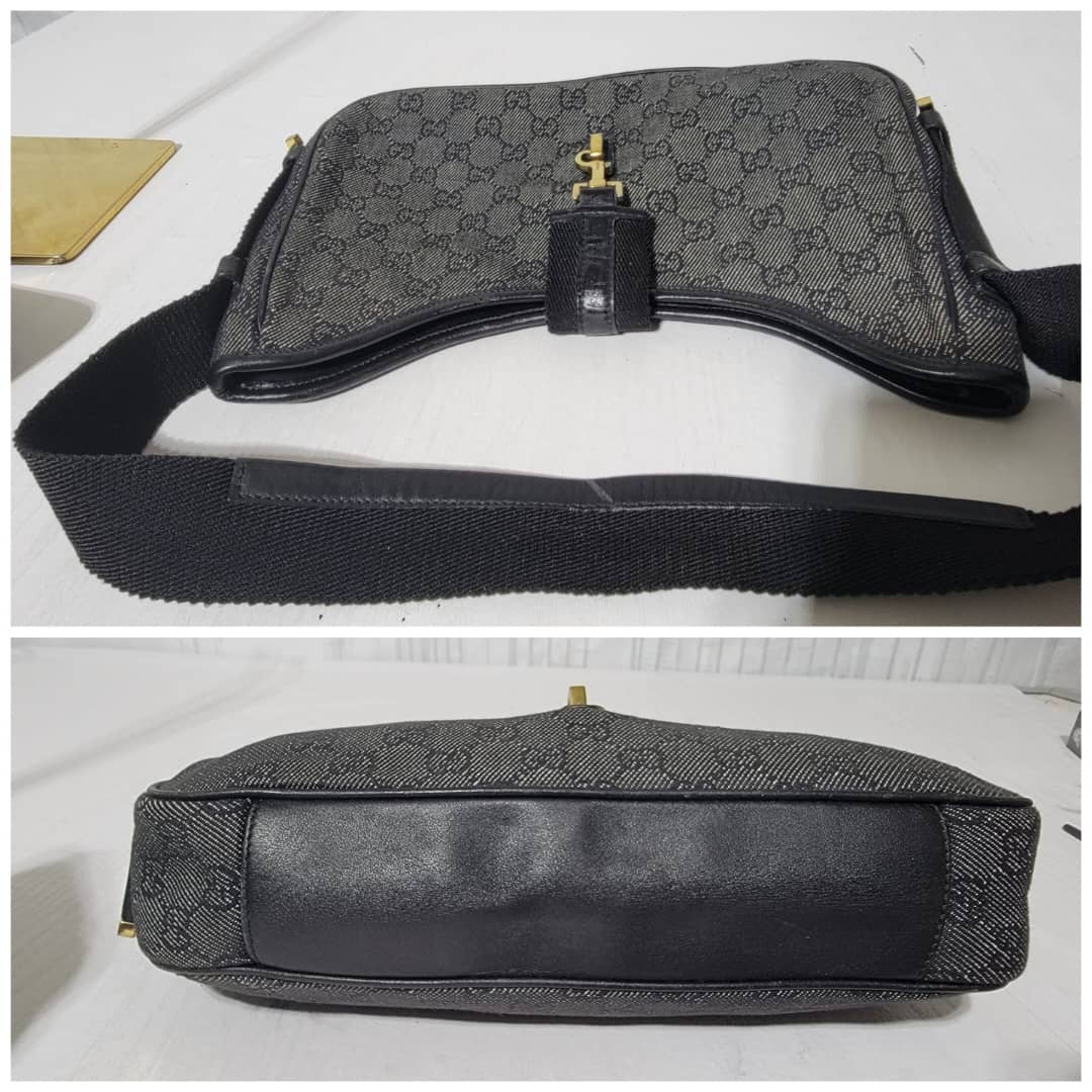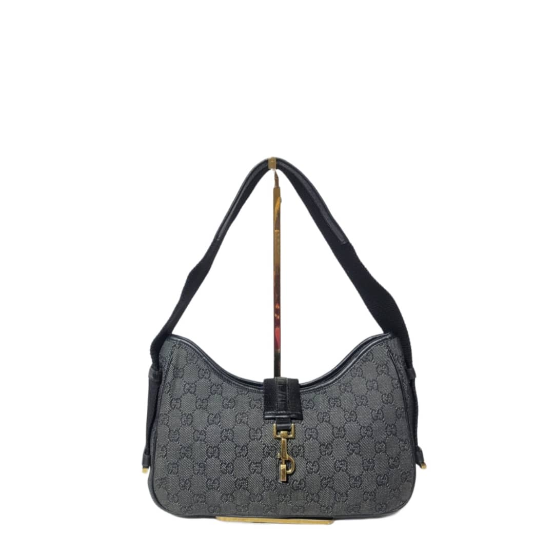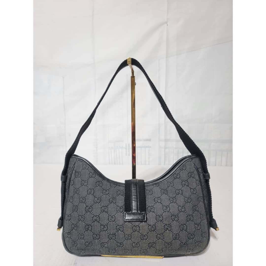 This authentic GUCCI DENIM JACKIE SHOULDER BAG BLACK/DARK GREY is in it’s good pre-owned condition. The exterior is clean and beautiful. Interior is clean. Gold hardware.