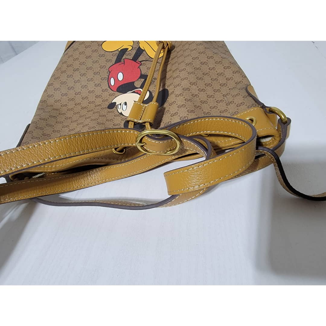 This authentic GUCCI DISNEY Sweets GG Micky Mouse brown leather trim bucket bag is in it’s good pre-owned condition. The exterior is clean and beautiful. Interior is clean. It can be worn as a crossbody/shoulder bag (Kindly look at pictures above).