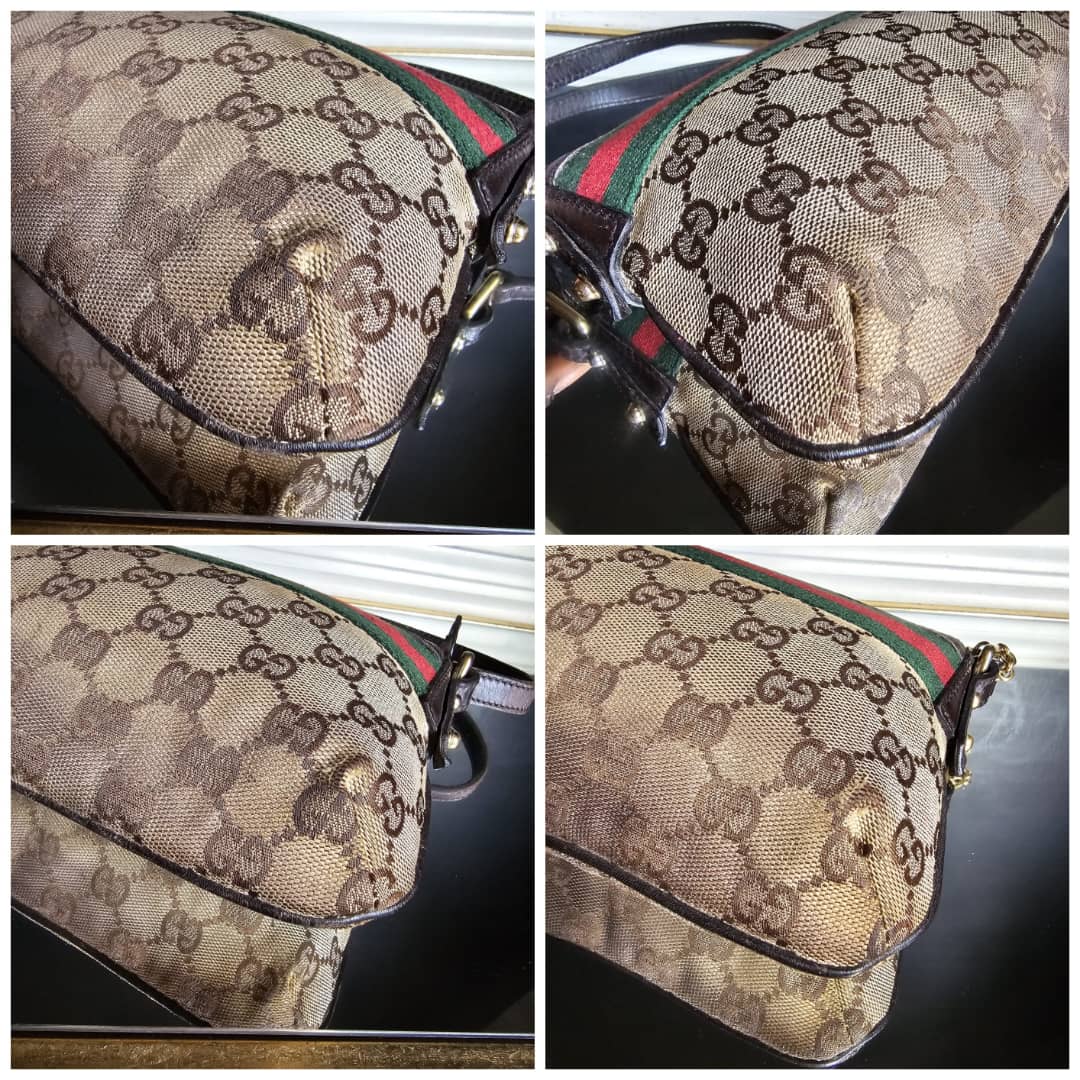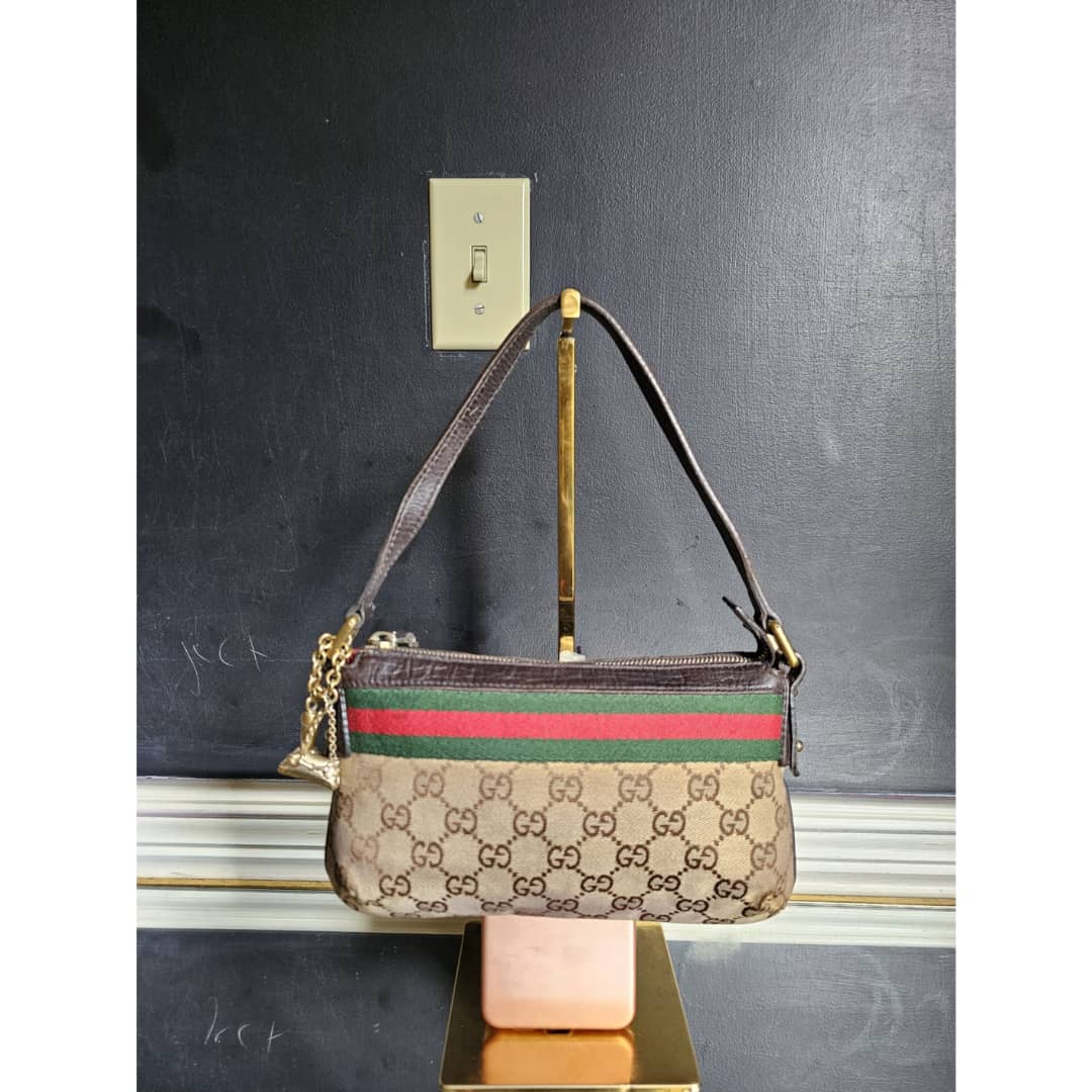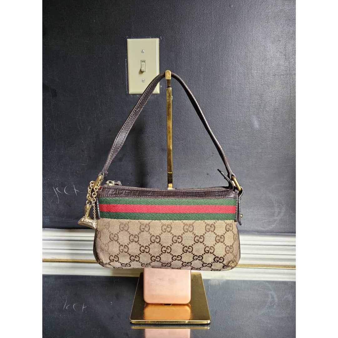 This authentic Gucci GG Canvas and Leather Web Pochette Clutch Bag Beige/Dark Brown is in it’s good pre-owned condition. The exterior canvas and leather is clean and beautiful. The base of the bag shows some dark rubbing on it (Kindly review pictures). Interior is clean. Gold hardware.