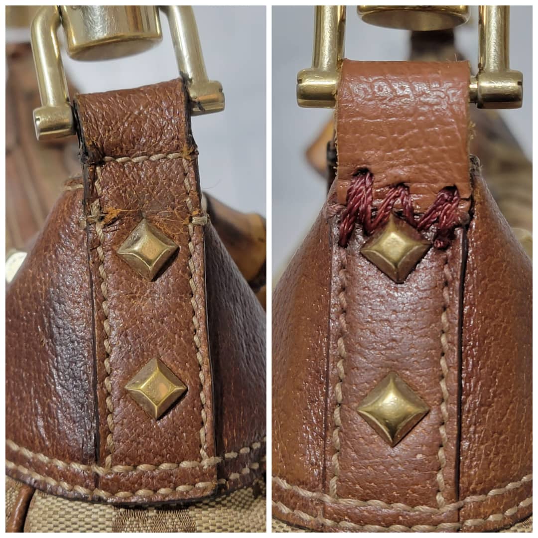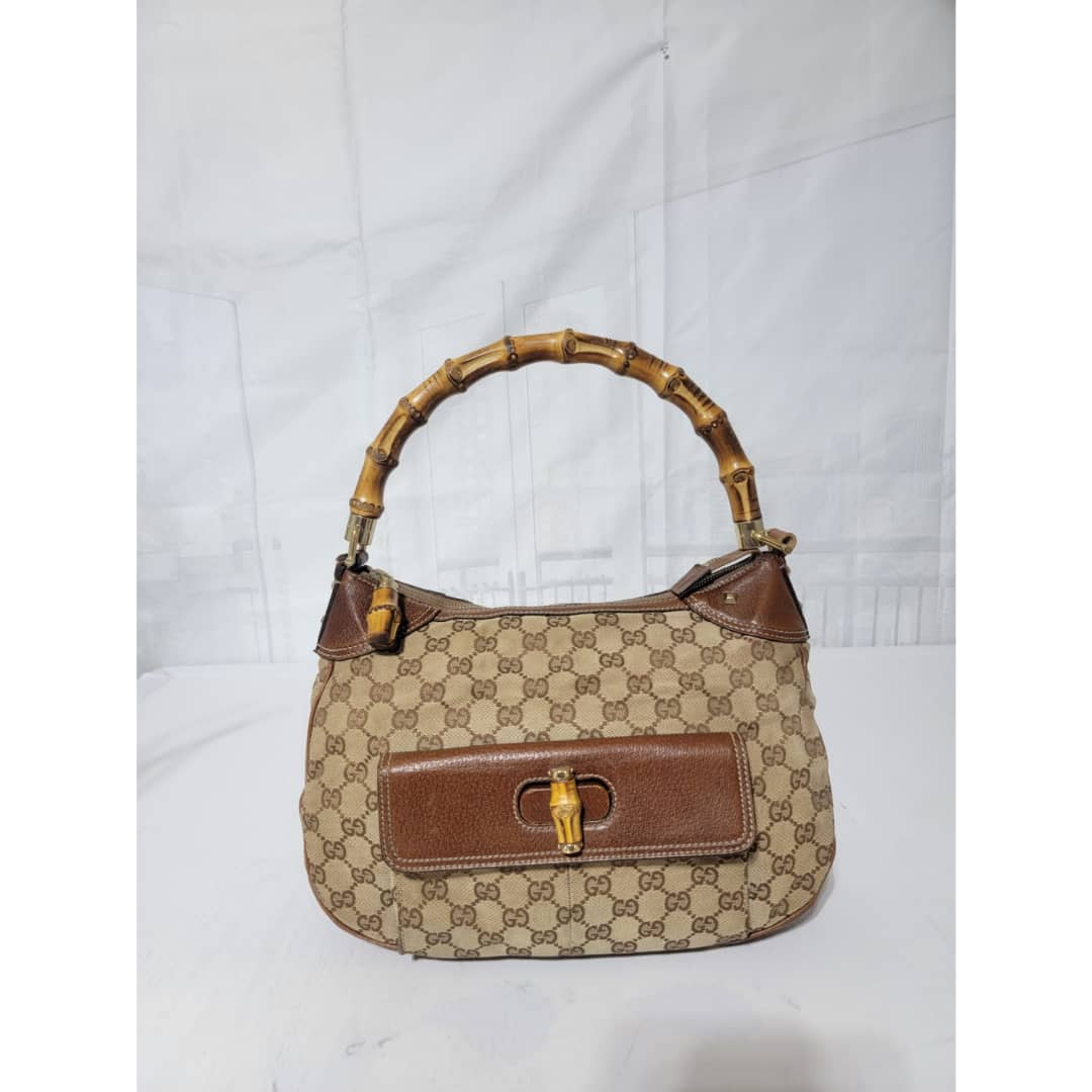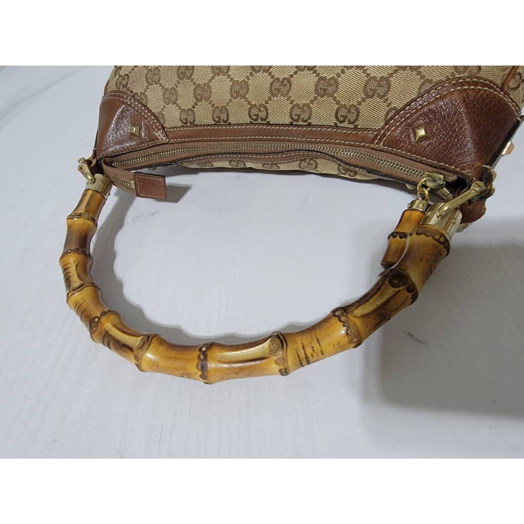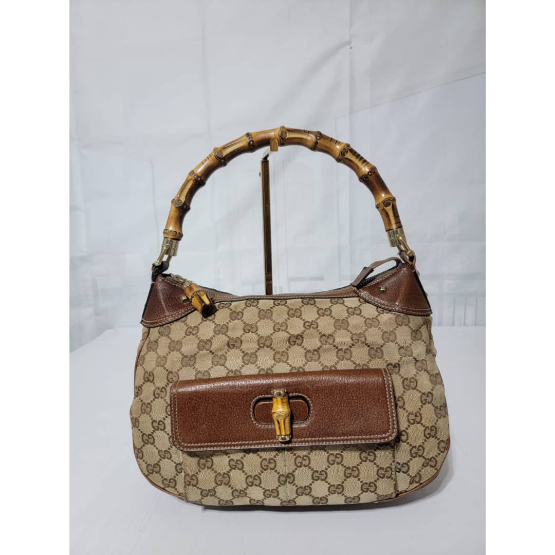This authentic Gucci gg Canvas and Leather Bamboo Handle Top Handle Bag Beige/Brown is in it’s good pre-owned condition. The exterior canvas is clean and beautiful. The base edges shows scratches and scuffs to the brown leather trim that runs across the bag. There is wear to the side of the handle (Kindly look at pictures for details). Interior is clean. Gold hardware.