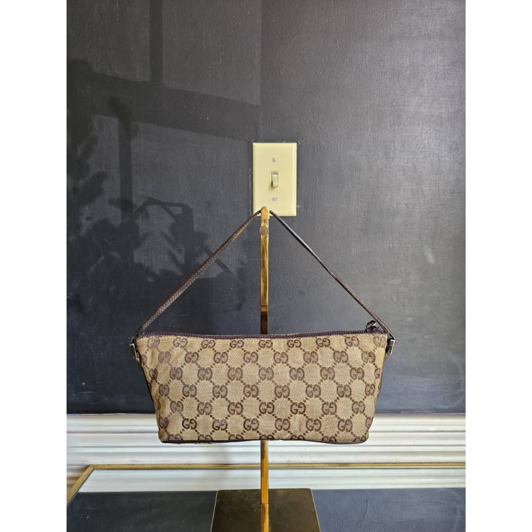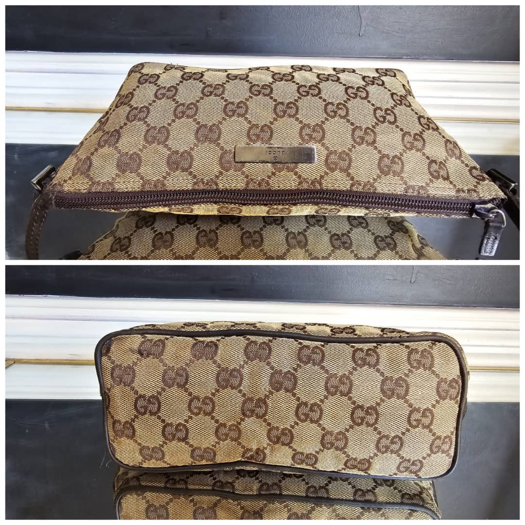 This authentic Gucci GG Canvas Boat Baguette Brown/Beige is in it’s good pre-owned condition. The exterior canvas is clean and beautiful. Interior is clean.