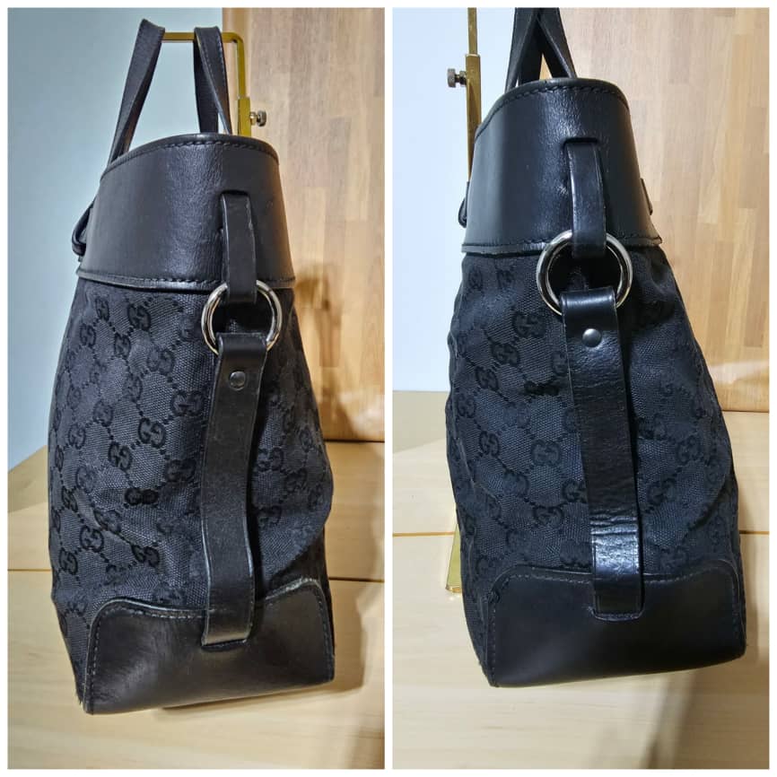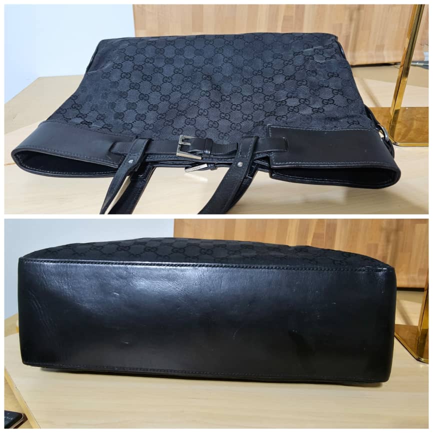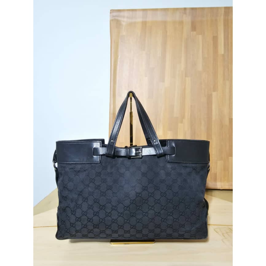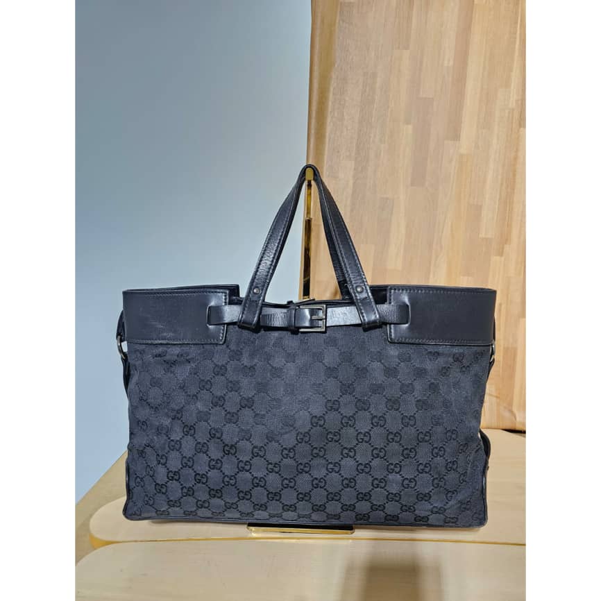 This authentic Gucci GG Canvas Buckle Belt Tote Bag Black. is in it’s pre-owned good condition. The exterior canvas is clean. Interior is clean and beautiful too.