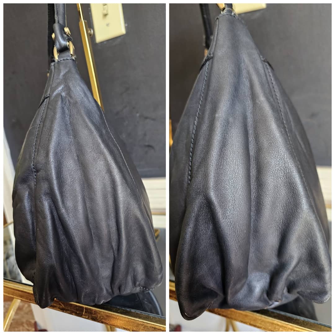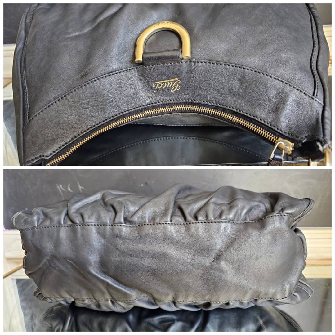 This authentic Gucci GG Canvas D Gold Hobo Bag is in it’s good pre-owned condition. The exterior leather is clean and beautiful. Interior is clean. Gold hardware. Beautiful bag