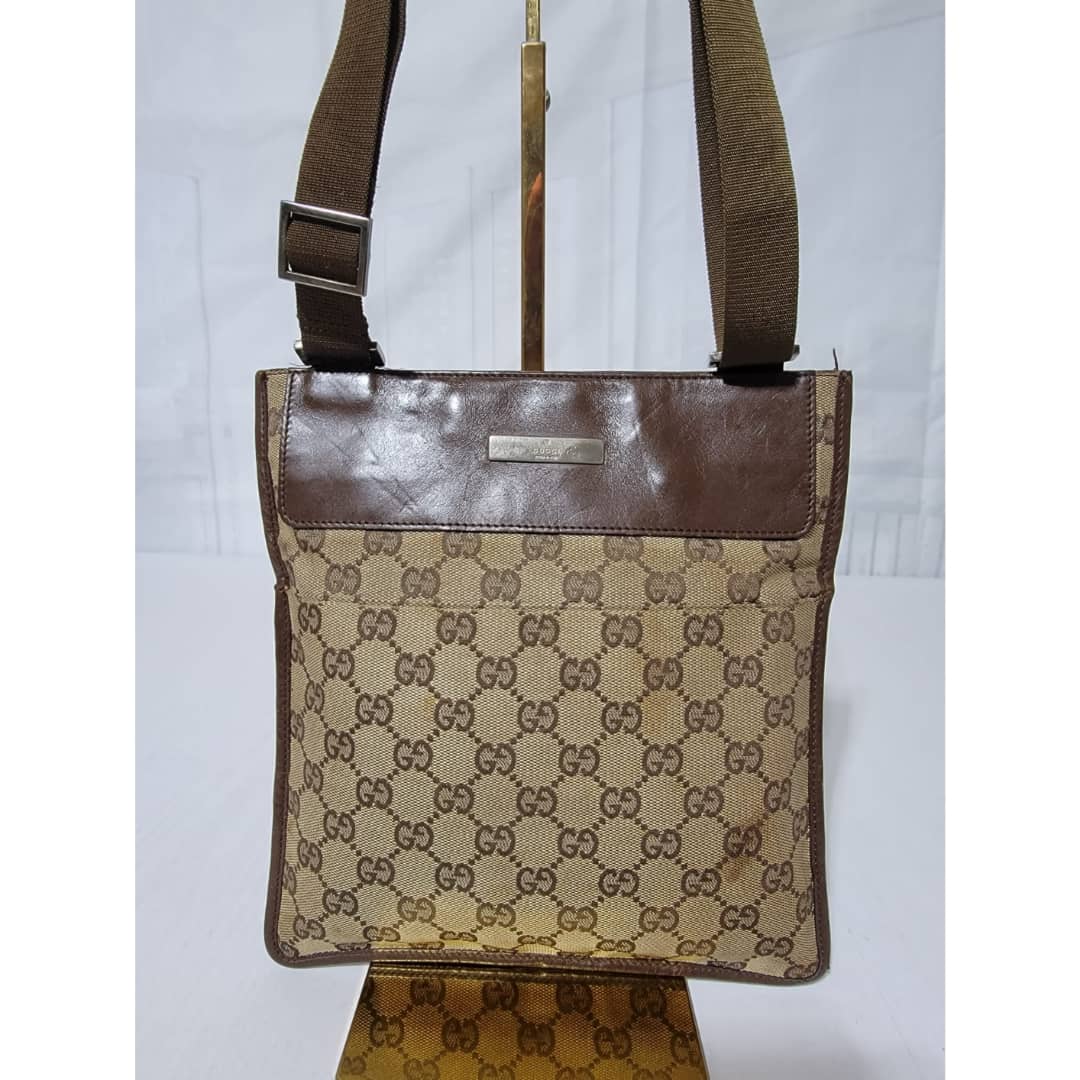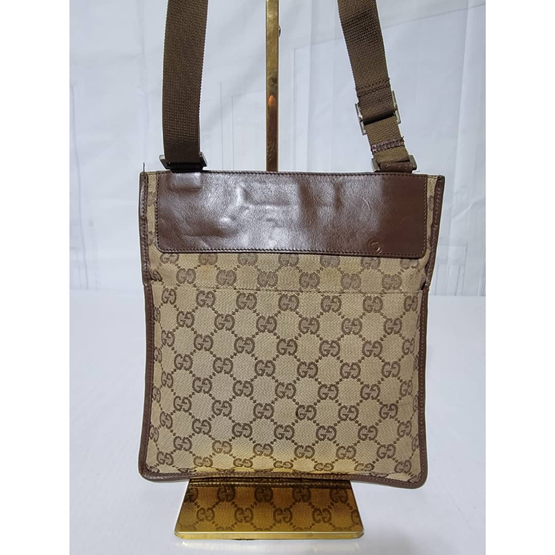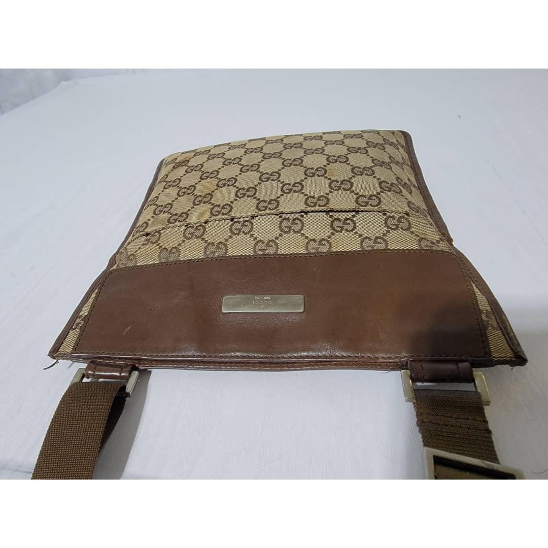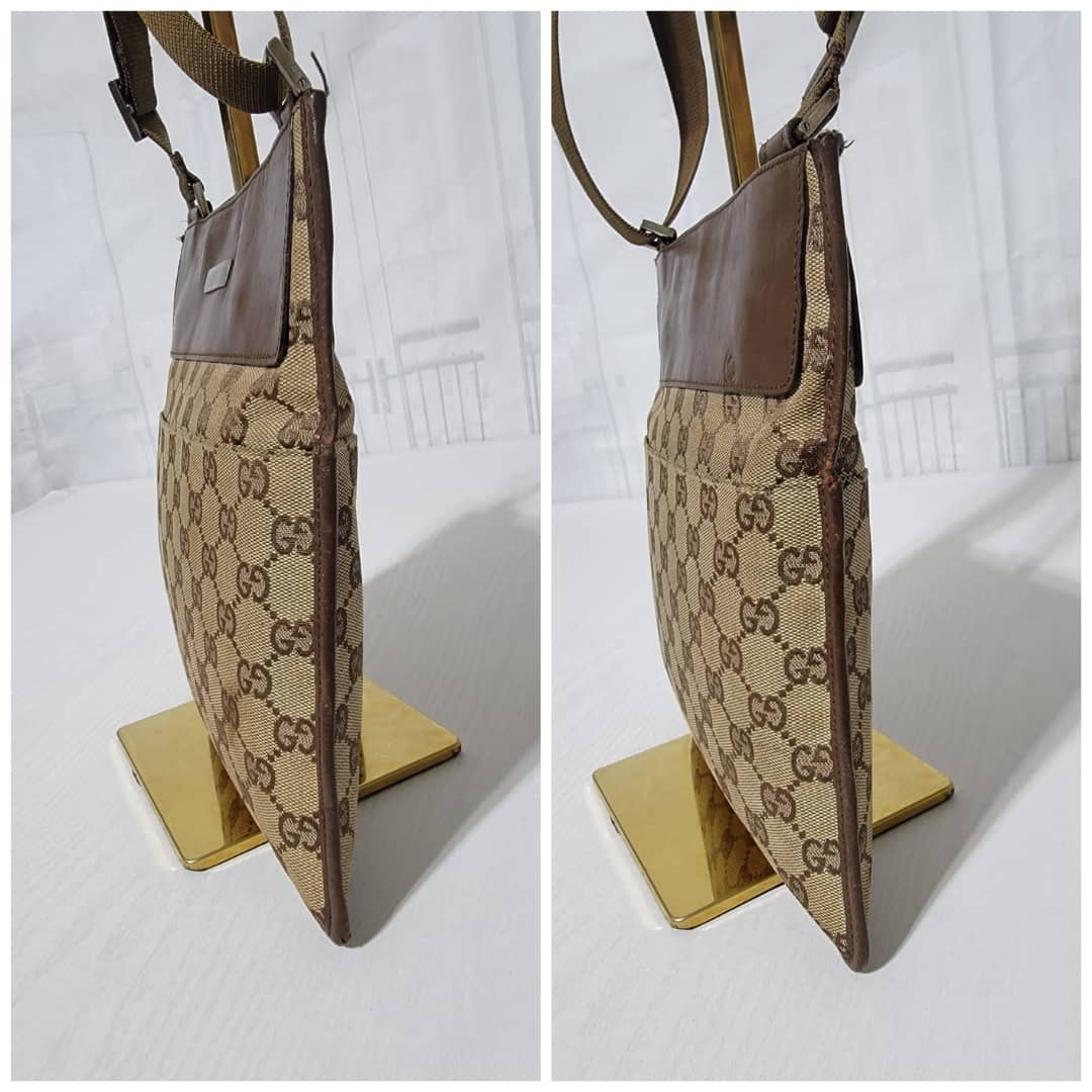 This authentic GUCCI GG CANVAS SMALL MESSENGER CROSSBODY BAG BROWN/BEIGE is in it’s good pre-owned condition. The exterior canvas is clean and beautiful, Interior is clean. Little scratches by the edge of the leather strap. Silver hardware. Adjustable strap. Kindly look at pictures above