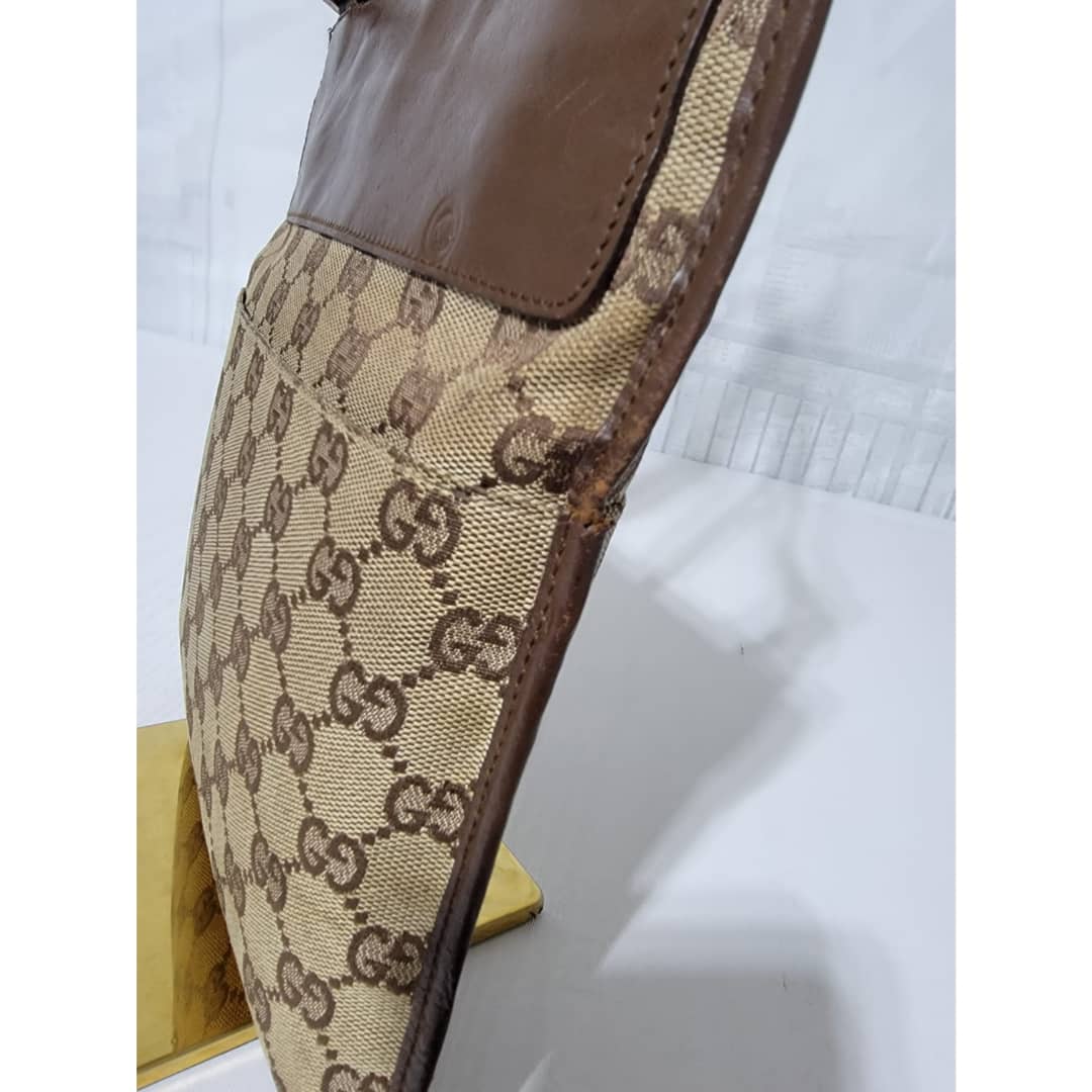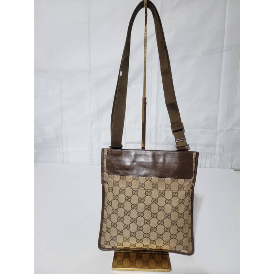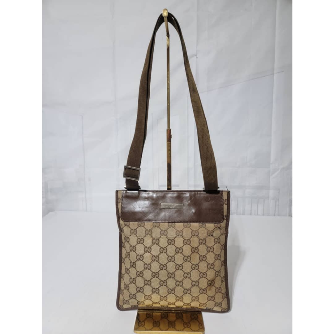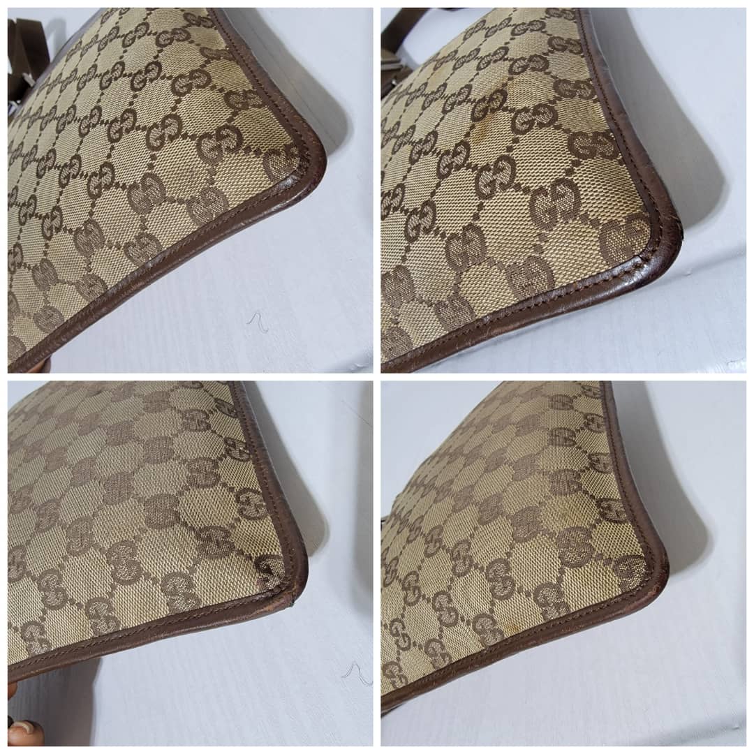 This authentic GUCCI GG CANVAS SMALL MESSENGER CROSSBODY BAG BROWN/BEIGE is in it’s good pre-owned condition. The exterior canvas is clean and beautiful, Interior is clean. Little scratches by the edge of the leather strap. Silver hardware. Adjustable strap. Kindly look at pictures above