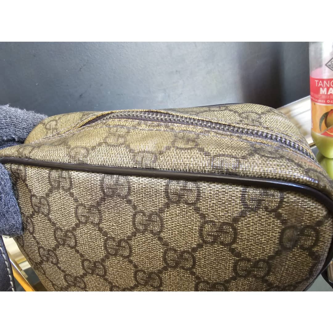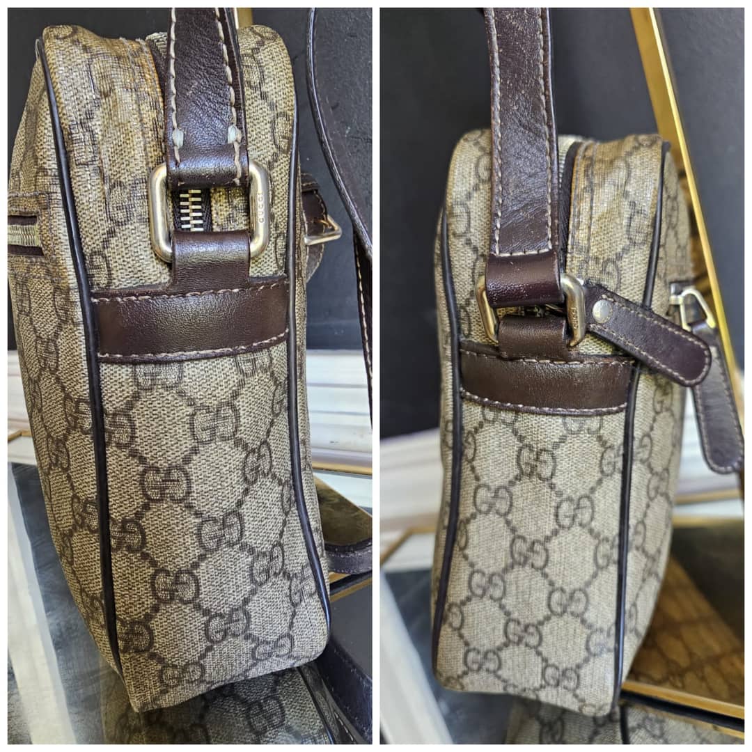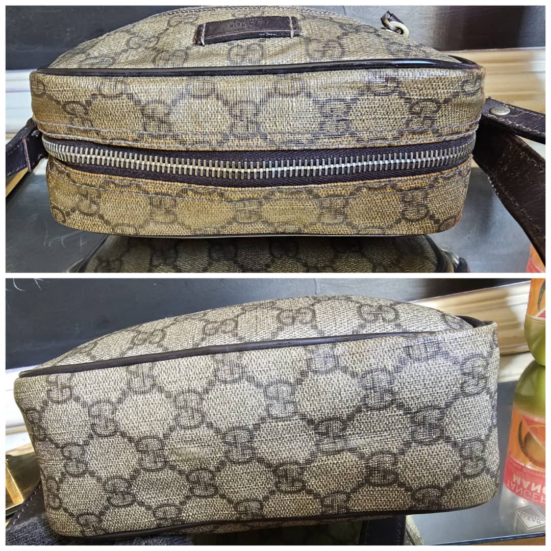 This authentic GUCCI GG Canvas Shoulder/Crossbody Bag Beige/Brown is in it’s good pre-owned condition. The exterior canvas is clean and beautiful, shows some wear to the coated canvas. The top of the bag shows some heat bubble wear (Kindly review pictures above). Interior is clean.