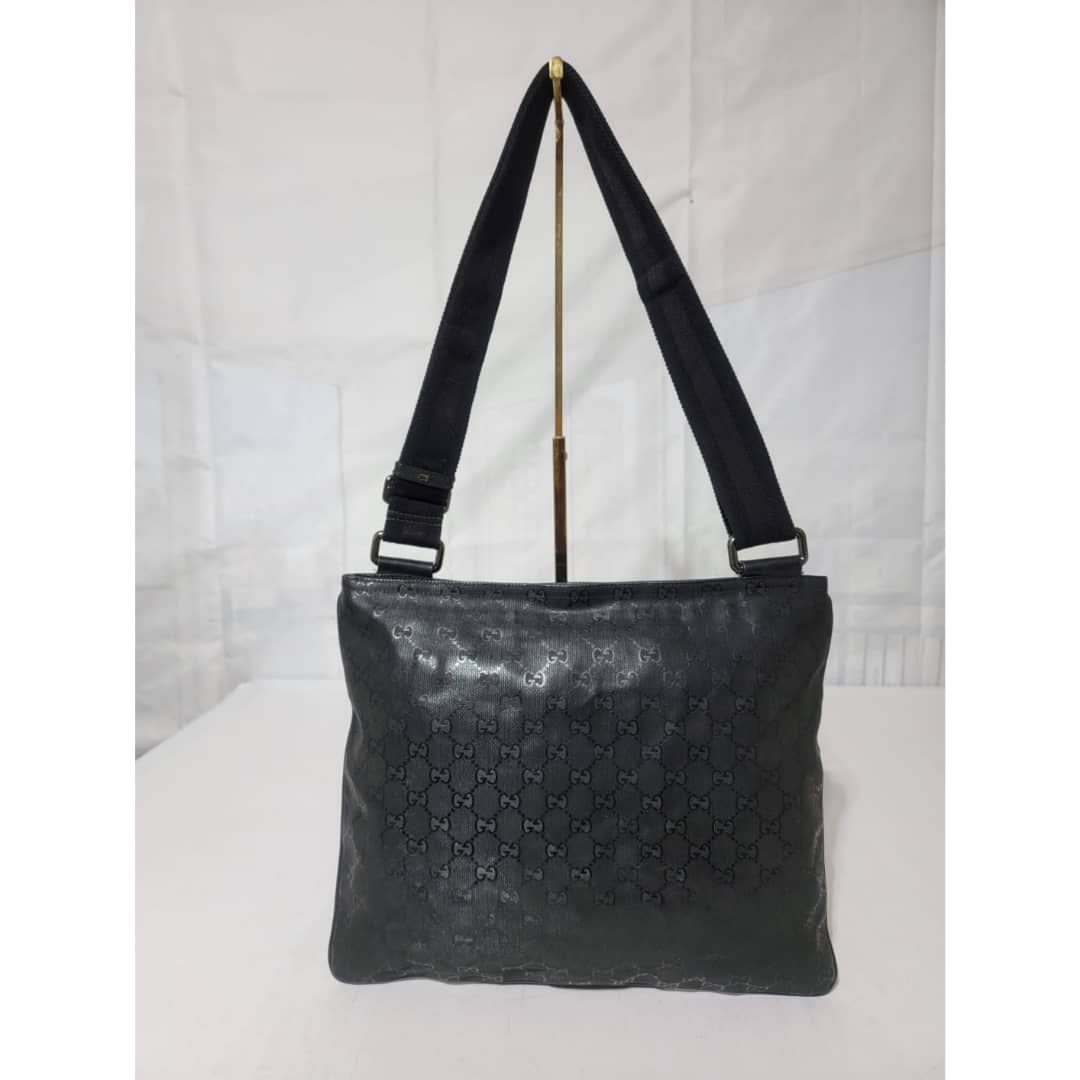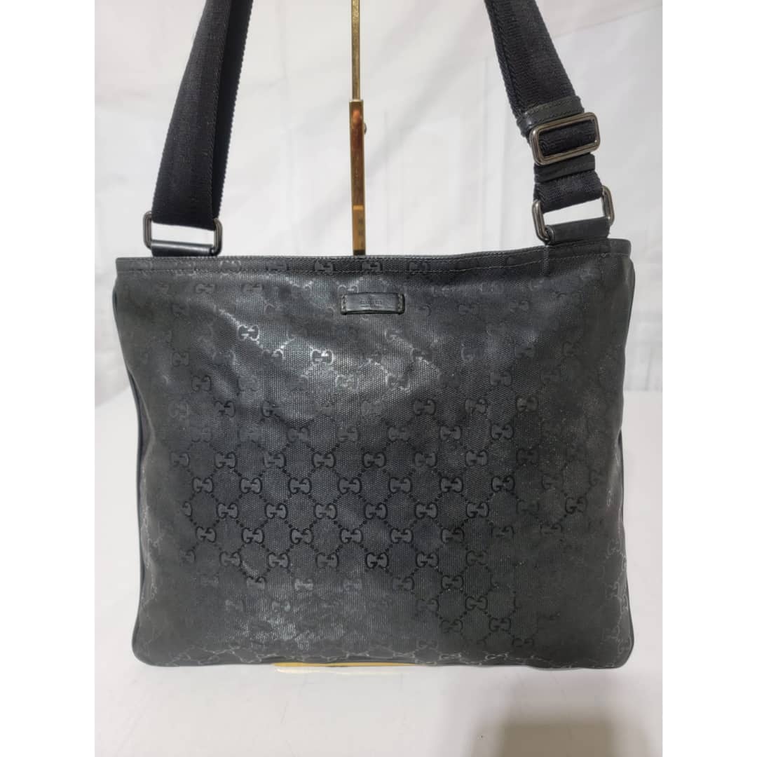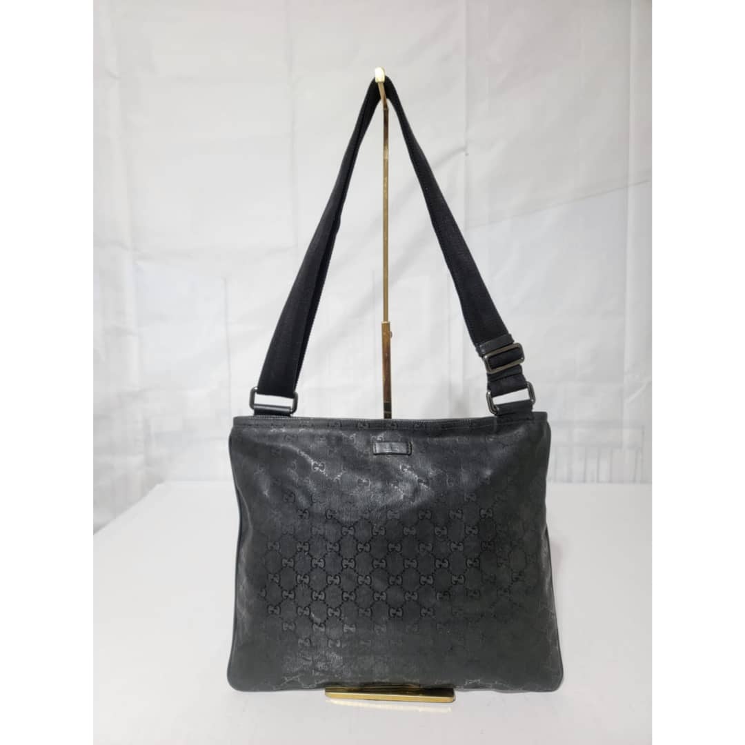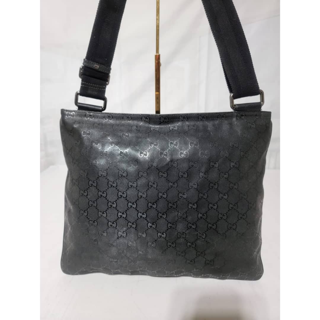 This authentic Gucci GG Imprime Messenger Bag Black is in it’s good pre-owned condition. The exterior imprime leather is clean and beautiful. Interior is clean. Silver hardware. The strap is adjustable.
