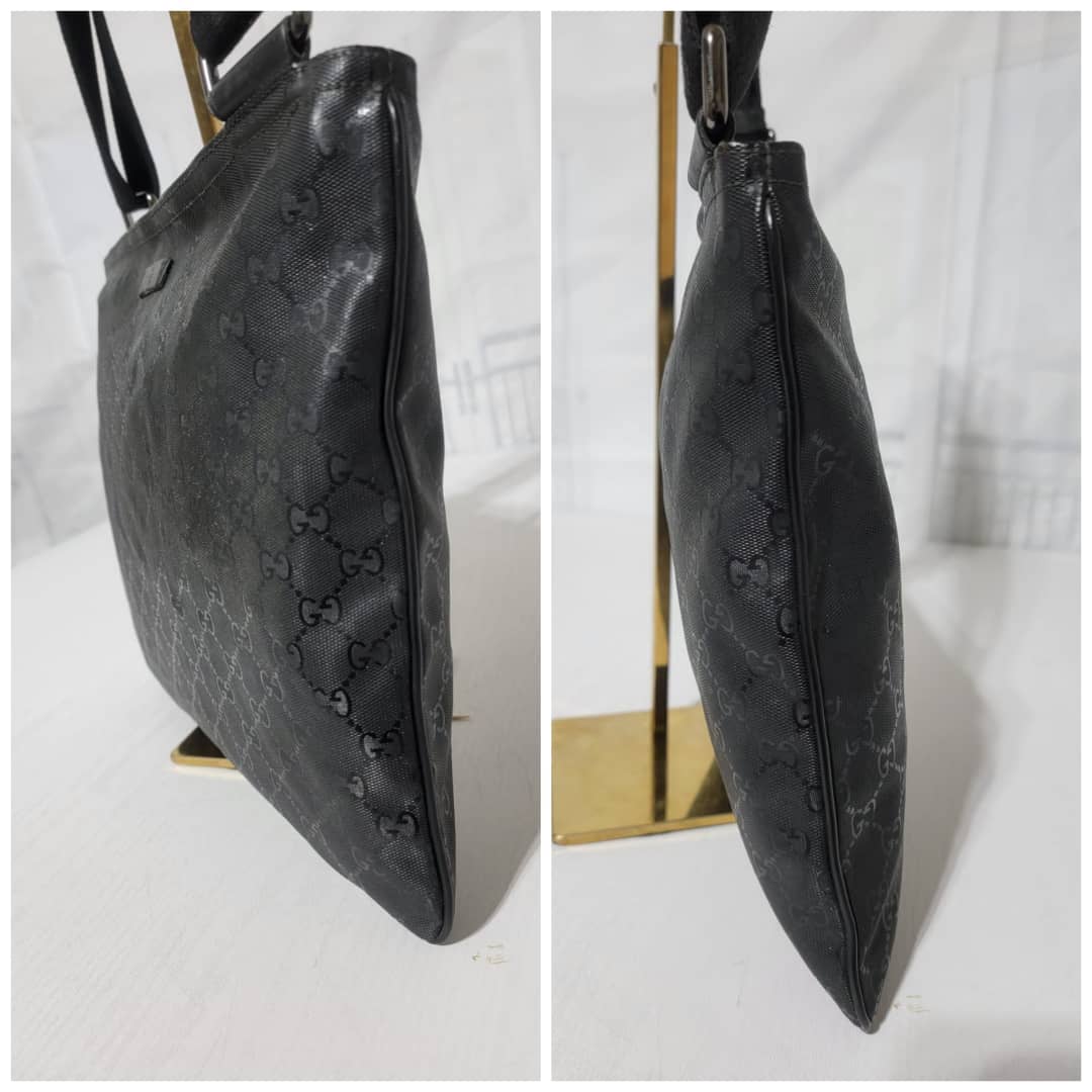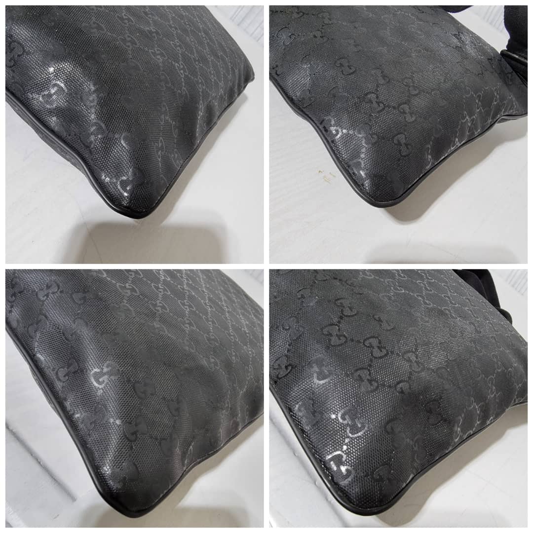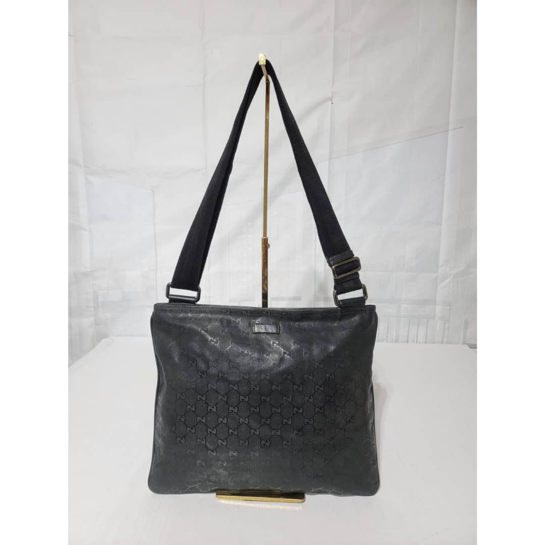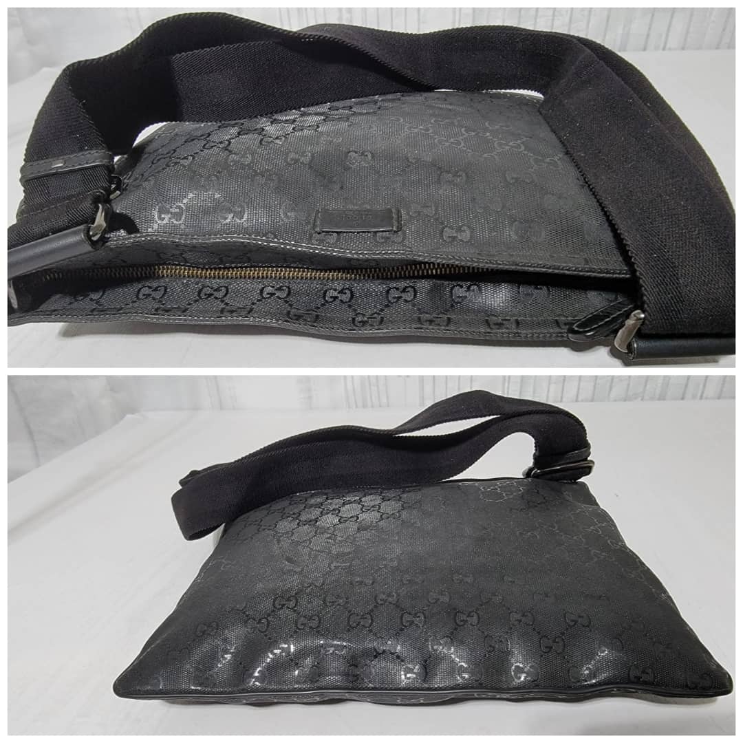 This authentic Gucci GG Imprime Messenger Bag Black is in it’s good pre-owned condition. The exterior imprime leather is clean and beautiful. Interior is clean. Silver hardware. The strap is adjustable.