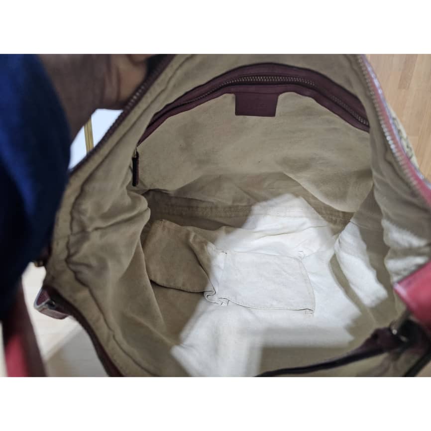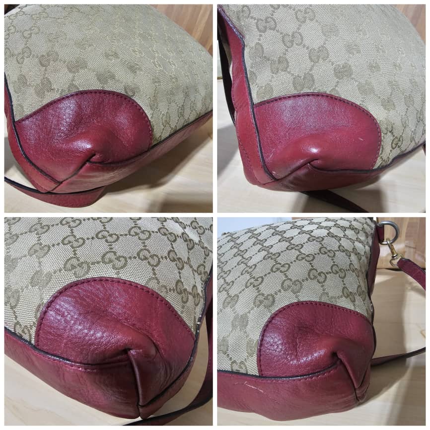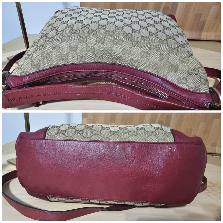 This authentic GUCCI GG Monogram Large Margaux Hobo Burgundy is in it’s good pre-owned condition. The exterior canvas is clean and beautiful. The interior is clean. Can be worn as a shoulder bag and Crossbody. Beautiful bag
