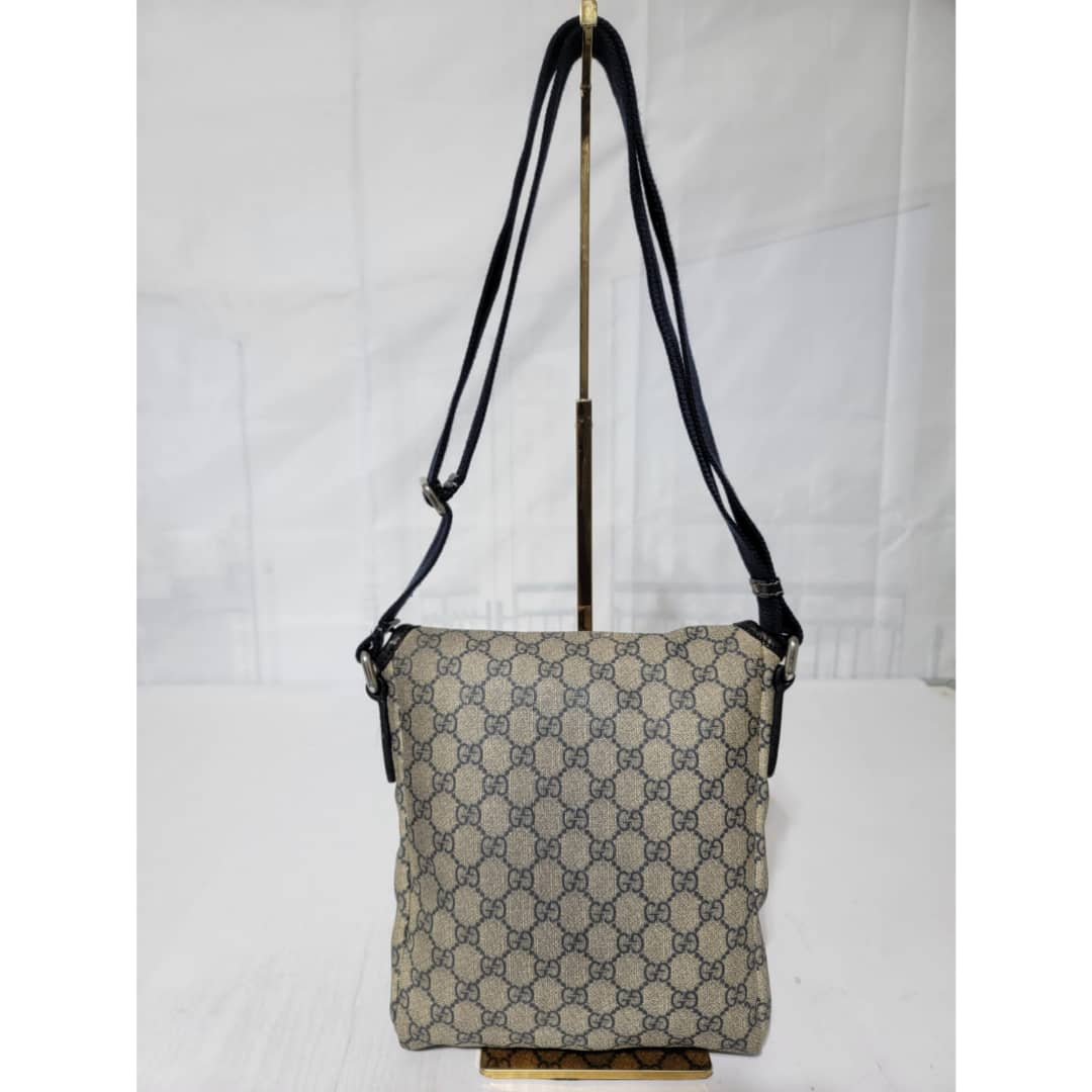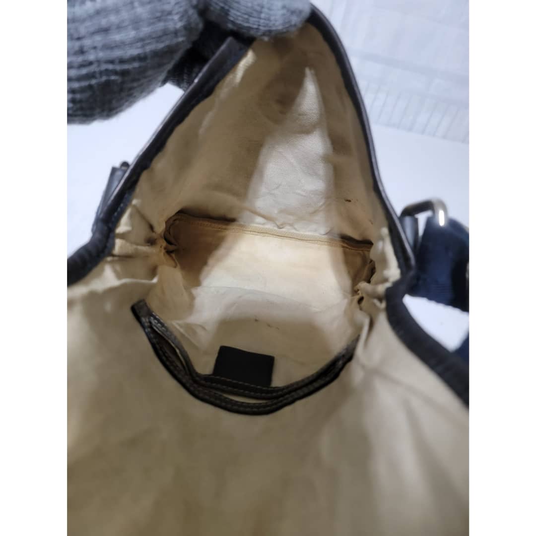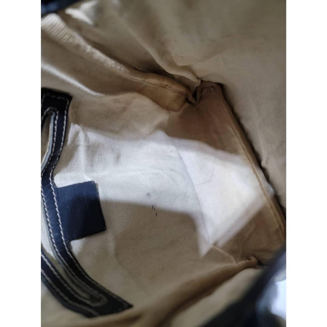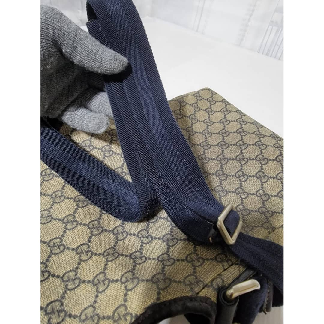 This authentic GUCCI GG Plus Monogram Sellieria Calfskin Small Flap Crossbody Bag Beige/Blue is in it’s pre-owned condition. The exterior coated canvas is clean, however it shows sign of aging wear. Interior shows sign of wear. The lock is out and shows tear. Interior is clean, however shows some stains (Kindly look at pictures above). There are some scratches by the side of the leather. Has an adjustable strap and some scuffing at the base edge.