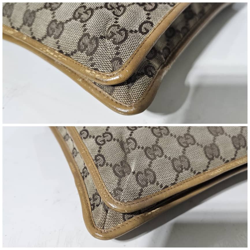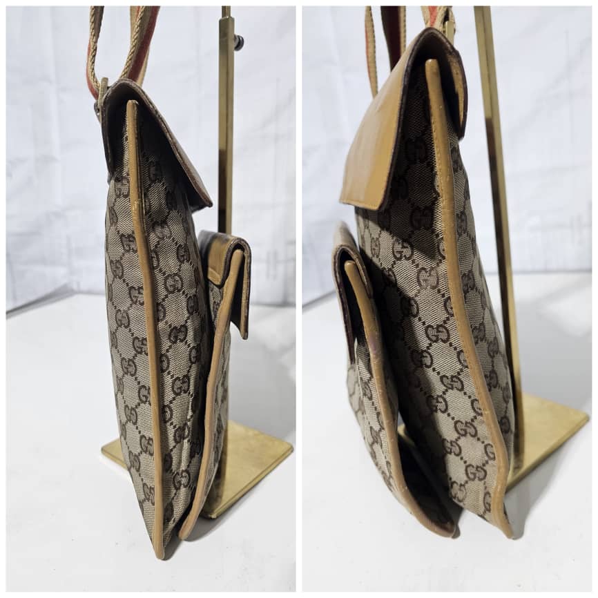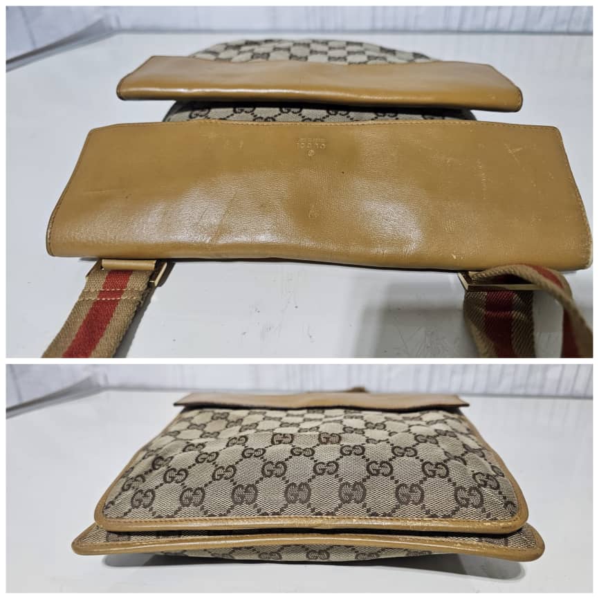 This authentic Gucci GG Sling Bag Brown is in it’s good pre-owned condition. The exterior canvas and leather is clean and beautiful with little scratches at the base edge trim. Interior is clean.