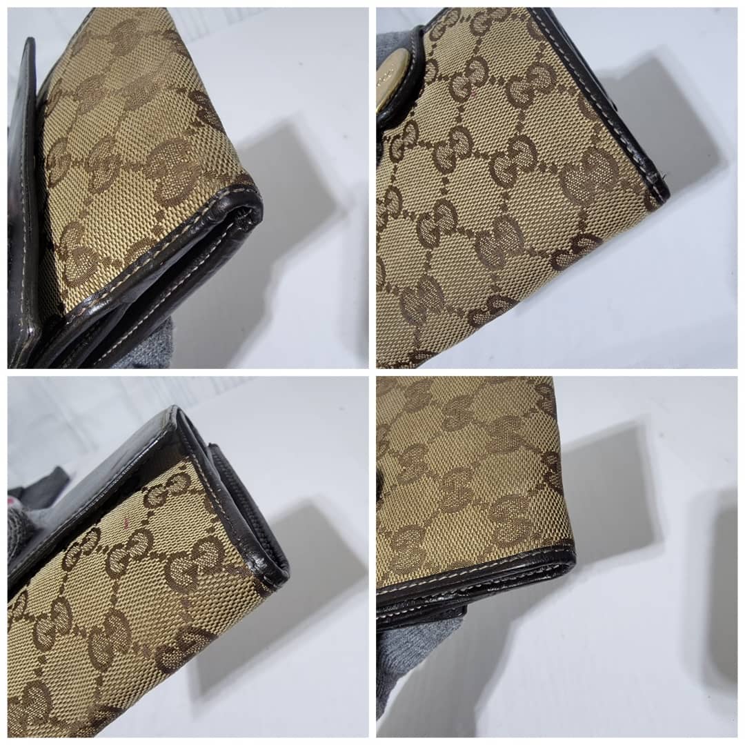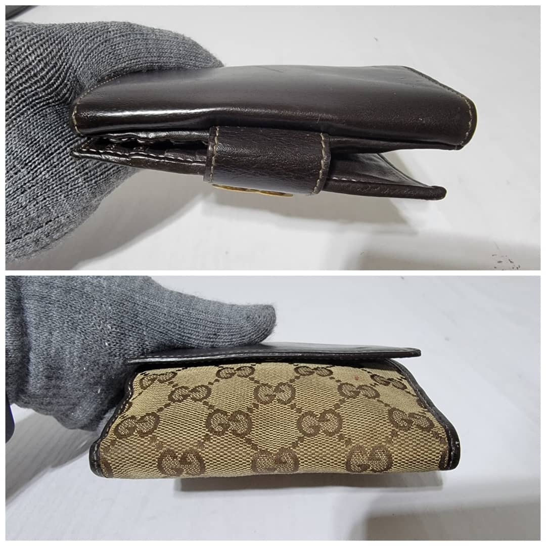 This authentic Gucci GG Supreme Coated Canvas and Leather French Flap Wallet Deep Chocolate Brown/Beige is in it’s good pre-owned condition. The exterior is clean and beautiful. Interior is clean. Gold hardware shows scratches.