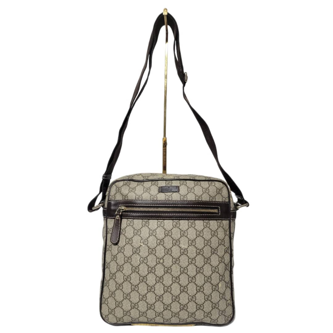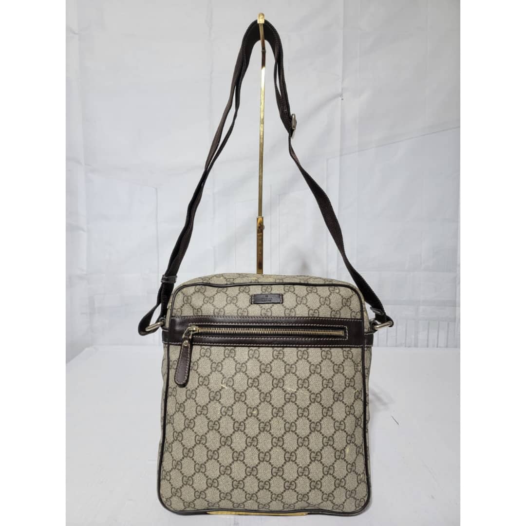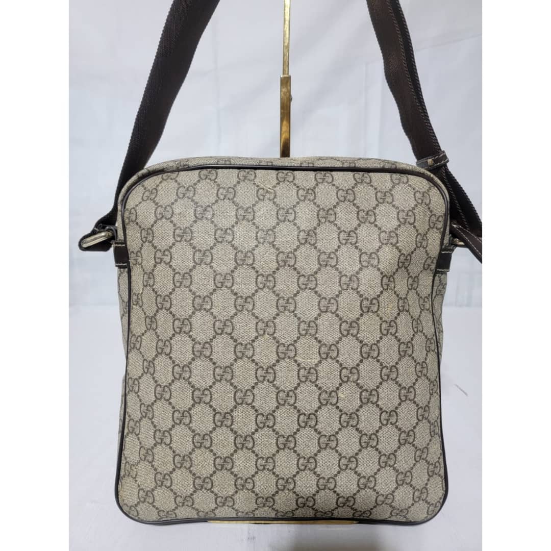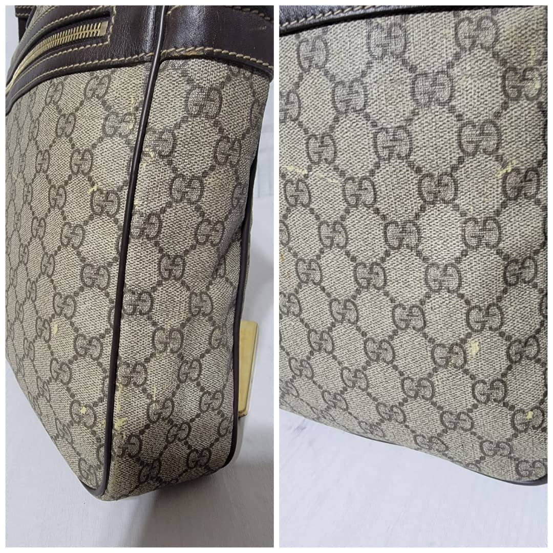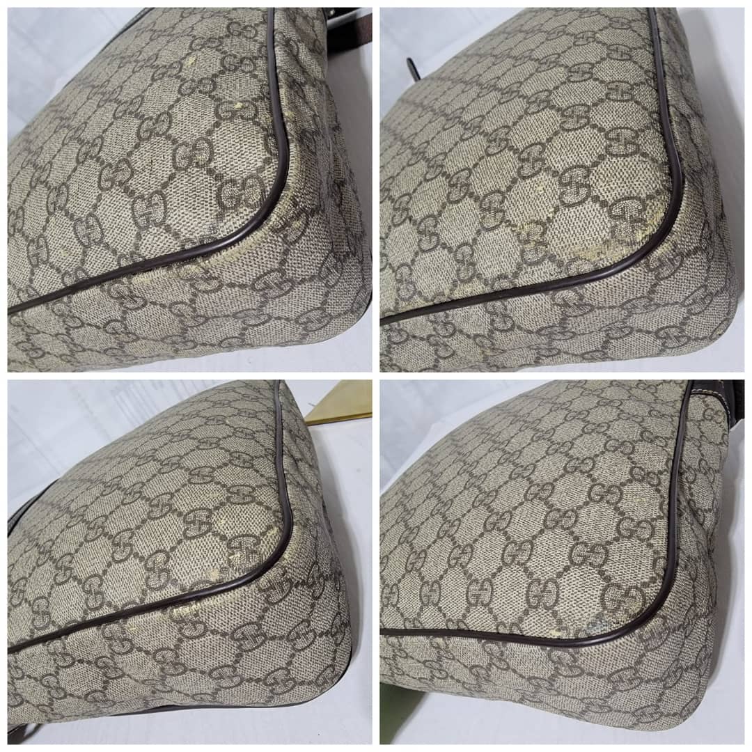 This authentic GUCCI GG Supreme Messenger/Crossbody Bag PVC Leather Beige/Brown is in it’s pre-owned condition. The exterior is clean however, it shows some little leather peel. Kindly look at pictures for all the little scuffing and peel on the bag. Interior is clean.