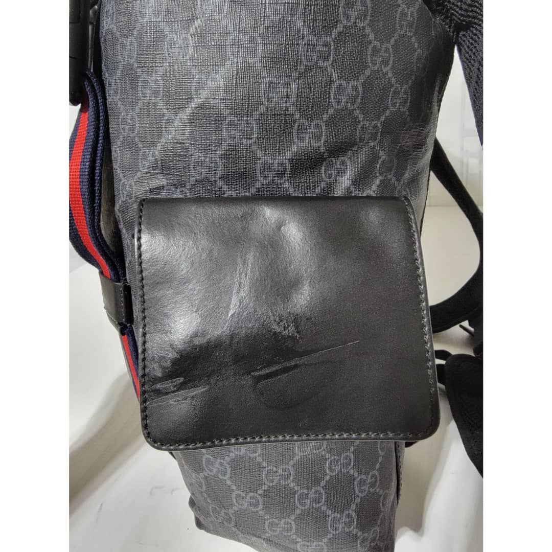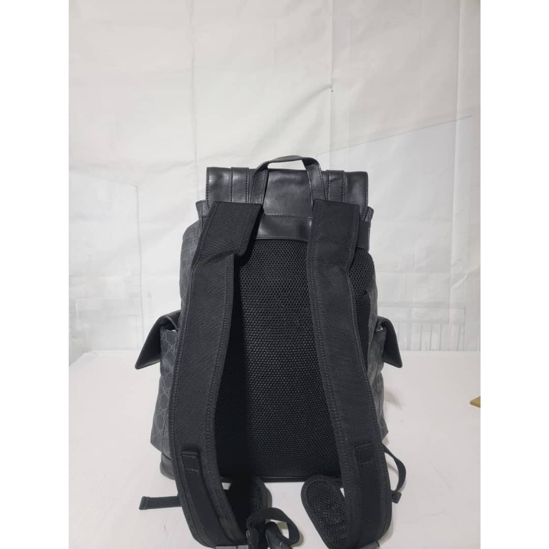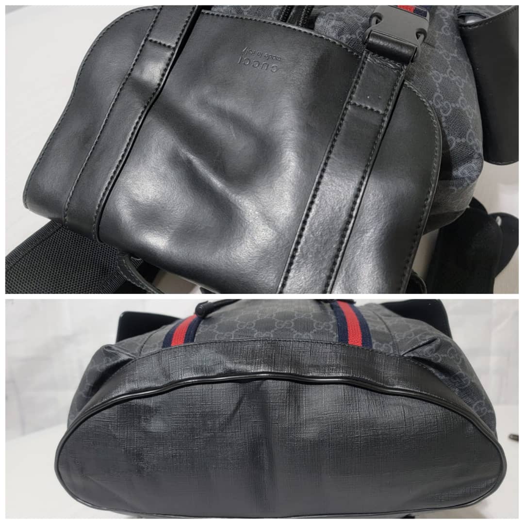 This authentic Gucci GG Supreme Web Backpack Black/Grey is in it’s good pre-owned condition. The exterior coated canvas is clean and beautiful. Interior is clean. It is a very great backpack.