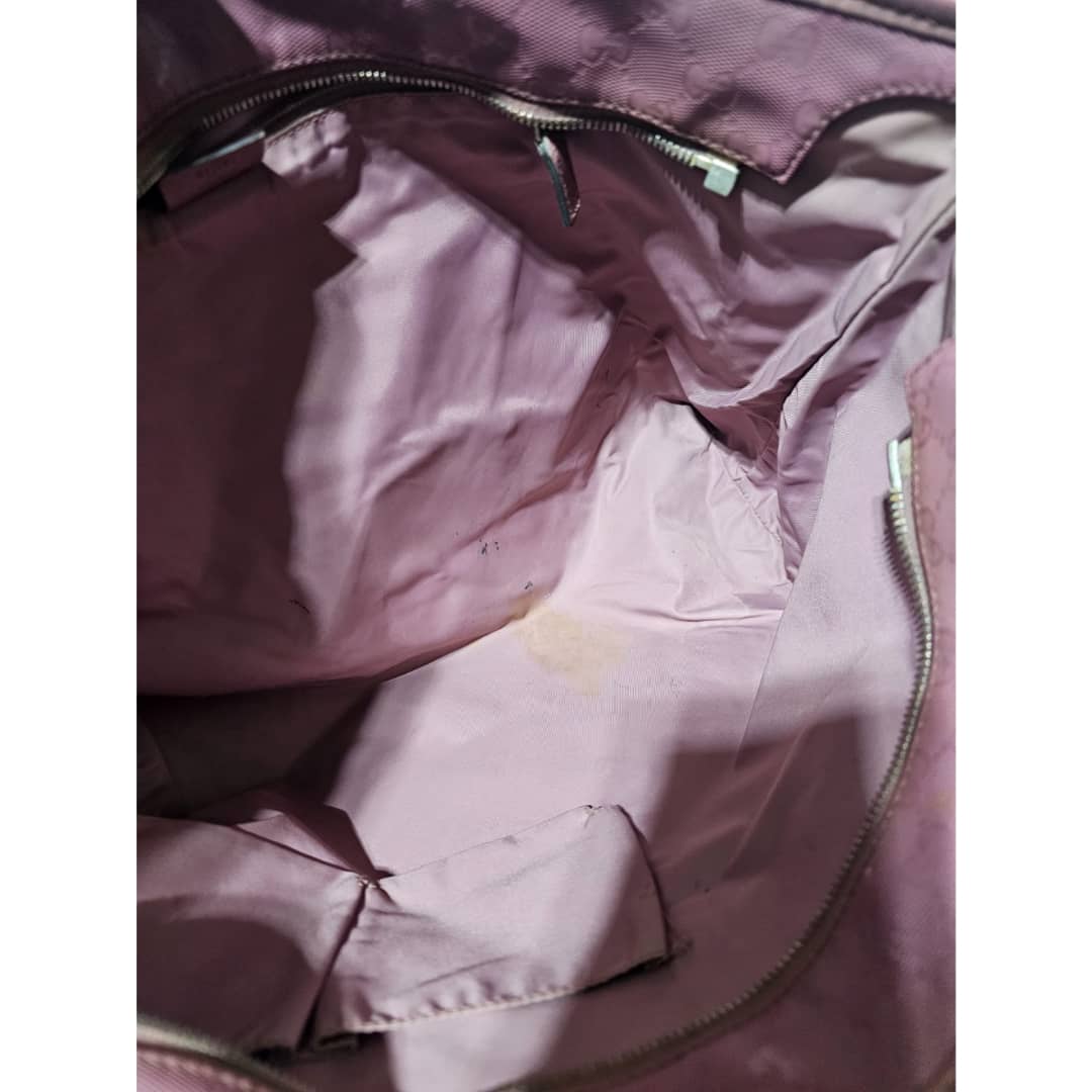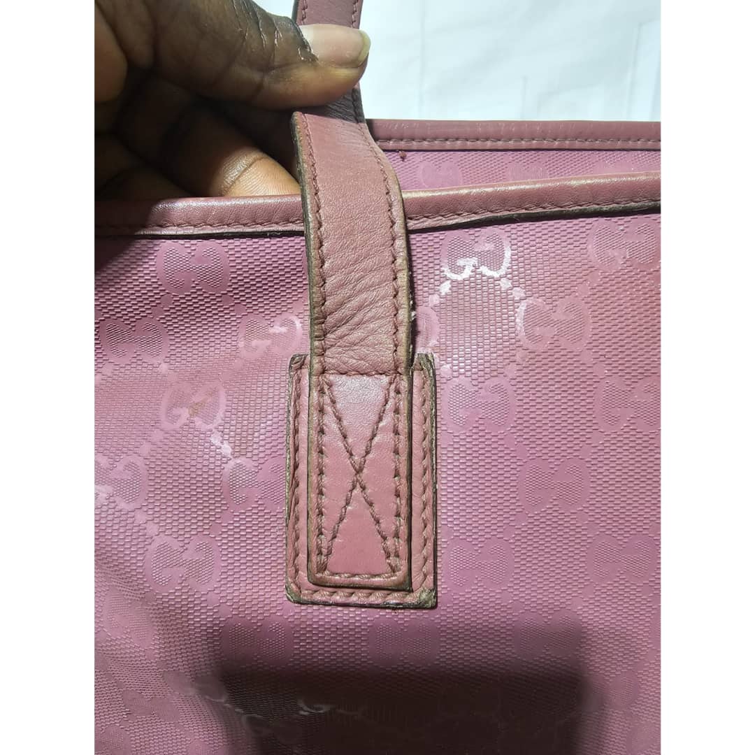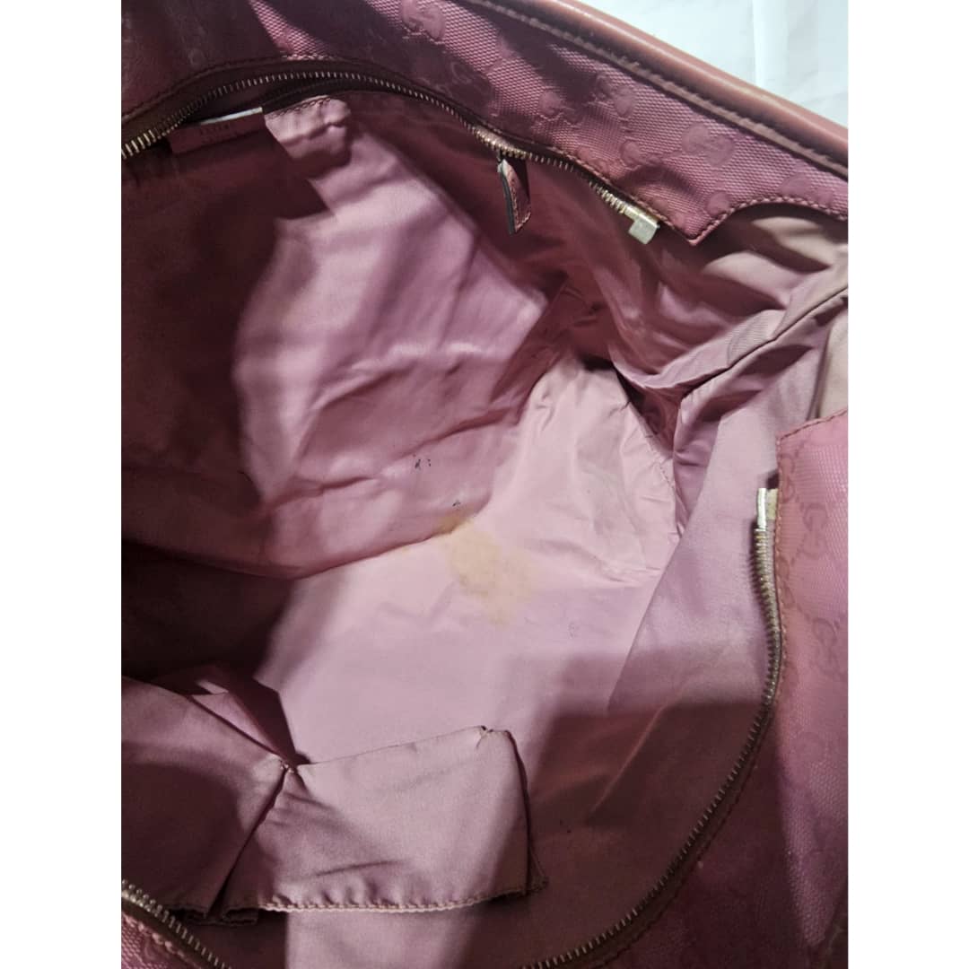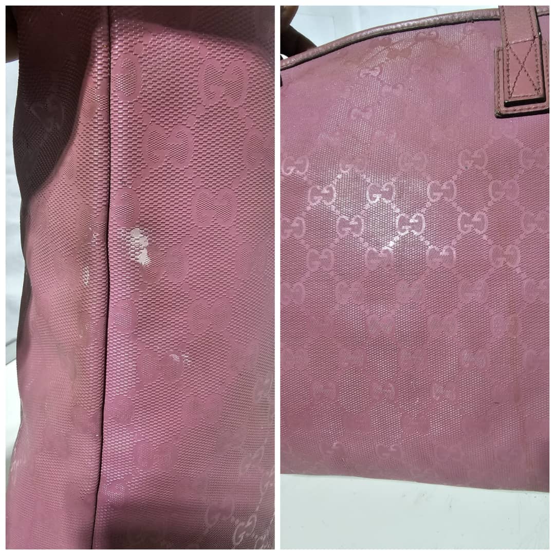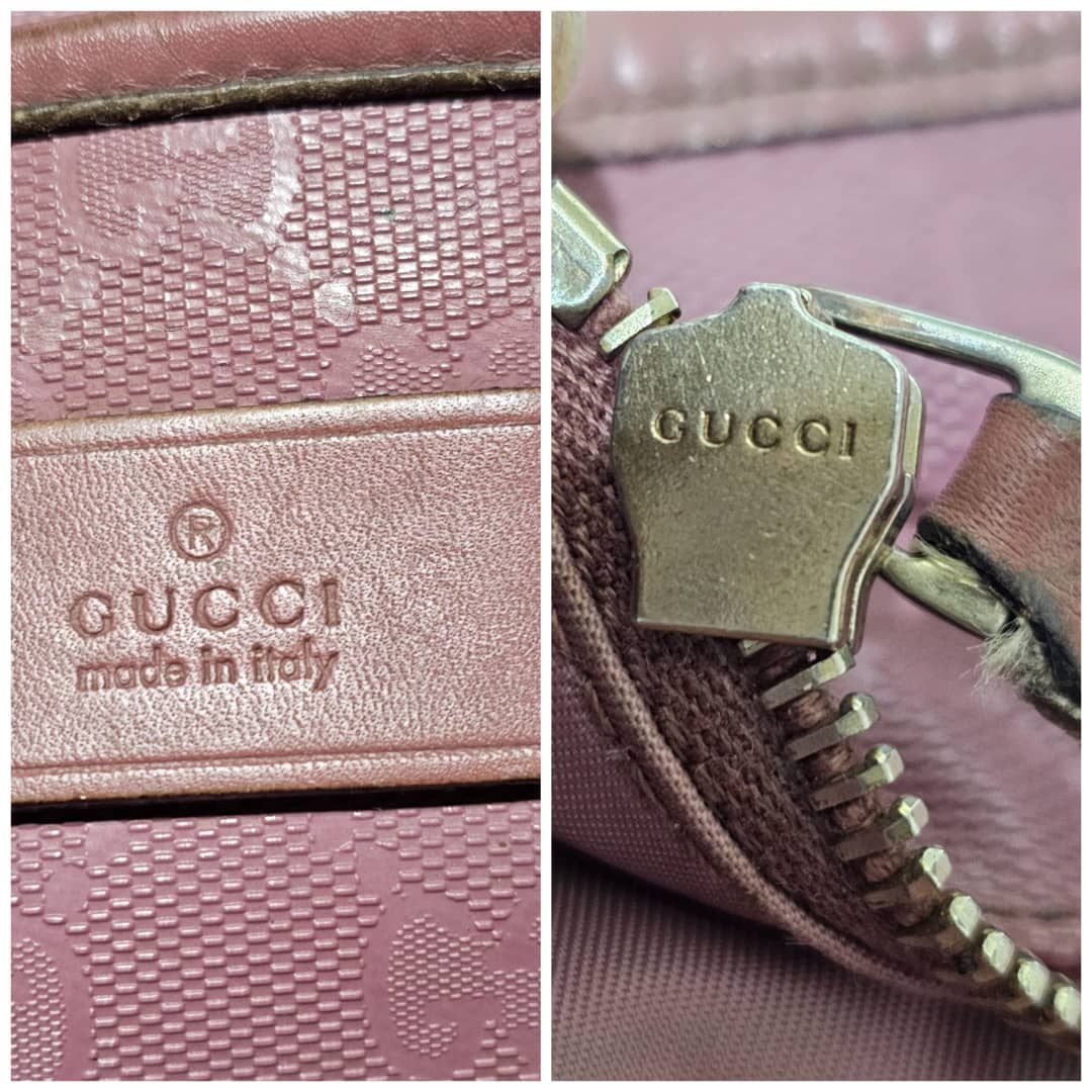 This authentic GUCCI Imprime PVC Leather Shoulder Bag Pink is in it’s good pre-owned condition. The exterior leather is clean,shows sign of wear on it, little scuffing on the base edges. Interior is clean, however shows some water mark stains. The top trim shows scratches and scuffs. Handle shows sign of rubbing wear (Kindly review pictures above).
