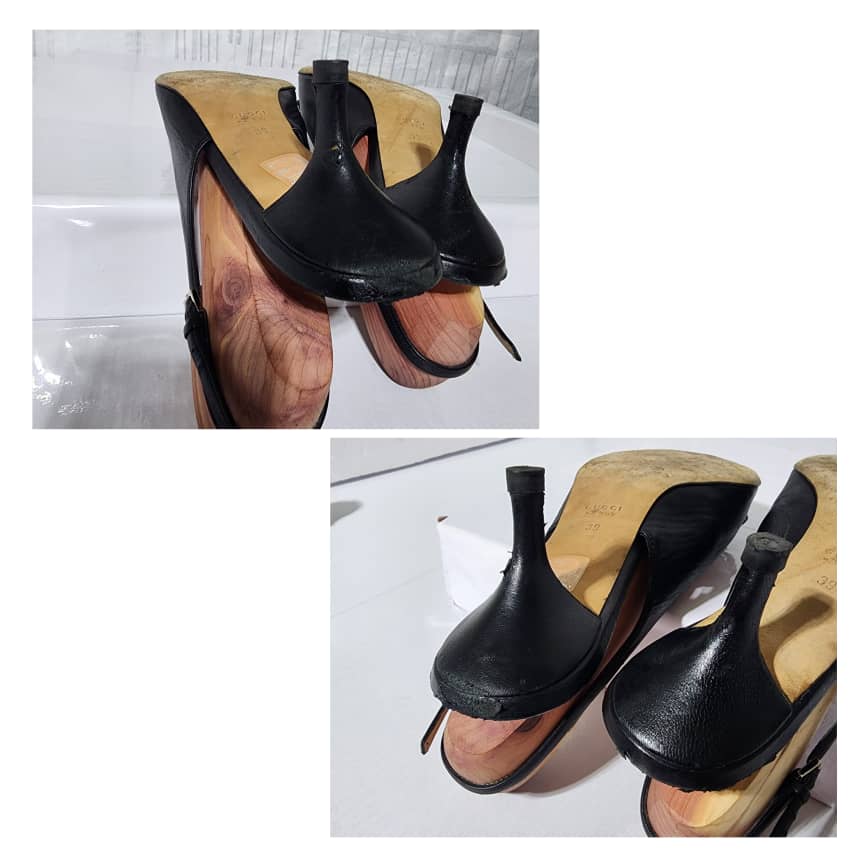 This authentic Gucci Leather Horsebit Peep Toe Platform Pumps Black Size 39 is in it’s pre-owned condition. The exterior is clean. The edges of the shoe shows some scuffing and scratches to it. The edges and heel shows some scuffs and scratch to it. The interior is clean however it shows sign of rubbing wear. Kindly look at pictures above.