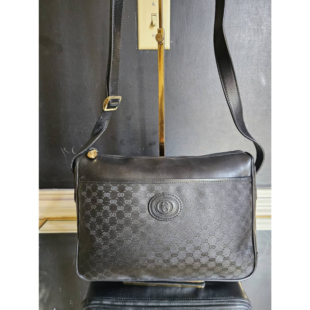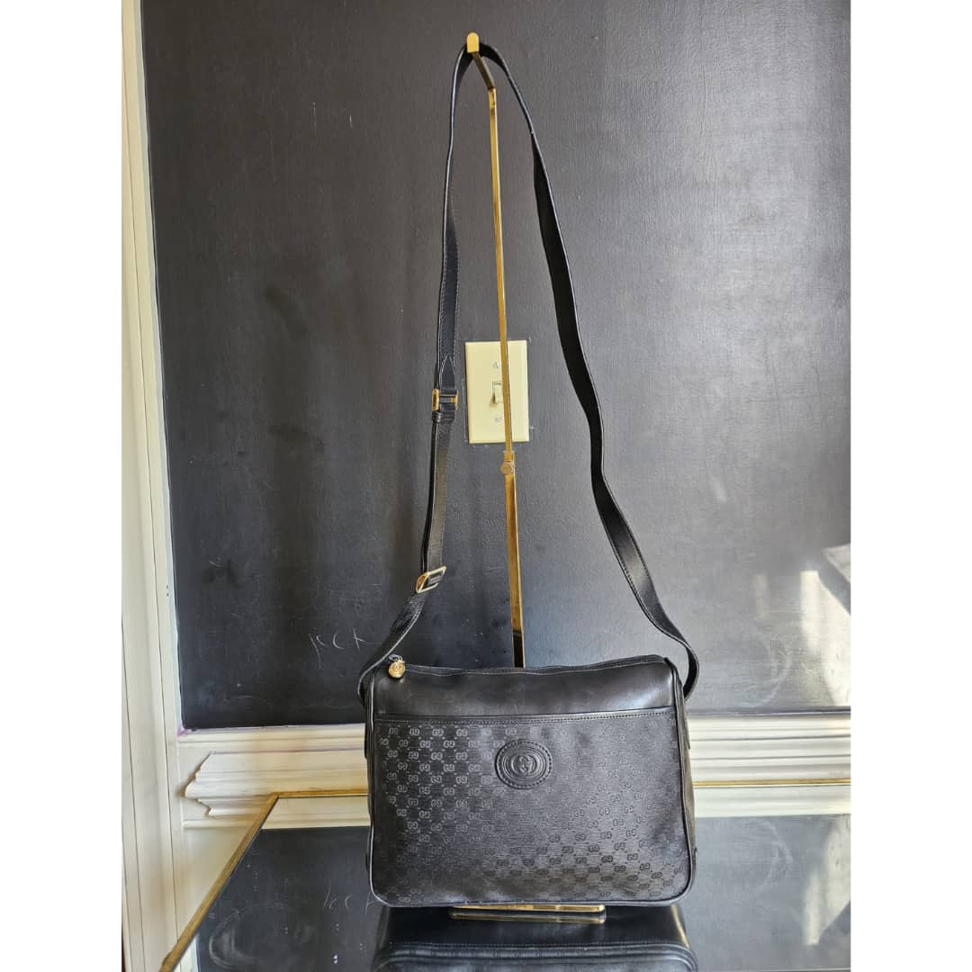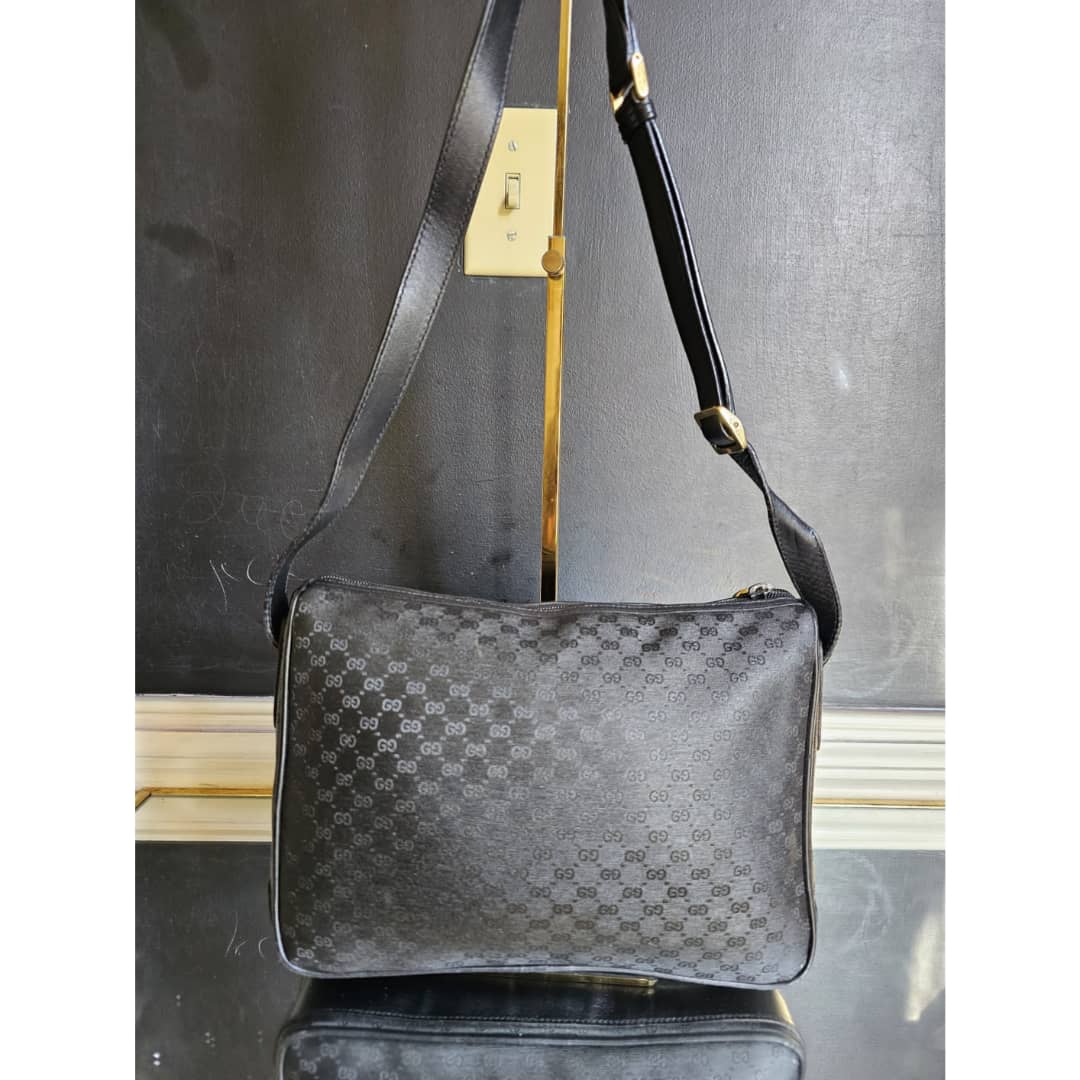 This authentic Gucci Leather Monogram Crossbody Bag Black is in it’s good pre-owned condition. The exterior leather is clean and beautiful. Interior is clean. Gold hardware.