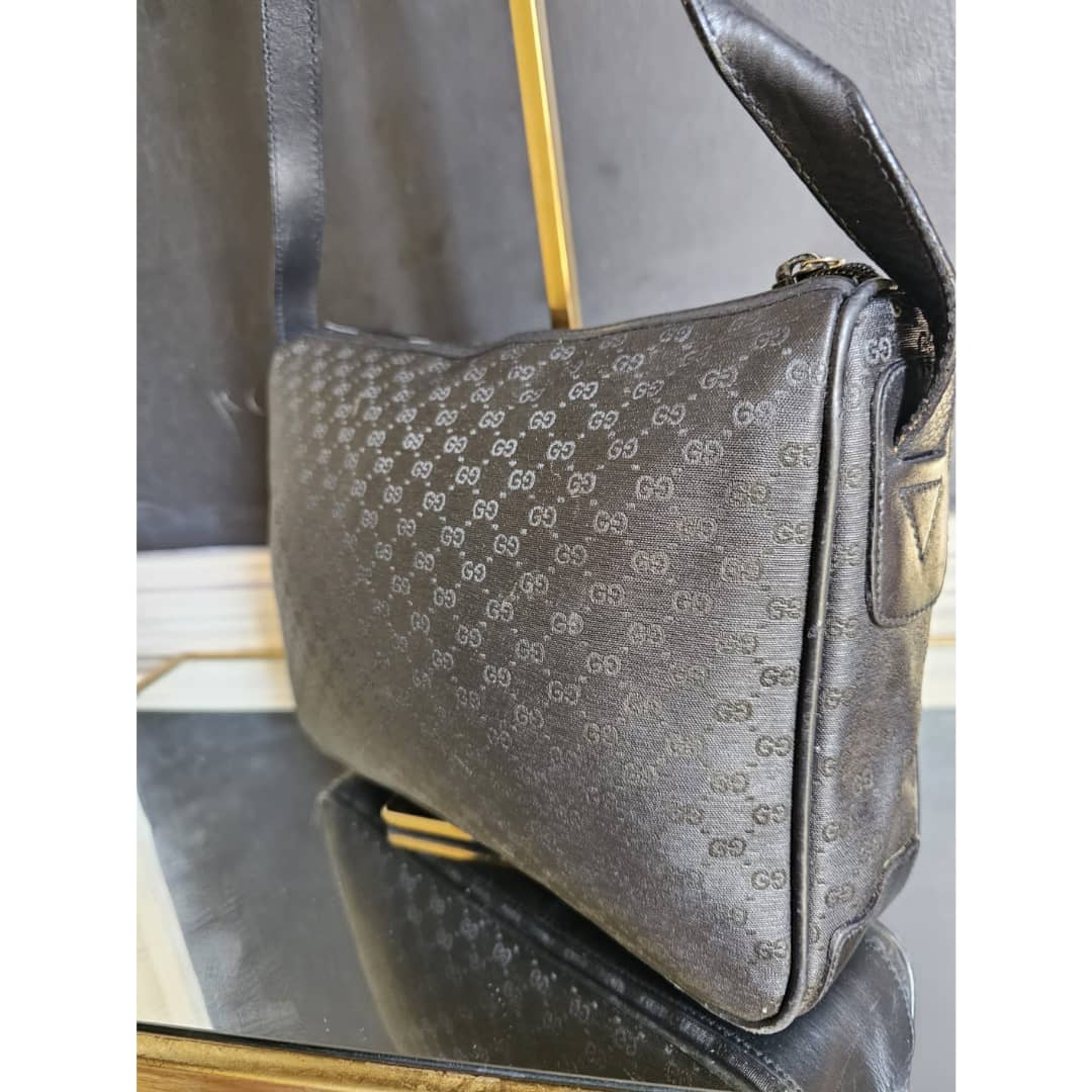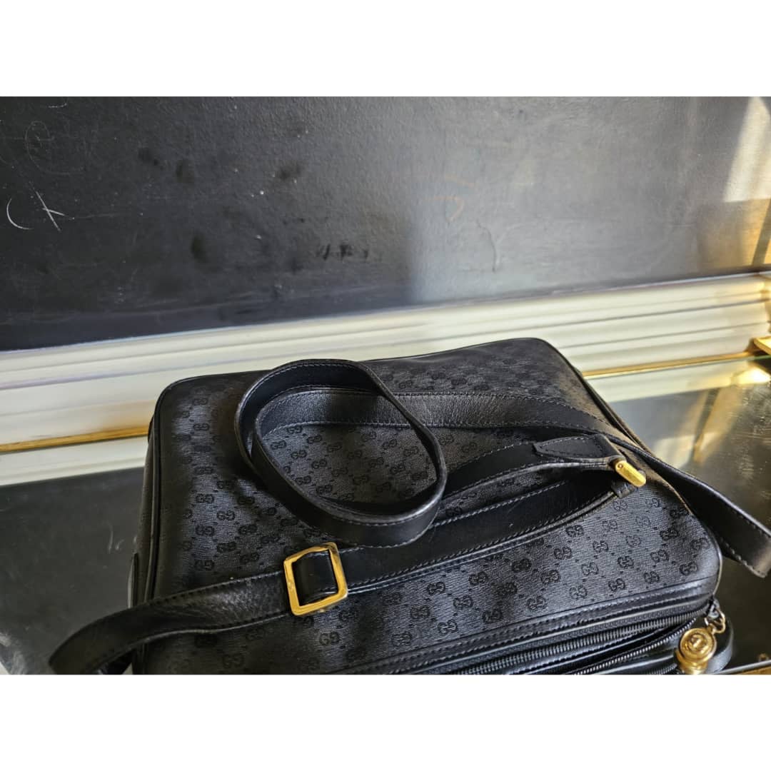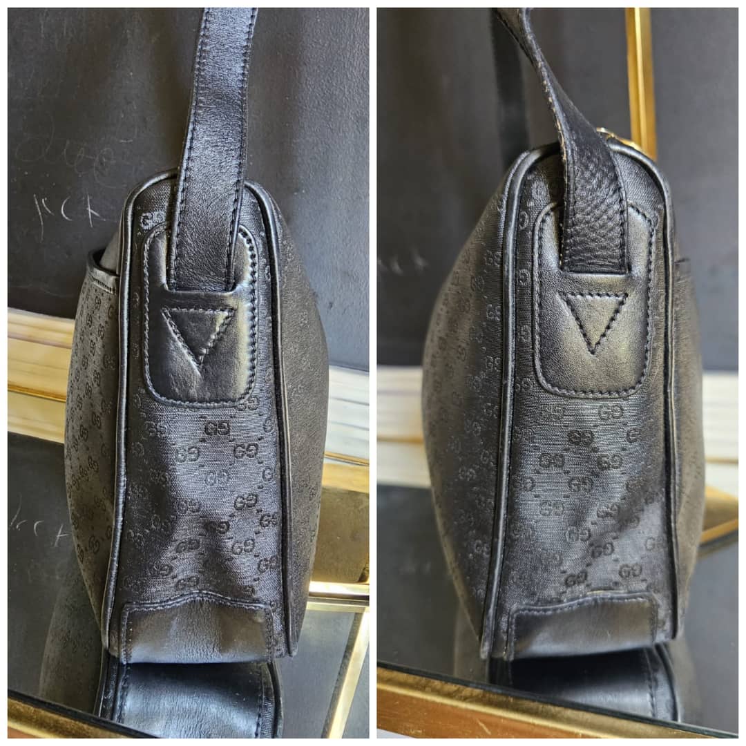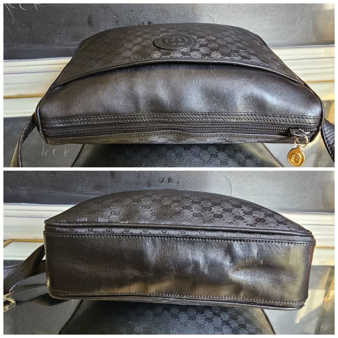 This authentic Gucci Leather Monogram Crossbody Bag Black is in it’s good pre-owned condition. The exterior leather is clean and beautiful. Interior is clean. Gold hardware.
