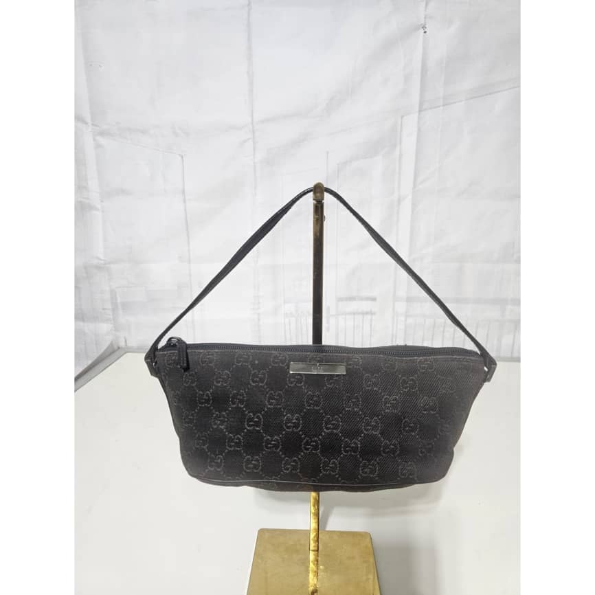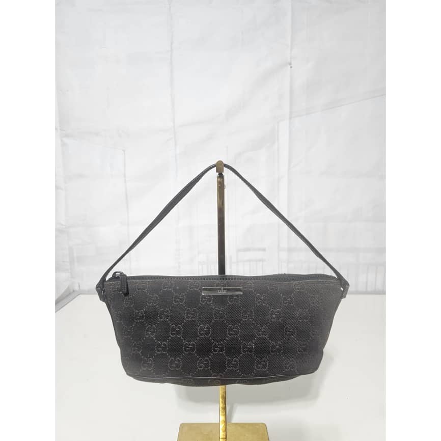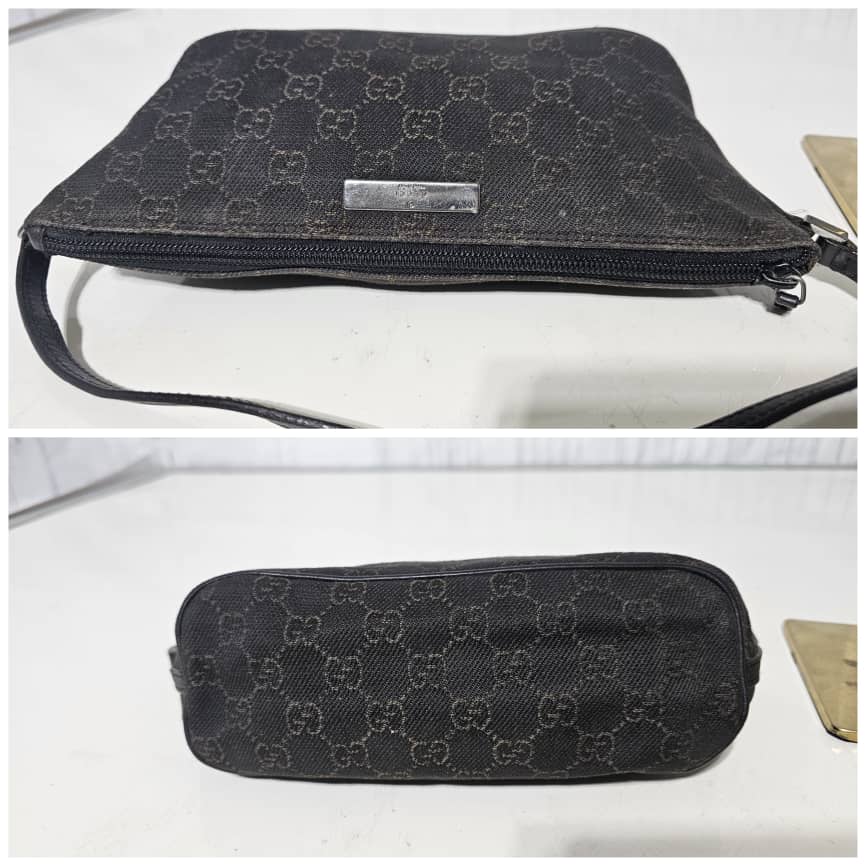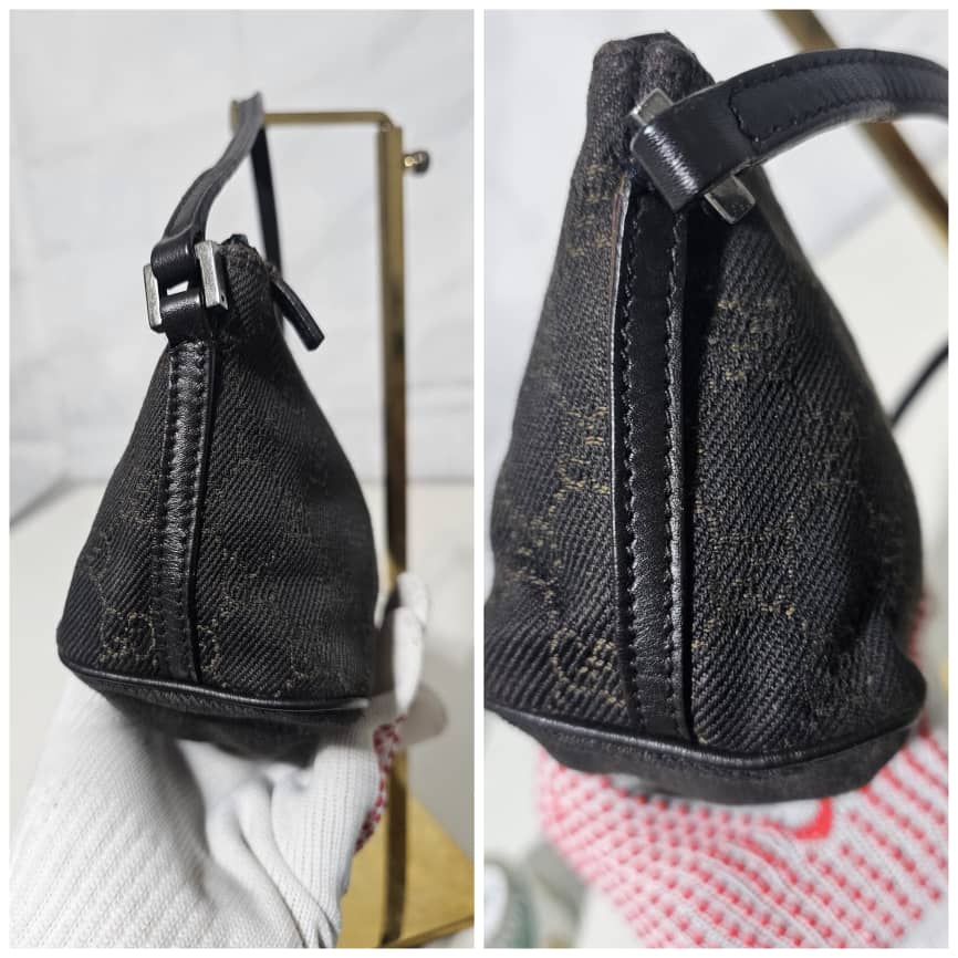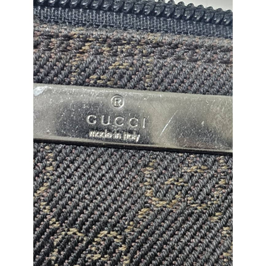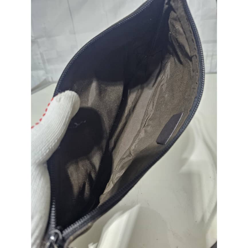 This authentic GUCCI Monogram Boat Pochette Deep Brown is in it’s good pre-owned condition. The exterior canvas is clean and beautiful. Interior is clean. Silver hardware.