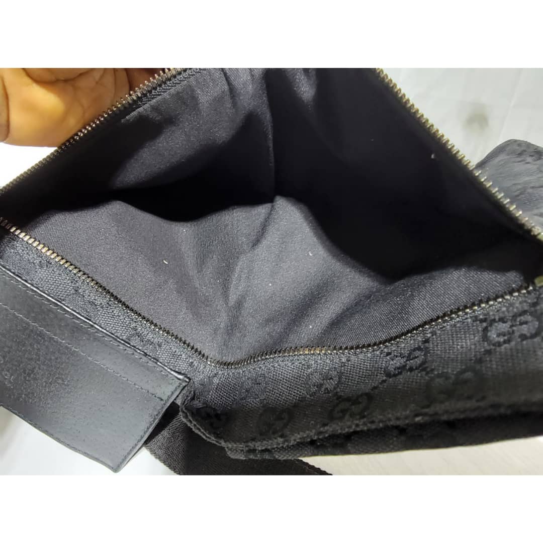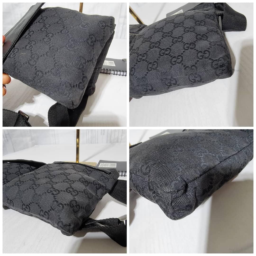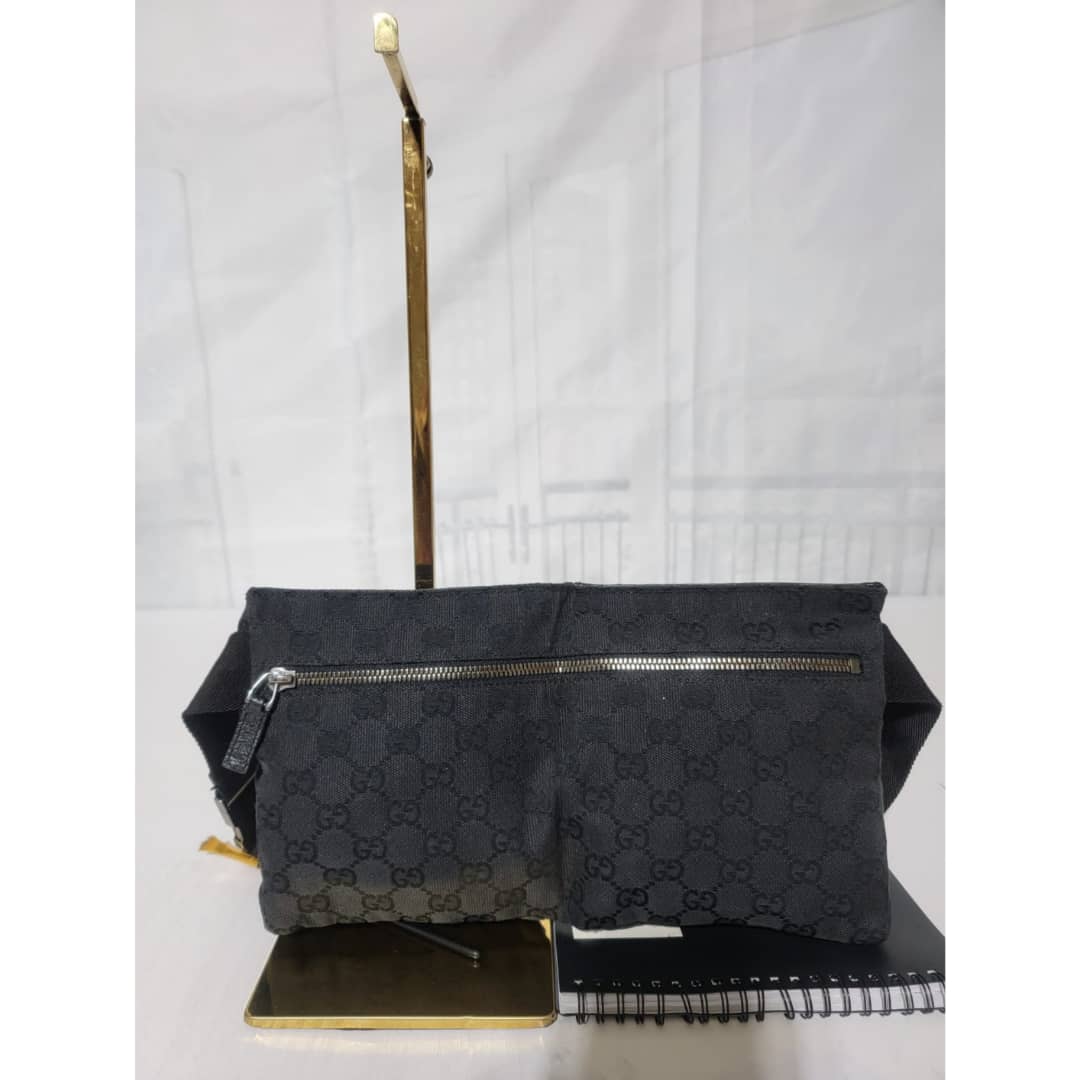 This authentic Gucci Monogram Canvas Double Belt Waist Bag Black is in it’s good pre-owned condition. The exterior is clean and beautiful. Interior is clean. The waist strap is adjustable. Silver hardware.