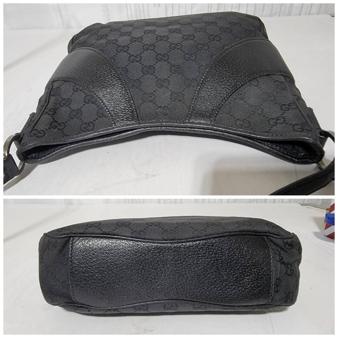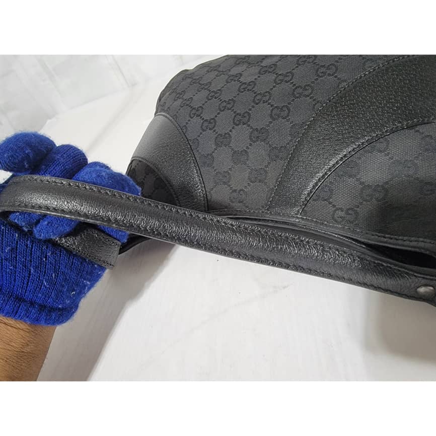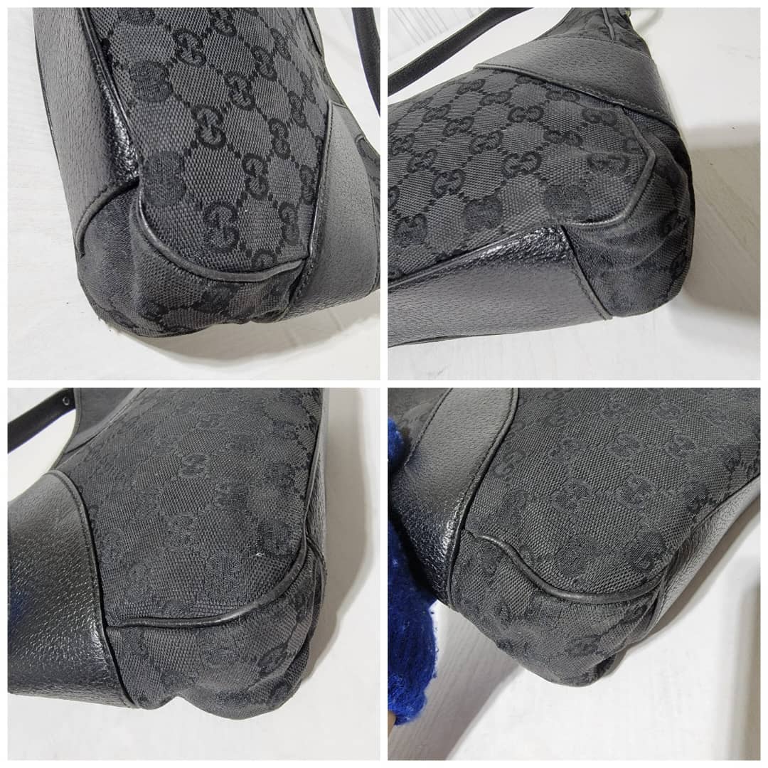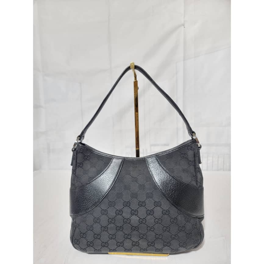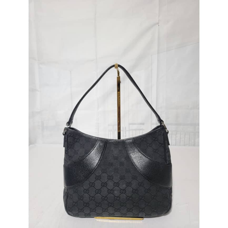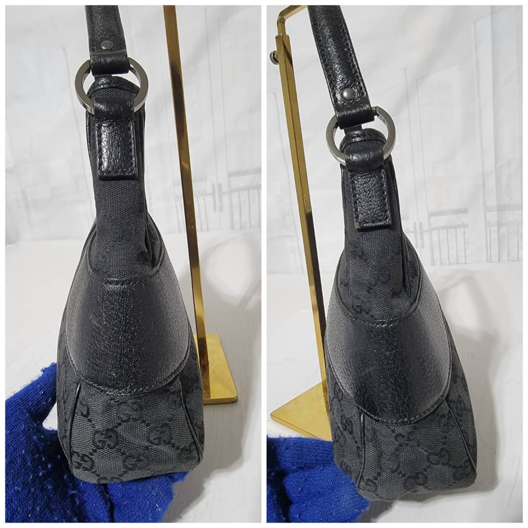 This authentic GUCCI Monogram Curved Hobo GG Canvas with Leather Bag is in it’s good pre-owned condition the exterior is clean and beautiful. Interior is clean.