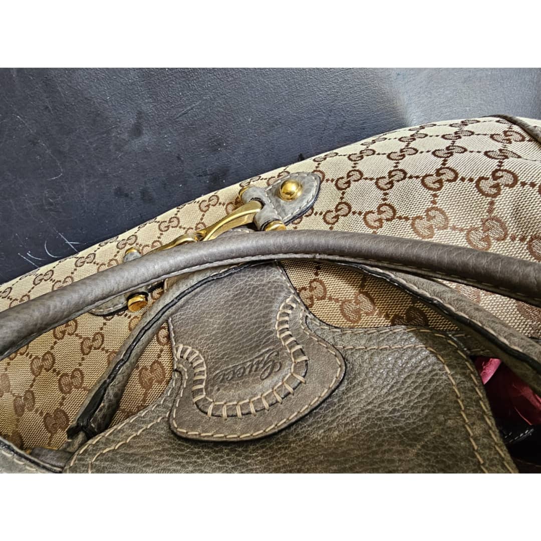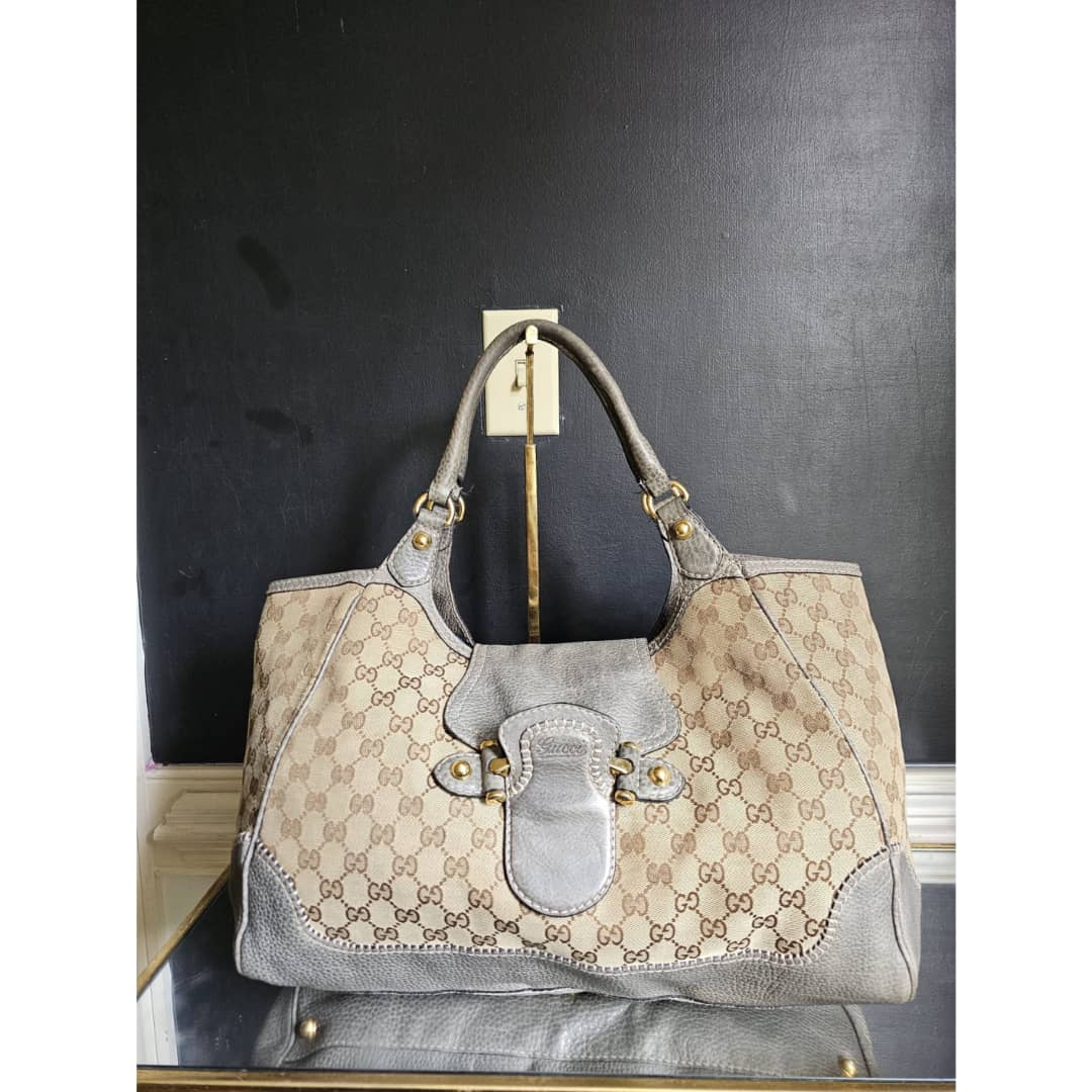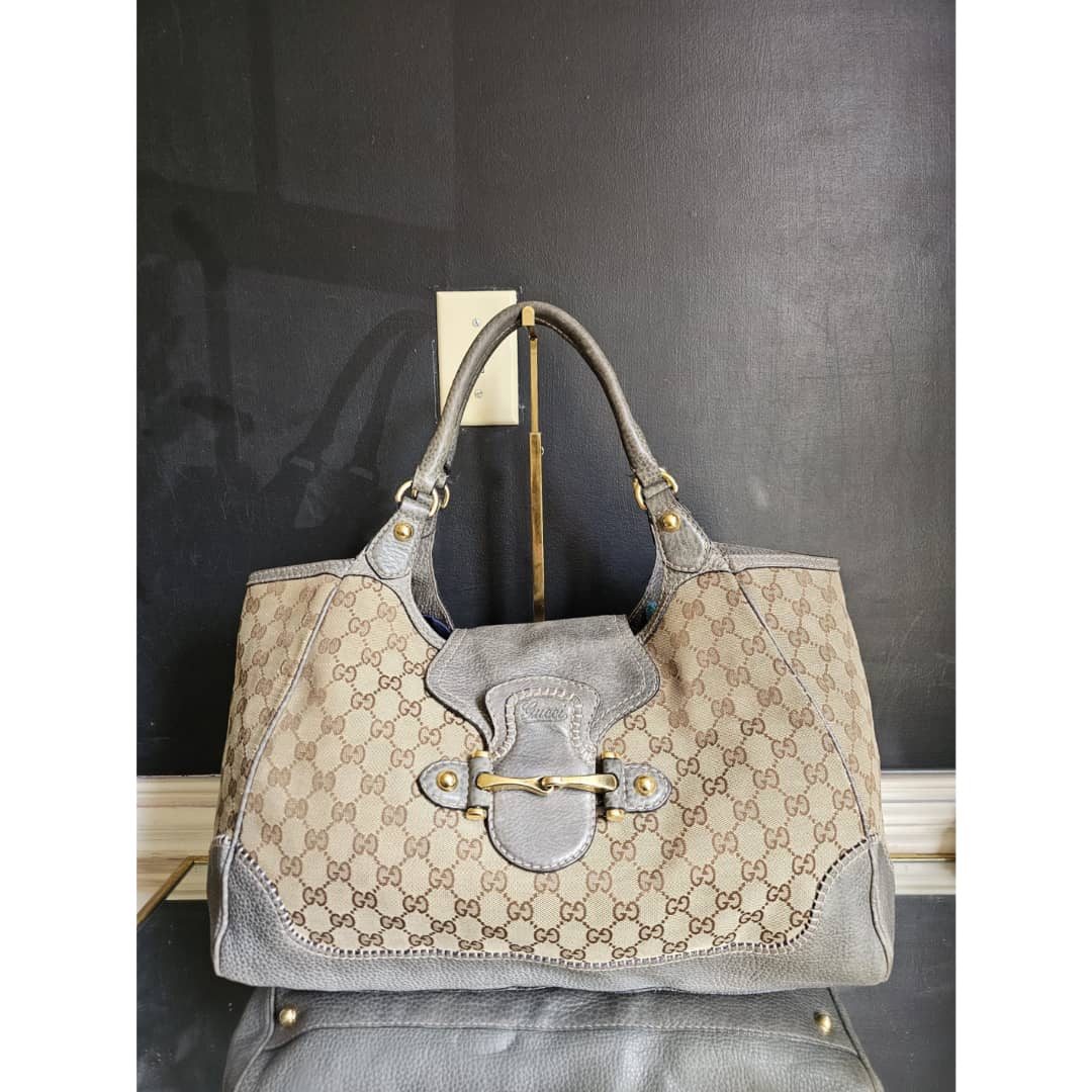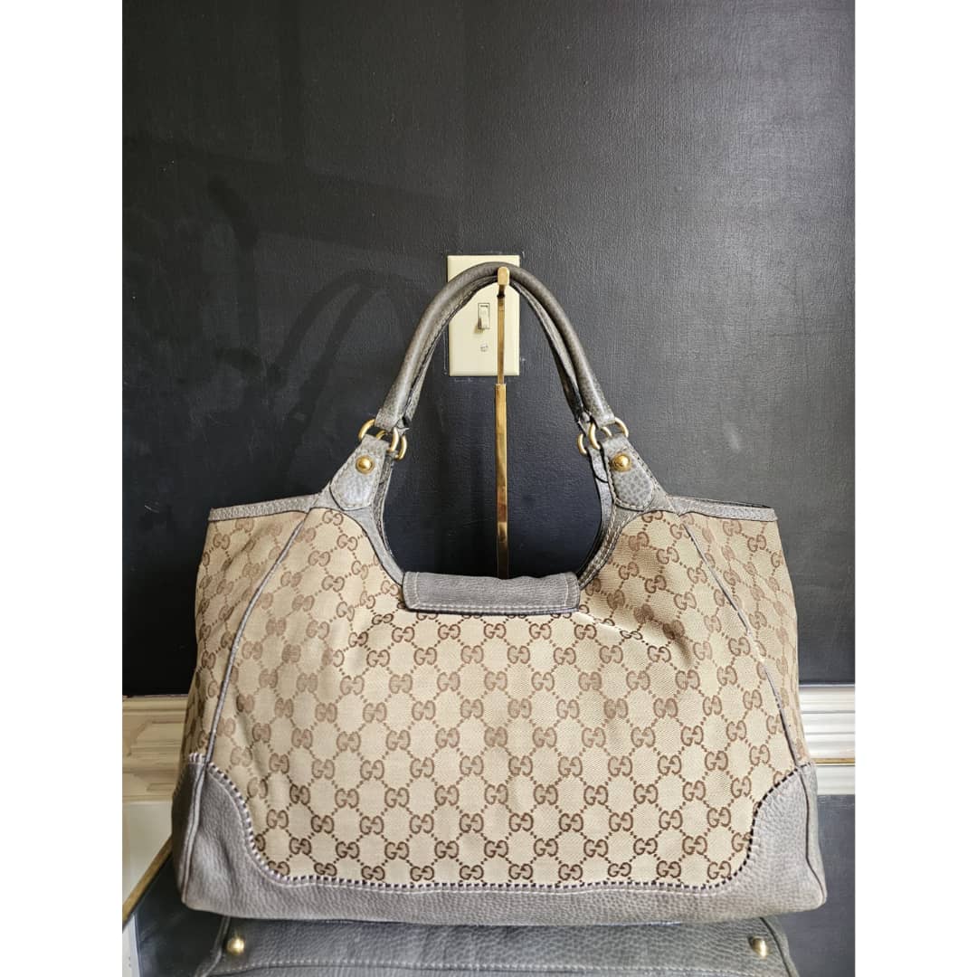Bag Beige/Grey is in it’s good pre-owned condition. The exterior canvas and grey leather trim is clean and beautiful. Interior is clean. Handle shows little rubbing. Gold hardware.