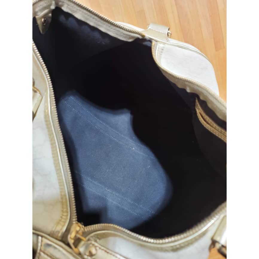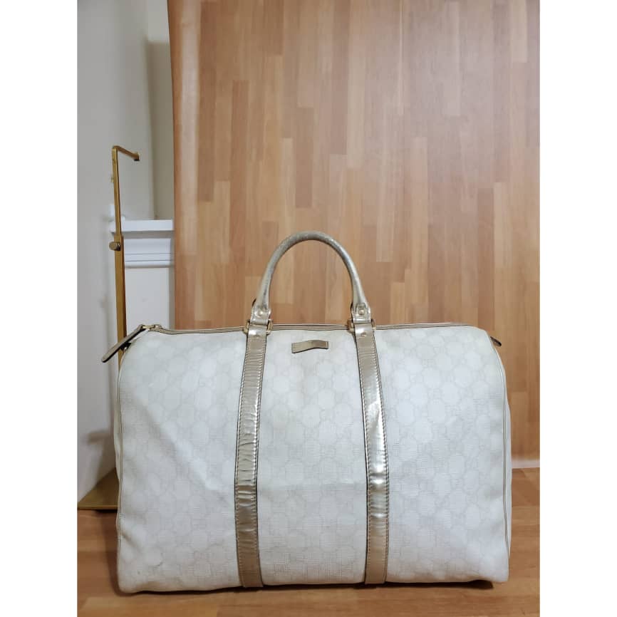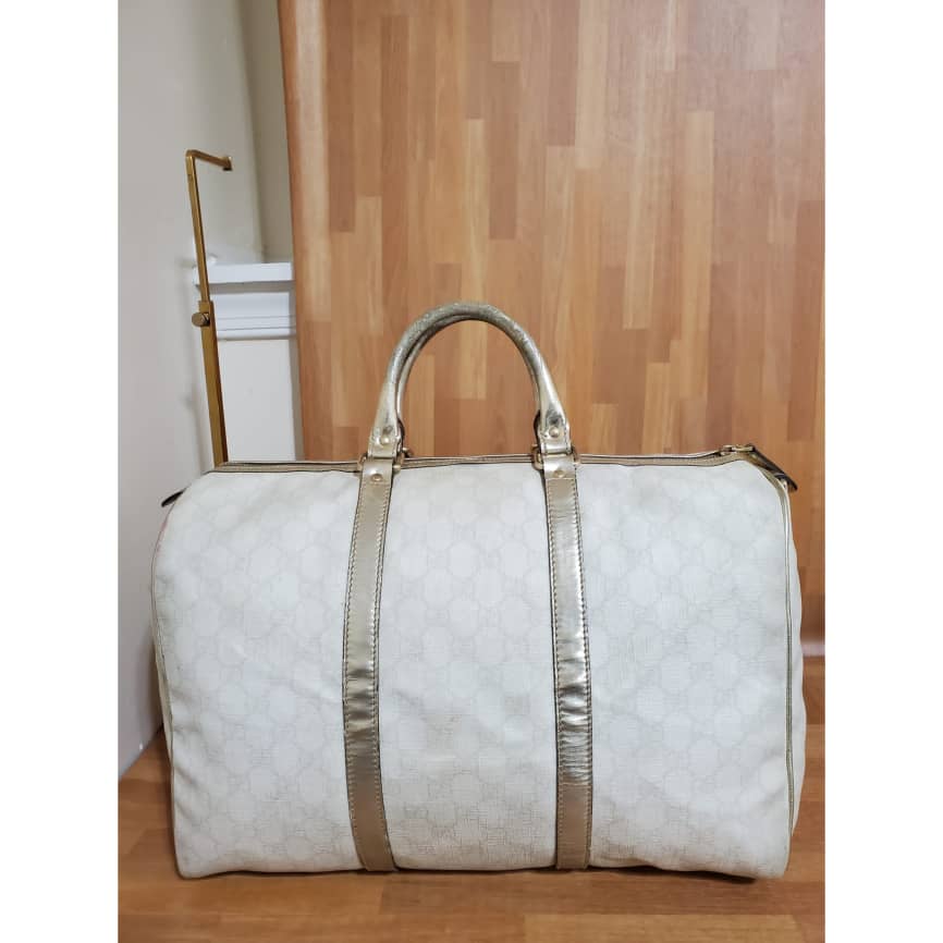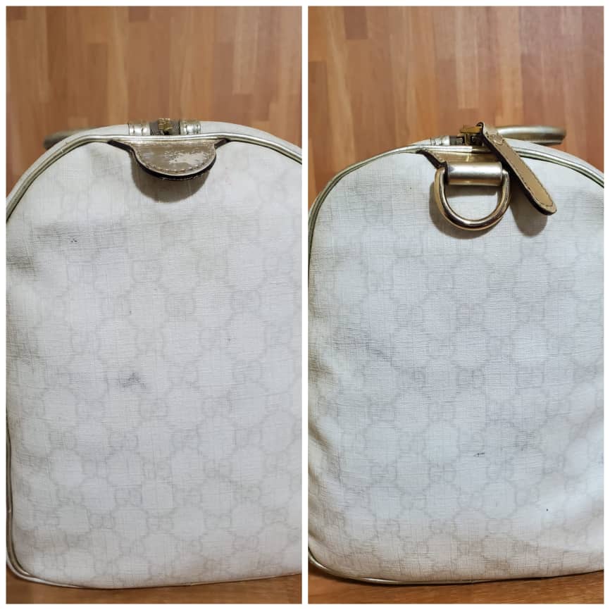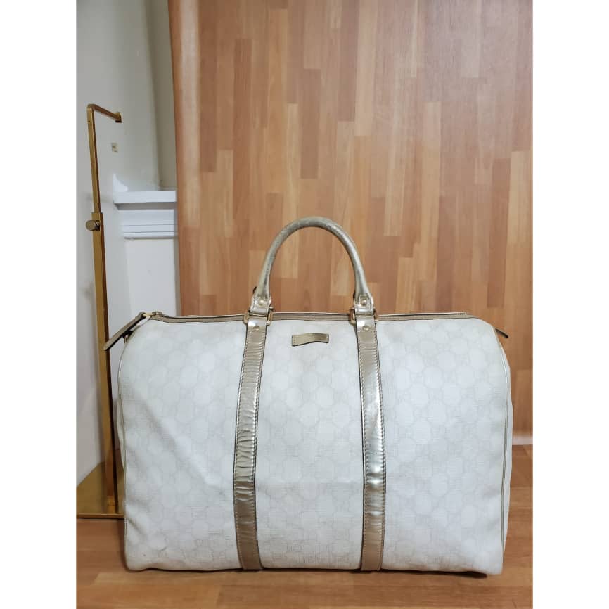 This authentic GUCCI Monogram Large Joy Boston White bag is in it’s pre-owned good condition. Has sign of use. The exterior coated canvas is clean and beautiful. The back corner edges shows little stain. kindly refer to pictures above. The interior is clean. The handles shows wear the color worn out on the handles.