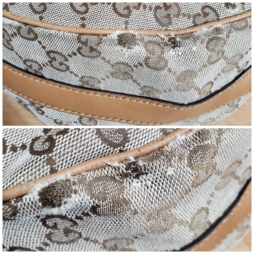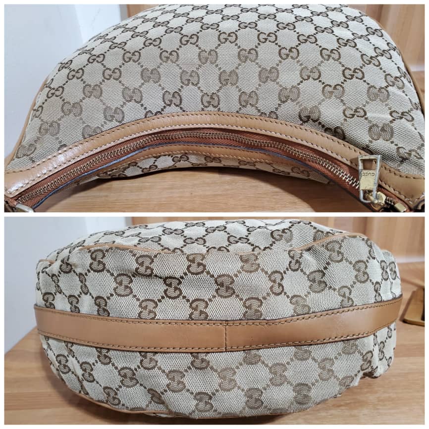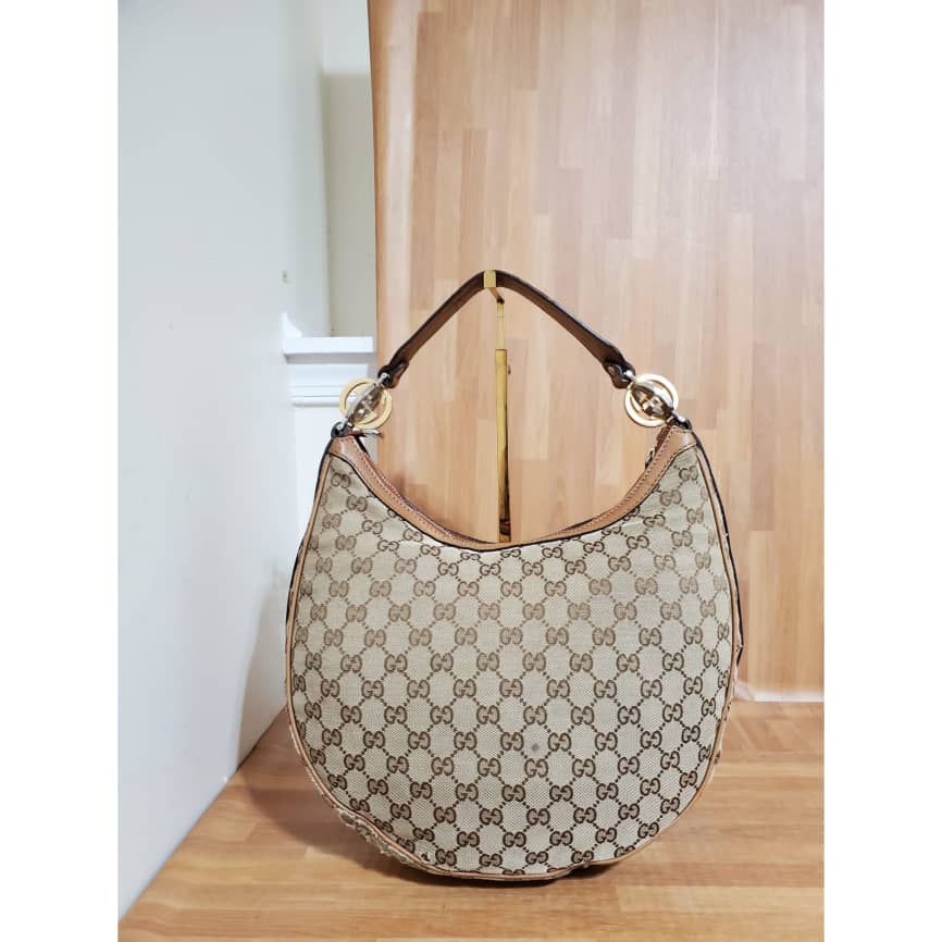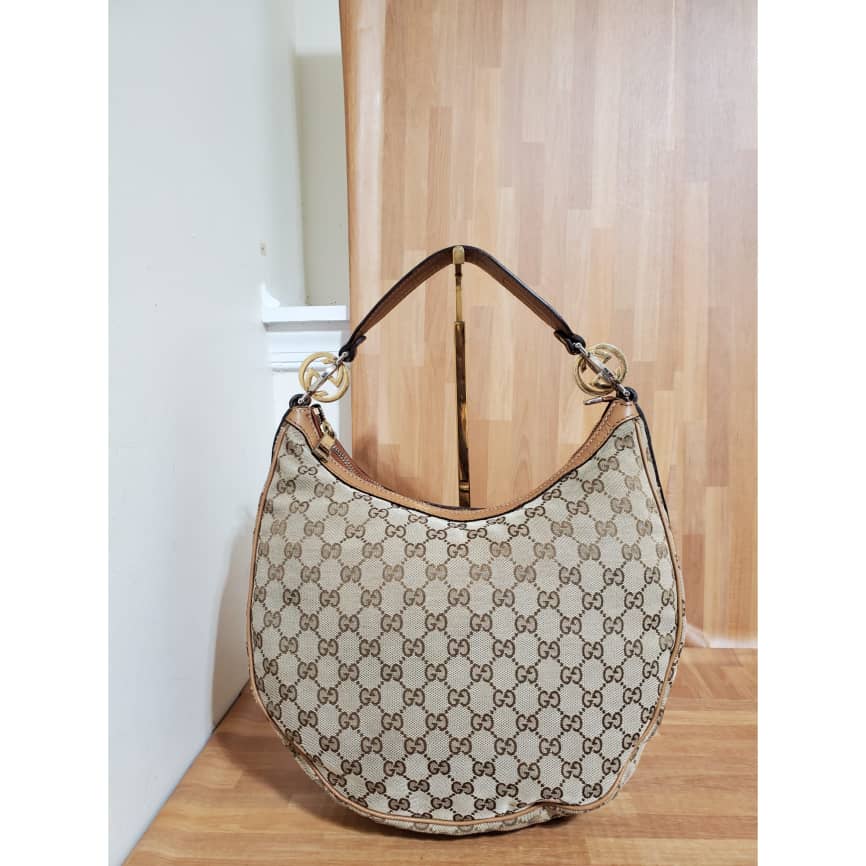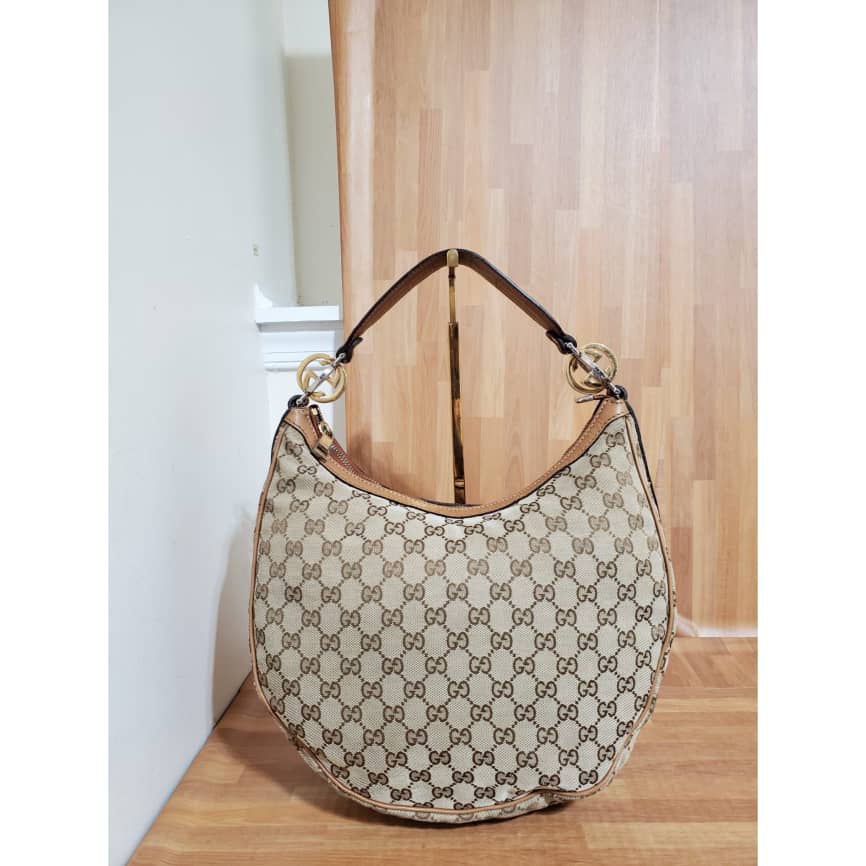 This authentic GUCCI Monogram Medium GG Twins Hobo bag is in it’s pre-owned good condition. The exterior canvas is clean and beautiful. Interior is clean. The one side edges shows little scuff. It’s a beautiful Hobo Shoulder Bag.