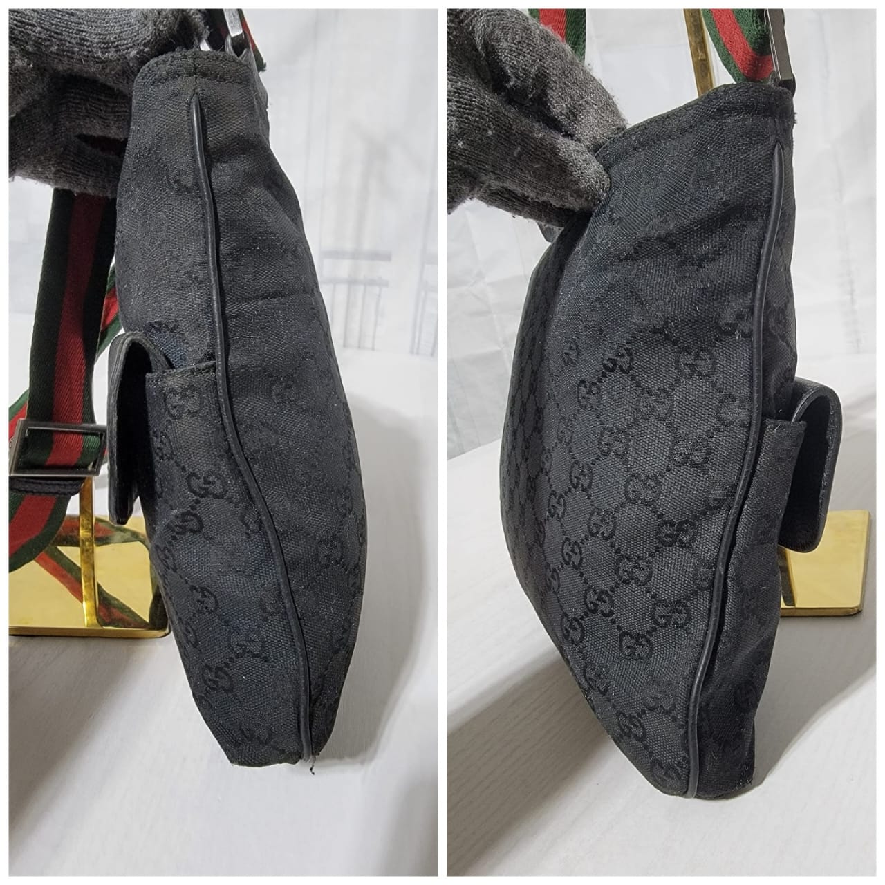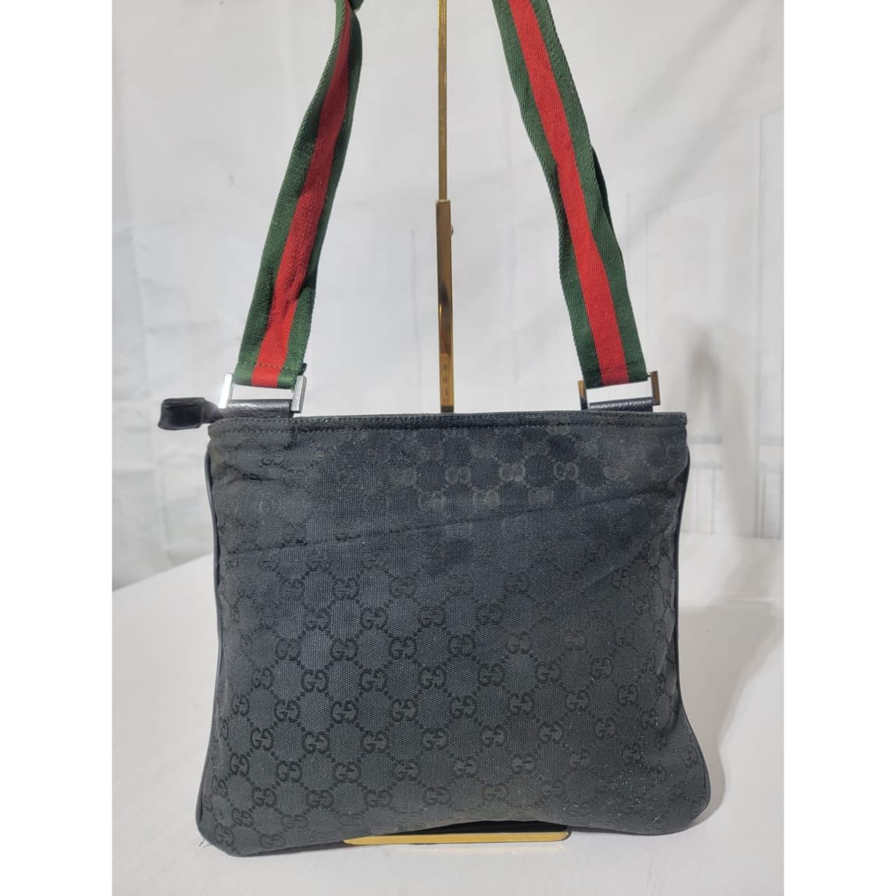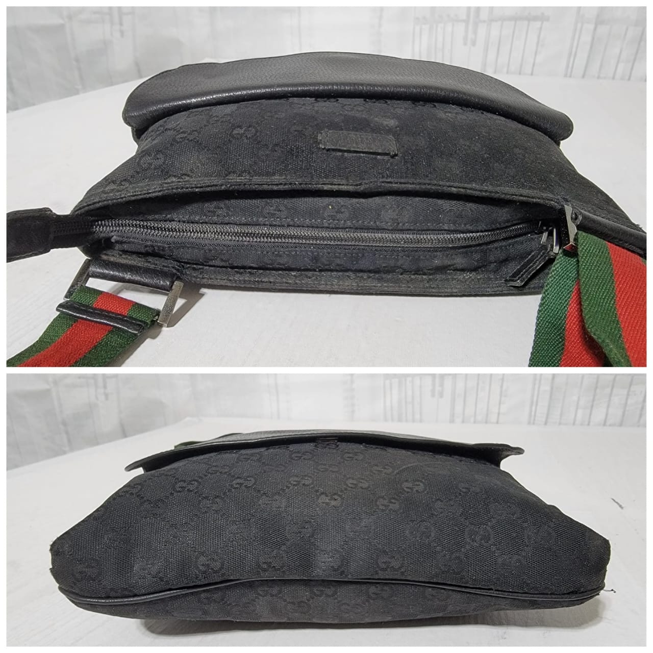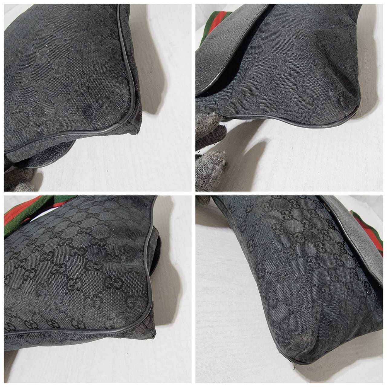 This authentic GUCCI Monogram Signature Web Messenger/Crossbody Bag Black is in it’s good pre-owned condition. The exterior is clean and beautiful. Interior is clean. It has a Gucci web messenger/crossbody strap.
