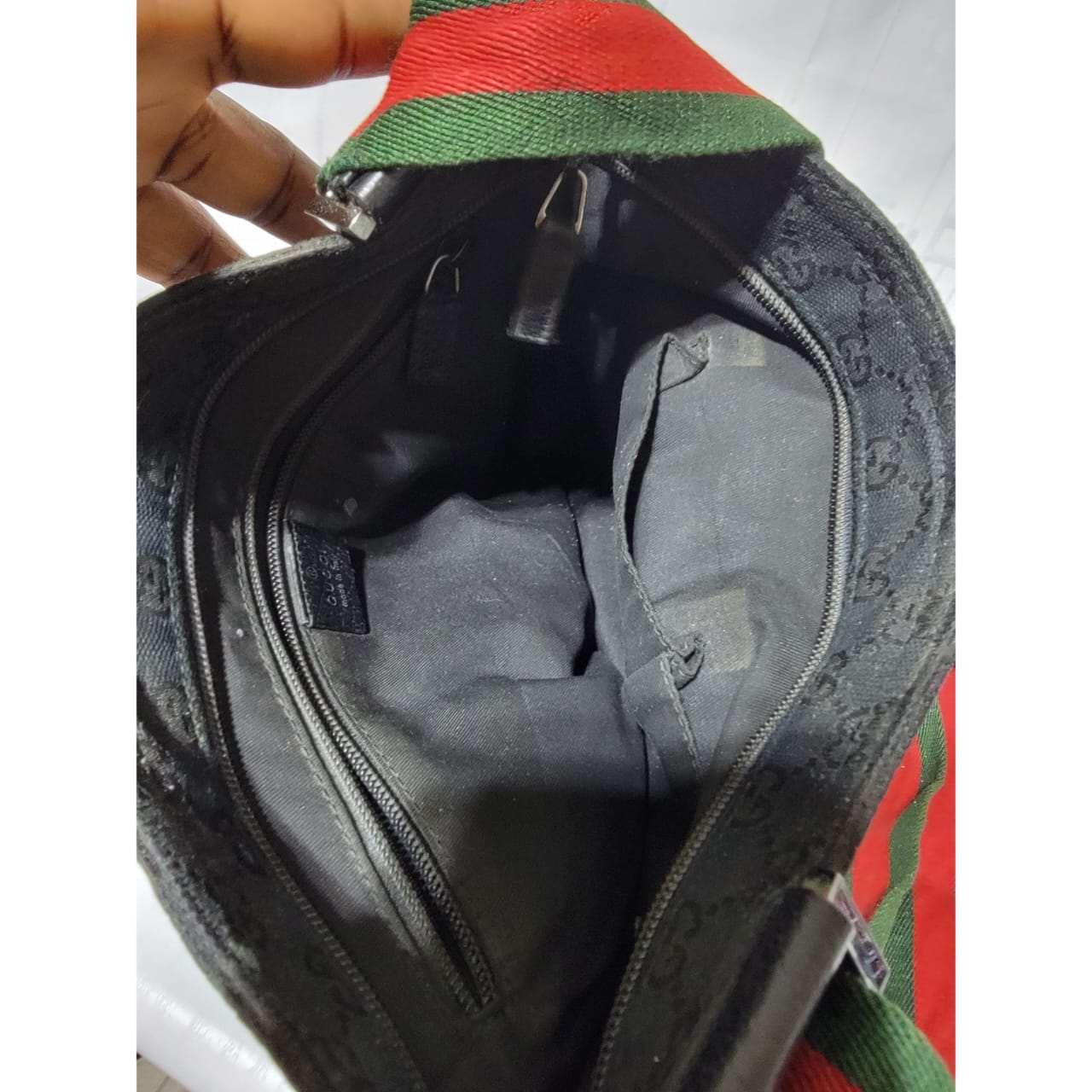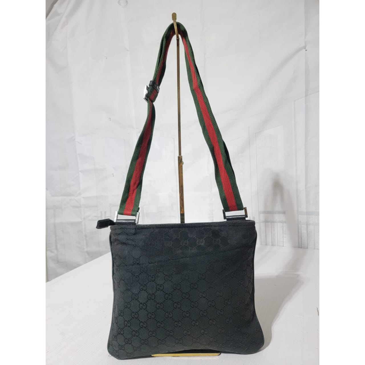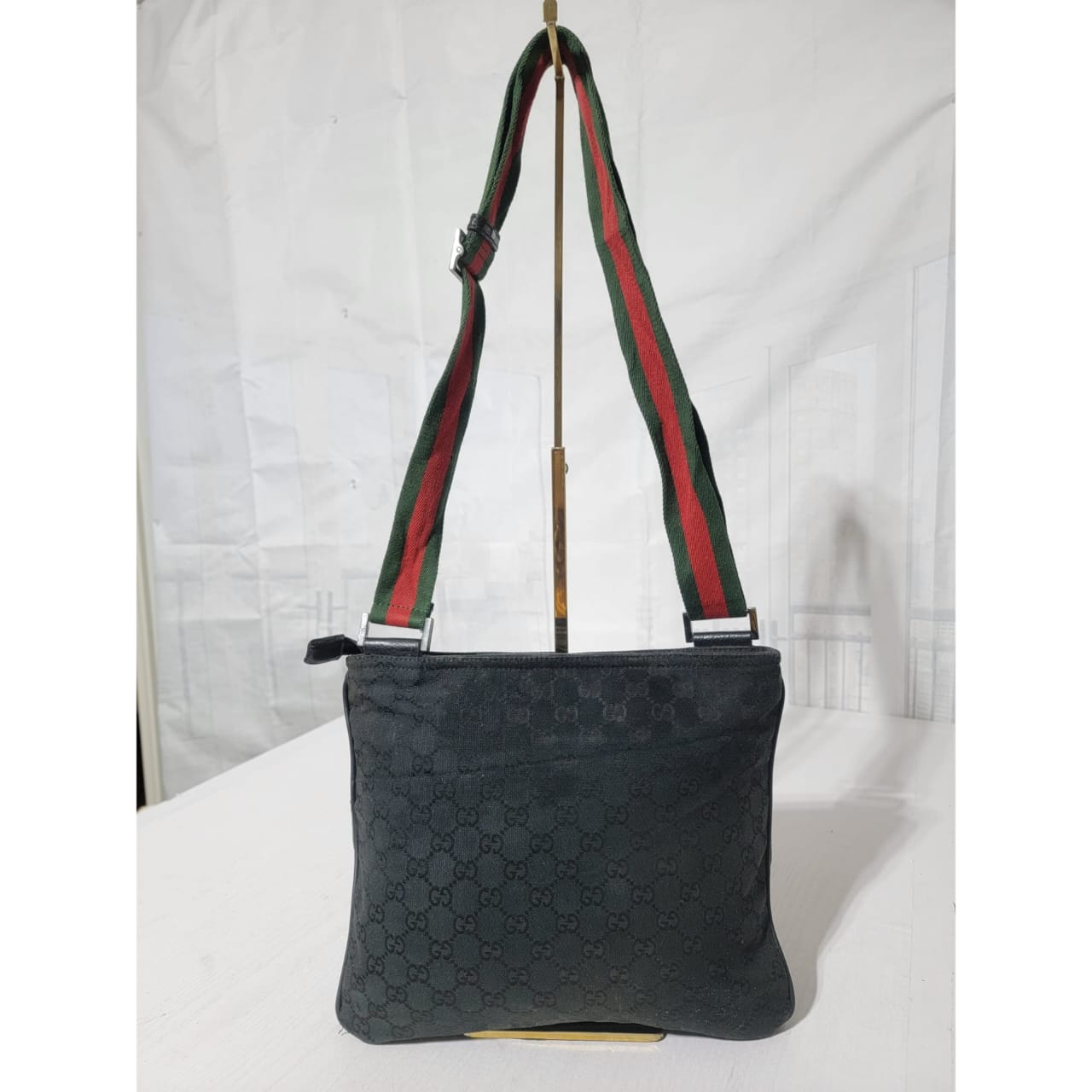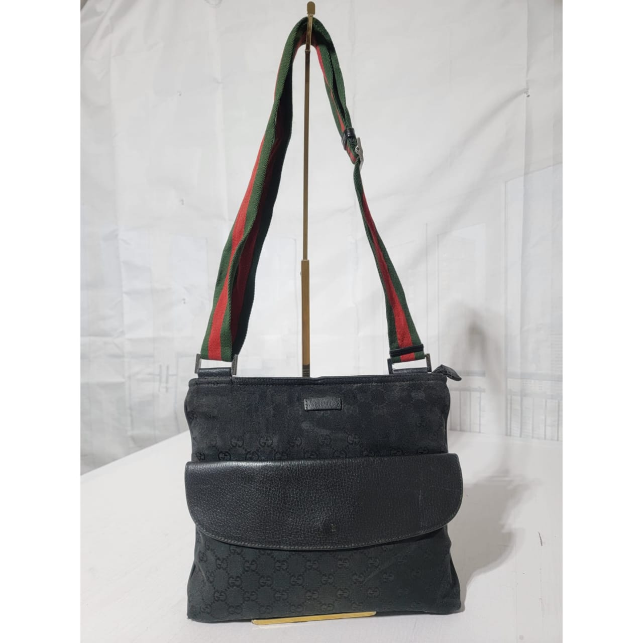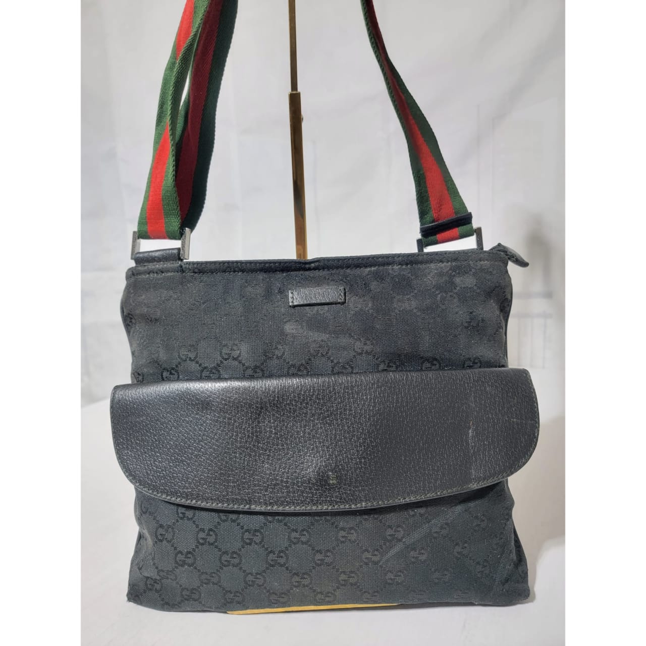 This authentic GUCCI Monogram Signature Web Messenger/Crossbody Bag Black is in it’s good pre-owned condition. The exterior is clean and beautiful. Interior is clean. It has a Gucci web messenger/crossbody strap.