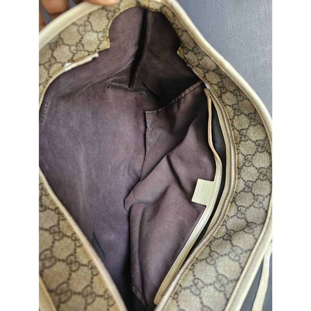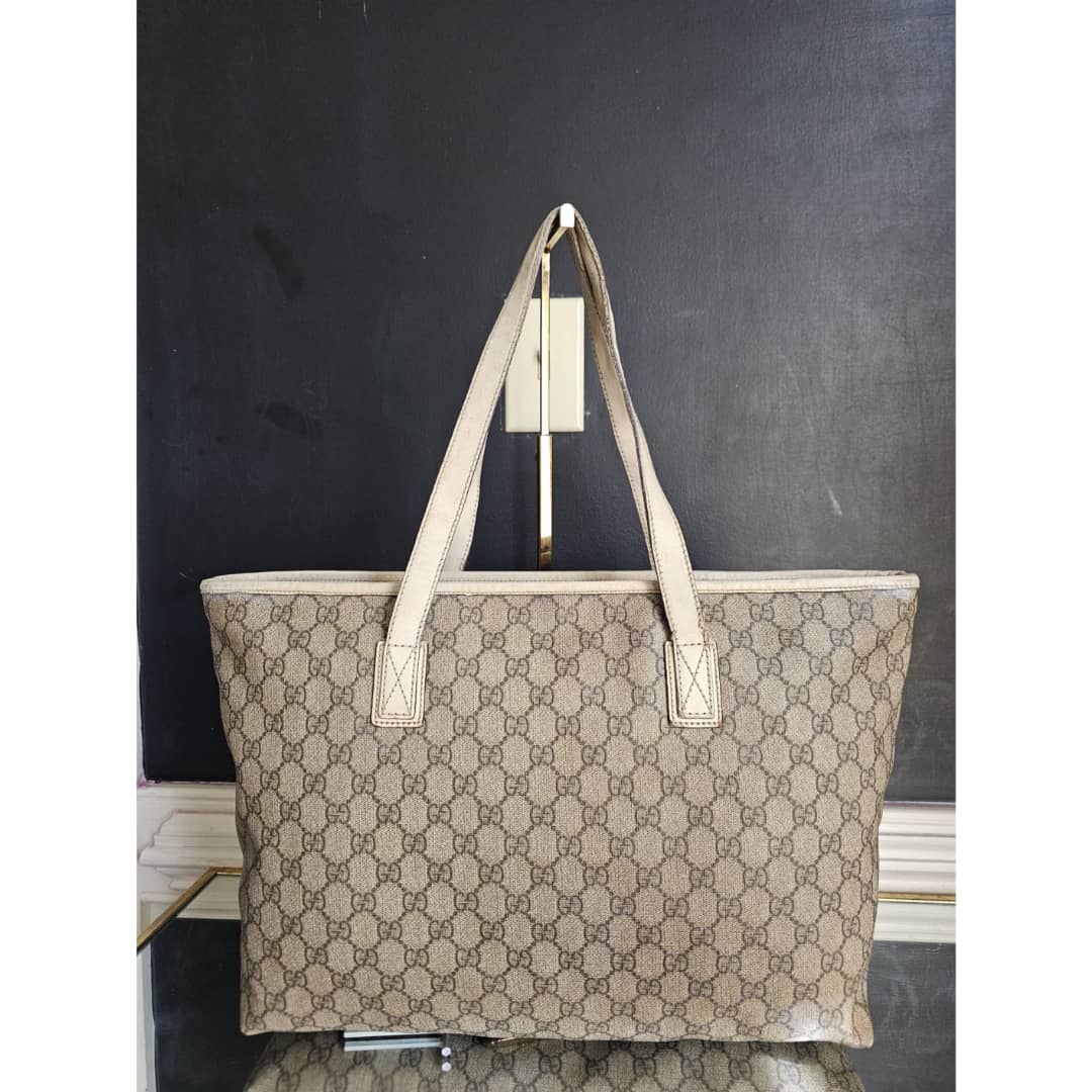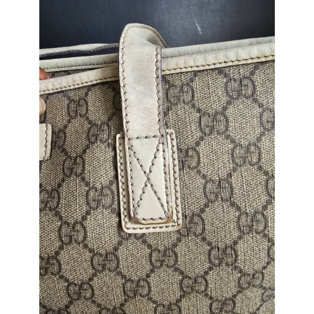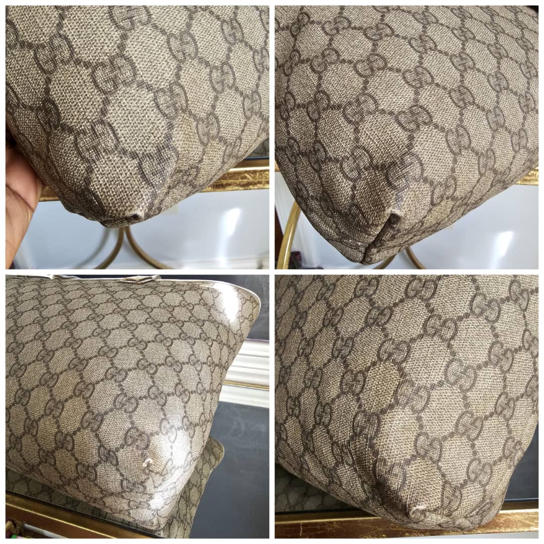 This authentic Gucci Monogram Tote Bag Beige/Cream is in it’s good pre-owned condition. The exterior canvas is clean and beautiful, base edges shows little bit of scratches. Interior is clean. Handles shows some wear and blazing. The top leather trim shows it was re-painted formerly (Kindly review pictures above).