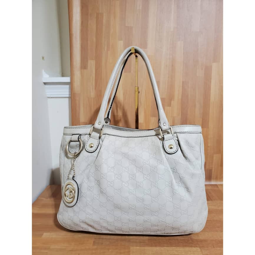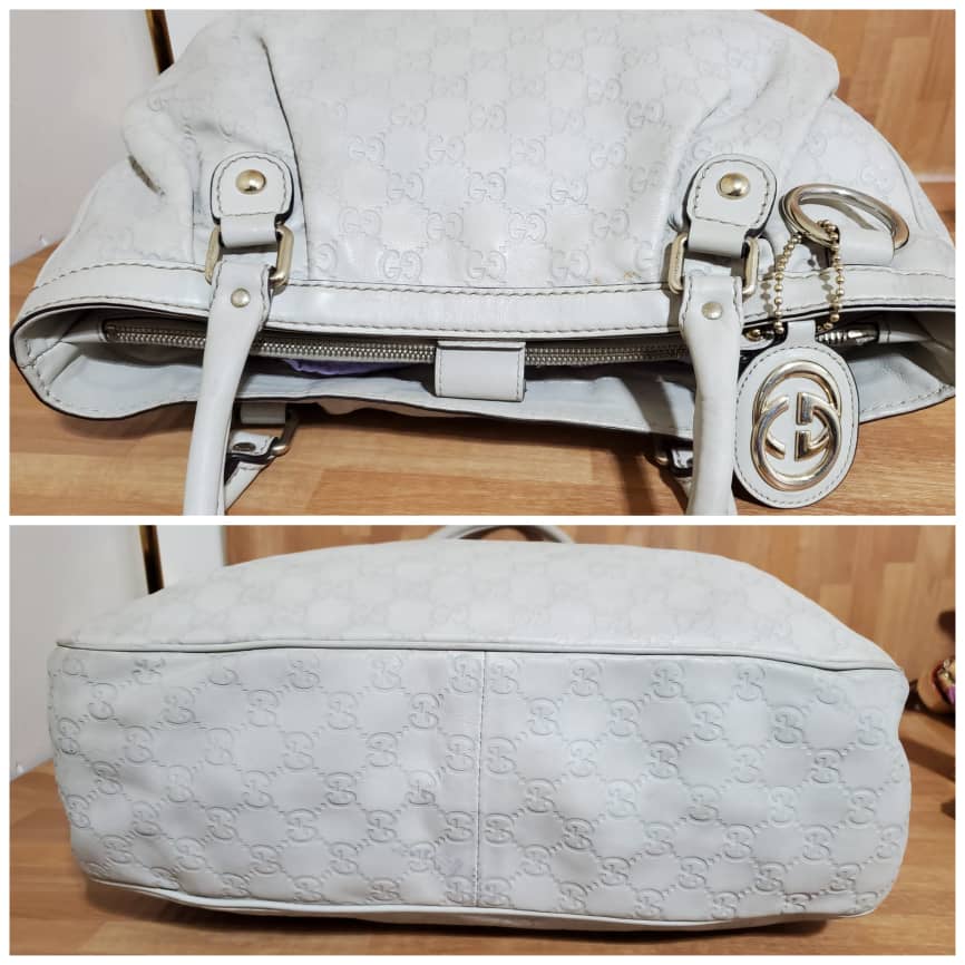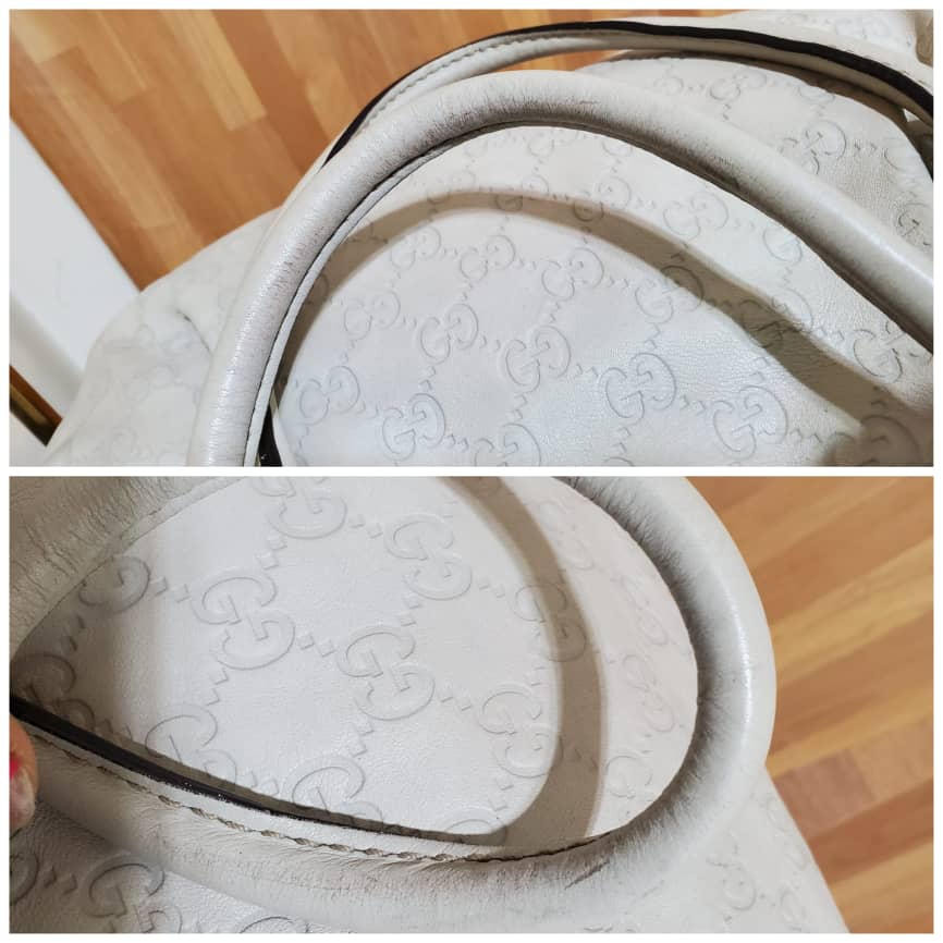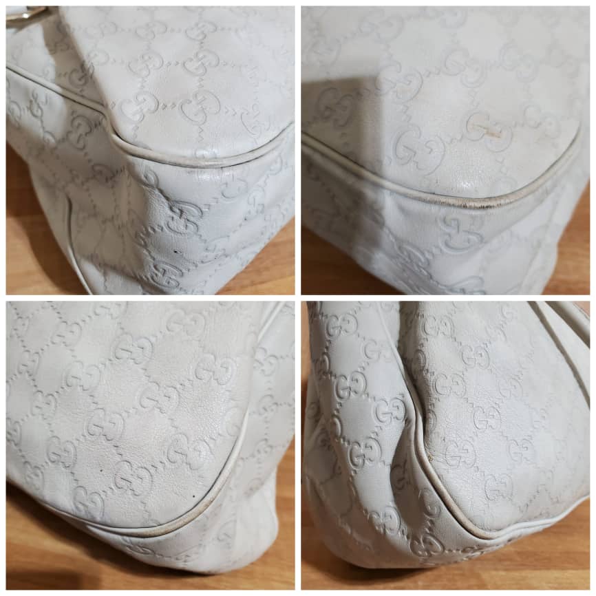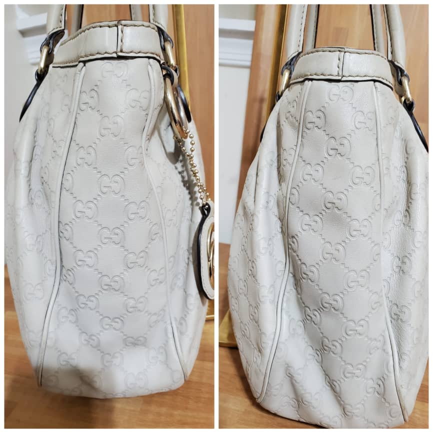 This authentic GUCCI Monogram Web Rania Drawstring Shoulder Bag Sand is in it good preowned condition. The exterior canvas is clean and beautiful. Interior is clean. The base leather shows light patina . It’s a beautiful bag and perfect for the season.